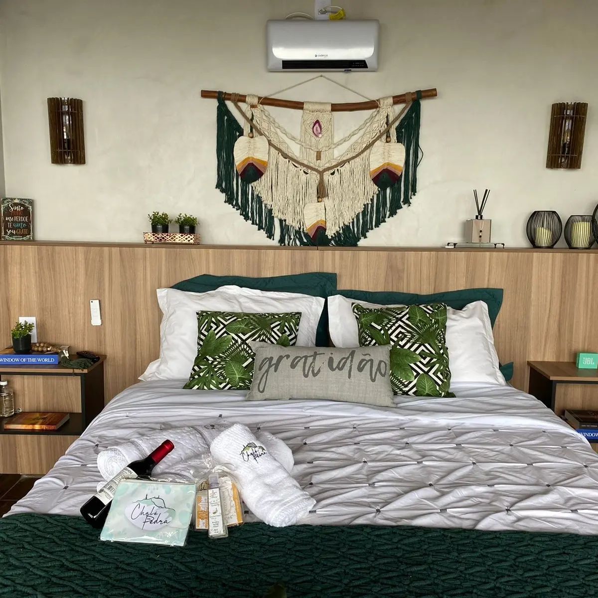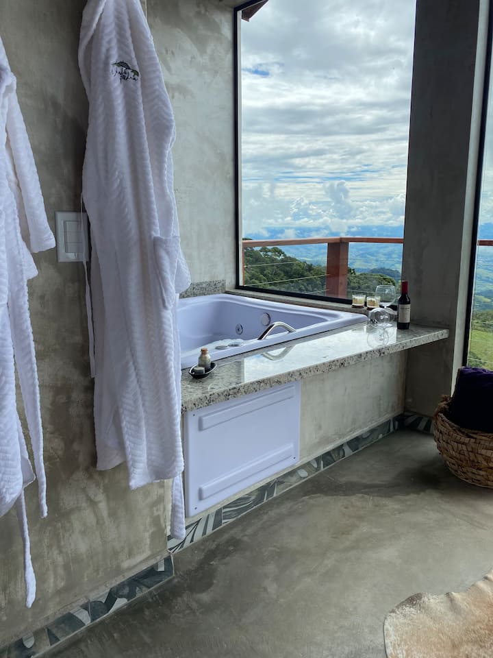 Chalé na pedra é um lugar aconchegante para quem deseja passar momentos maravilhosos e inesquecíveis ao lado de quem ama. Possui toda a estrutura necessária para pequenas refeições, redário, fogo de chão e um pôr do sol inesquecível. Na área externa, há uma área de lazer e uma vista deslumbrante para as montanhas da Serra da Mantiqueira.