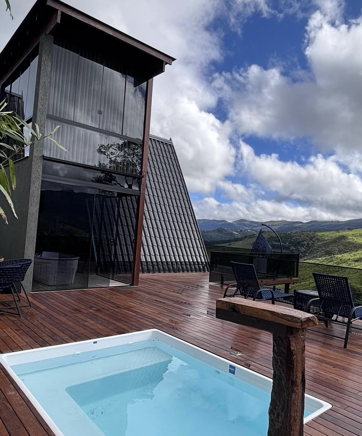 Situado em Moeda, com fácil acesso por estrada totalmente asfaltada, o espaço foi projetado em vidro e madeira, integrando a arquitetura ao ambiente externo e valorizando a vista incrível para a Serra da Moeda. Cada detalhe foi pensado com sofisticação para proporcionar conforto e privacidade, criando um refúgio ideal para quem busca tranquilidade em meio à natureza.