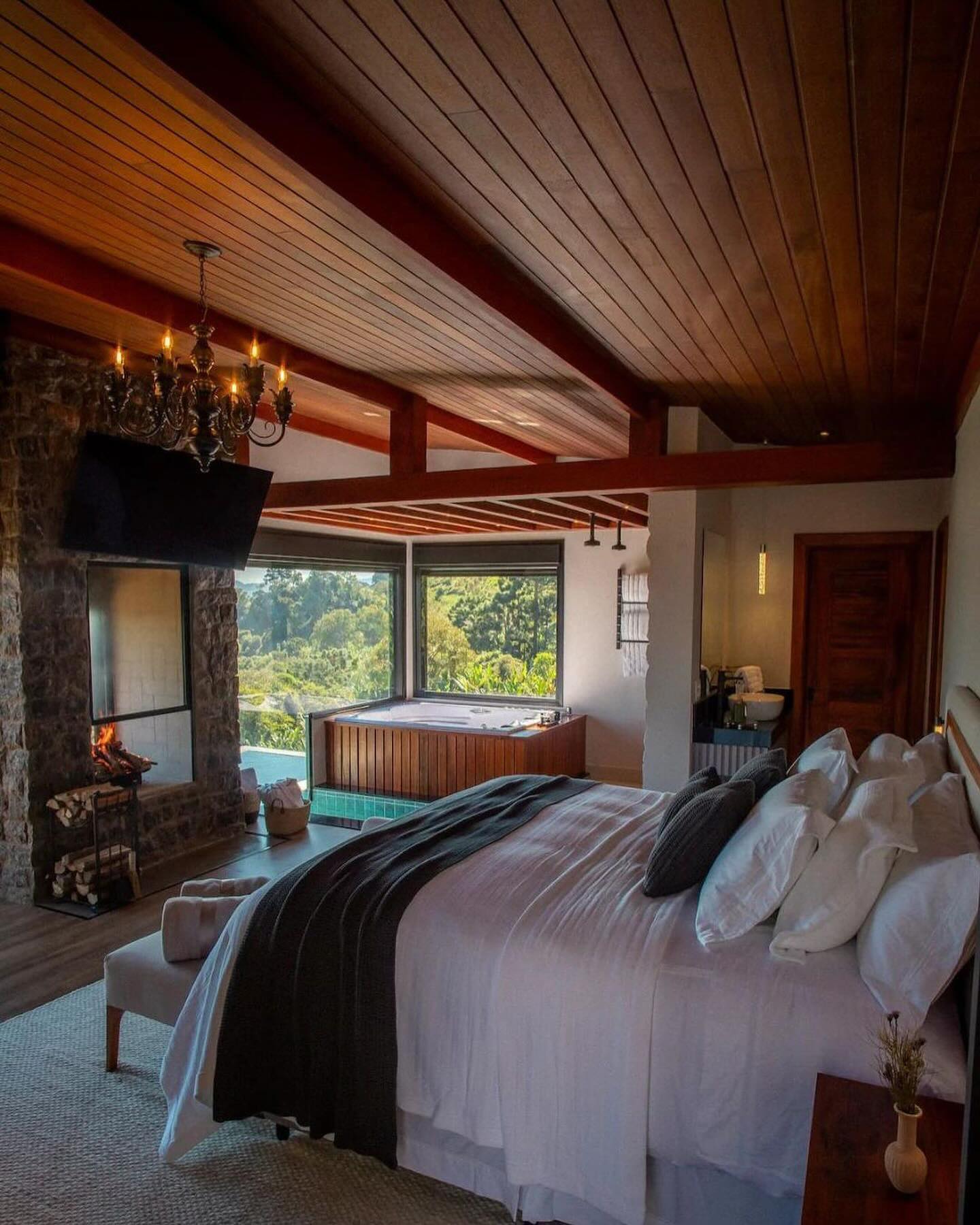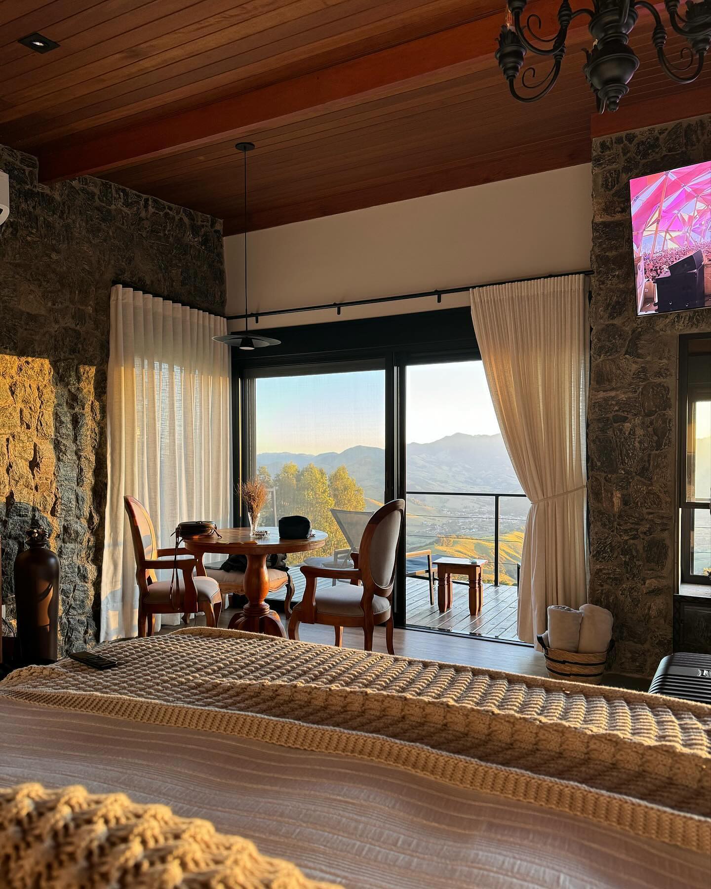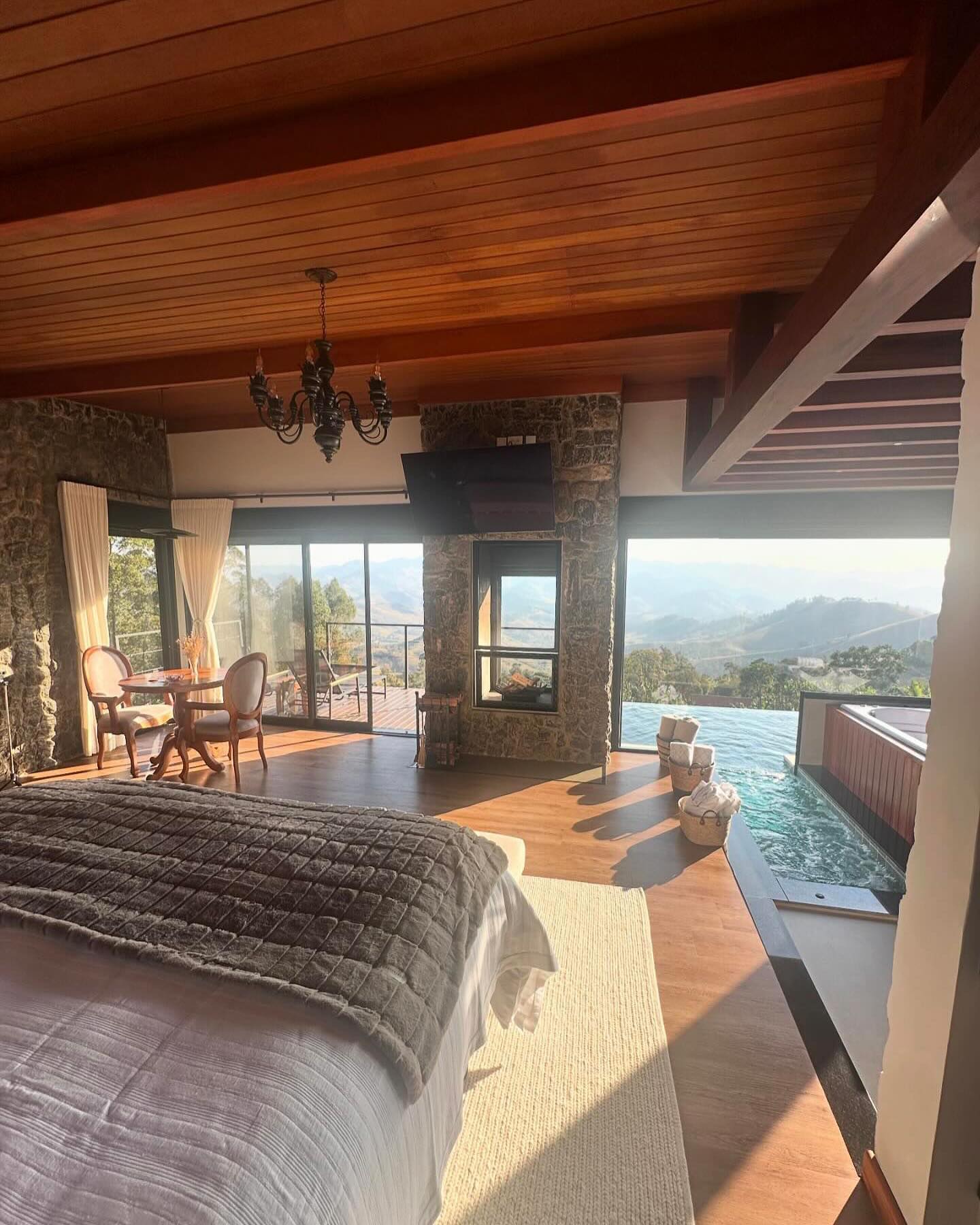 Lugar perfeito para se conectar com a natureza e consigo mesmo. Além de todo conforto e requinte dos quartos, a estrutura conta com balanço nas nuvens, trilha para mirante da Pedra do Baú e serviços personalizados como aulas de yoga e massagem.