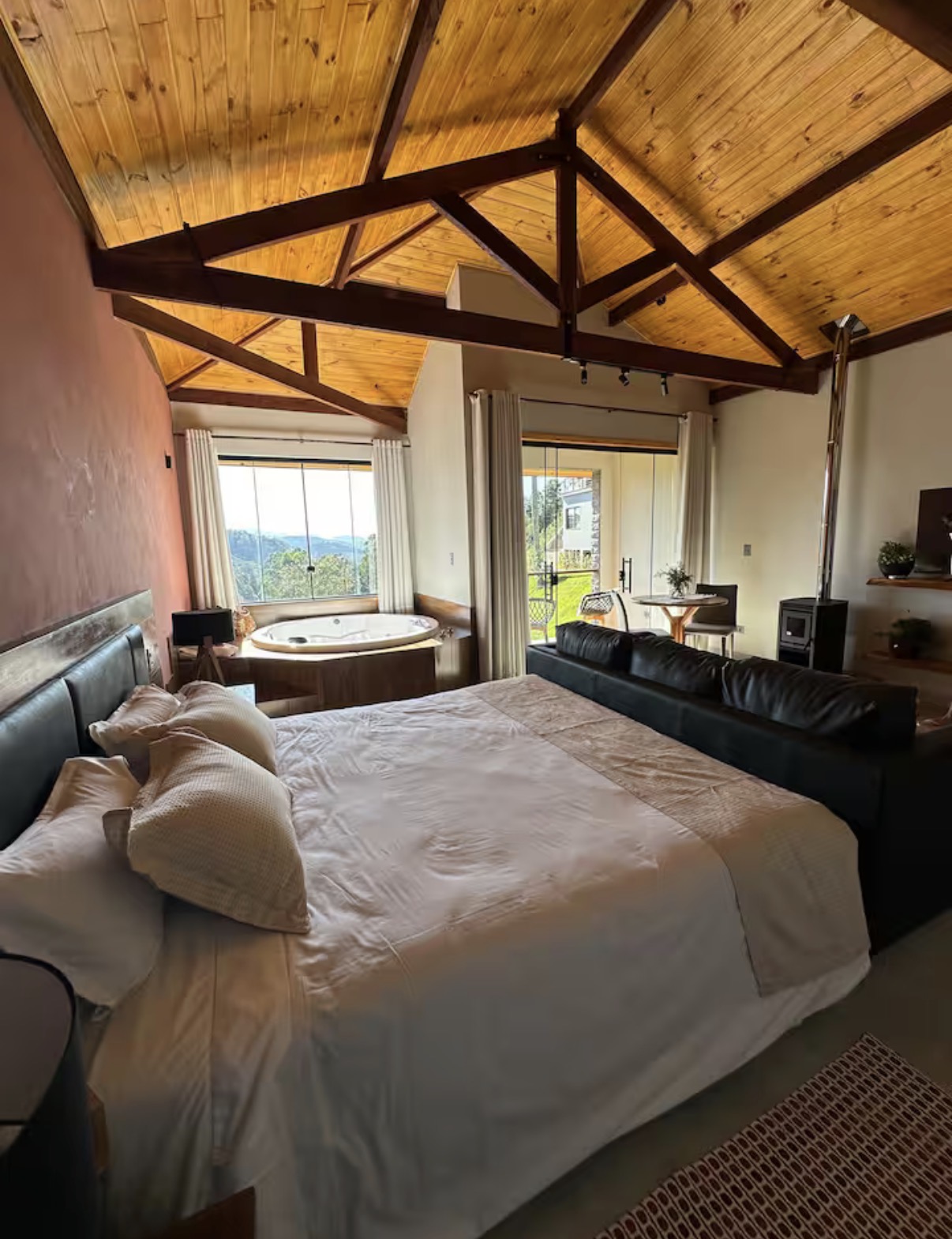 Os chalés Pico Agudo e Pedra do Baú foram concebidos com atenção minuciosa aos detalhes, unindo conforto, funcionalidade e uma atmosfera propícia ao descanso. A proposta valoriza a tranquilidade e o bem-estar, permitindo vivenciar momentos de relaxamento com elegância, seja apreciando a paisagem ao redor ou desfrutando de instantes de pausa profunda em um ambiente reservado e silencioso.