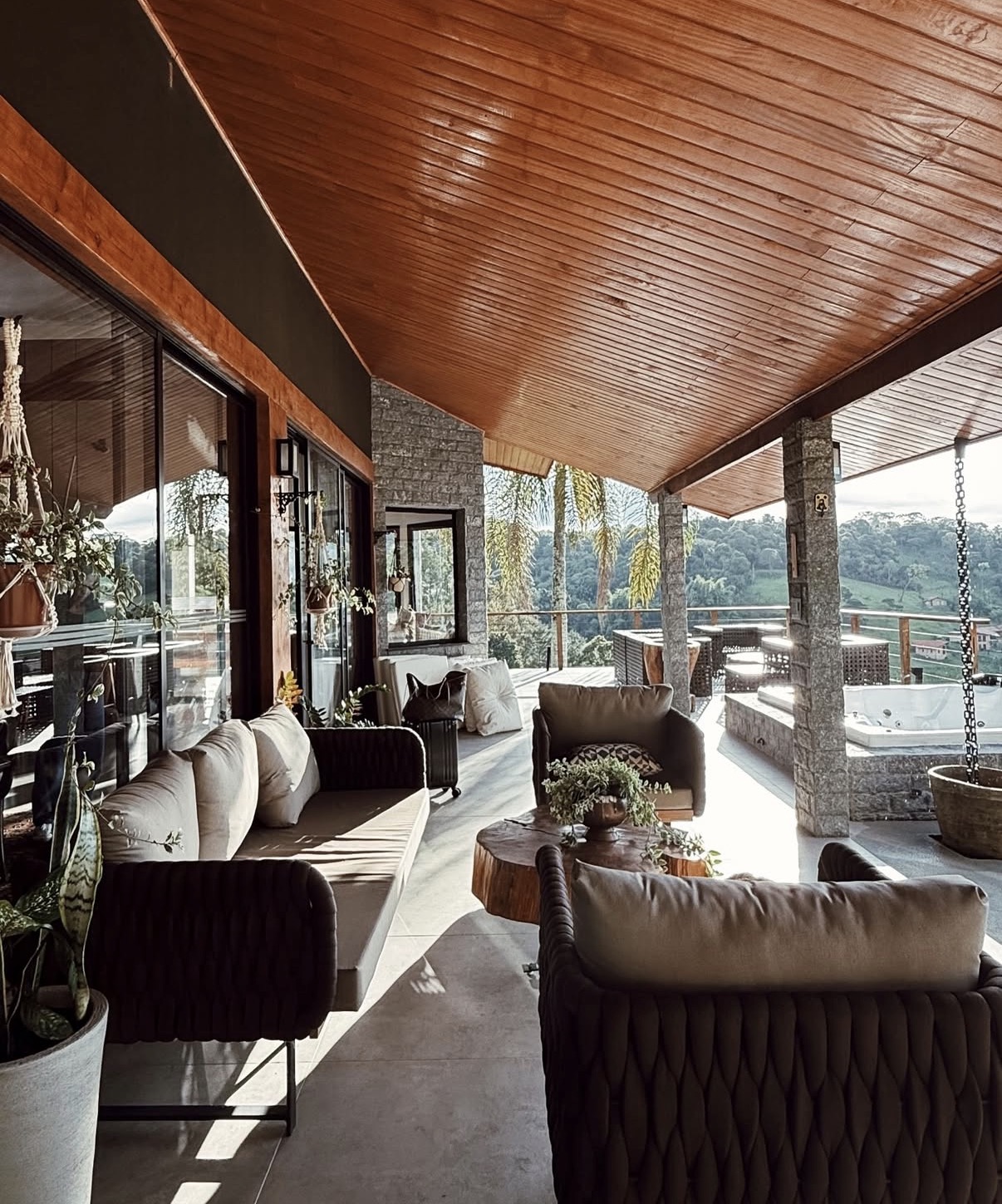 Inseridos em uma área natural ampla e preservada, os espaços apresentam arquitetura acolhedora e acabamento refinado, com ambientes pensados para proporcionar privacidade e harmonia. A vista para as montanhas e o contato constante com a natureza criam uma experiência equilibrada entre serenidade e sofisticação, ideal para quem busca desacelerar e aproveitar dias de contemplação, conforto e reconexão.