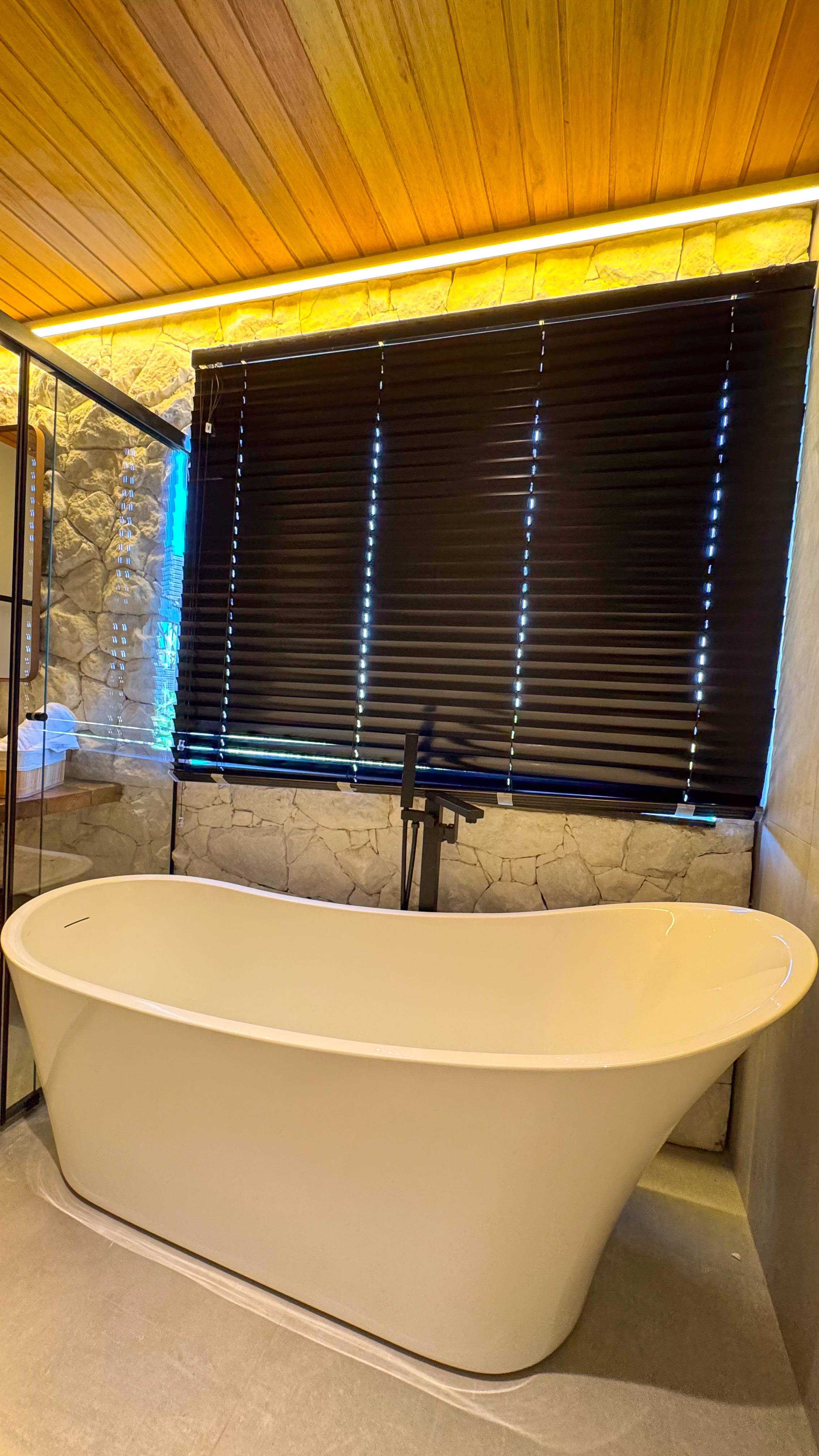 Ar condicionado Secador de cabelo TV a cabo / Smart TV Jacuzzi / Ofurô / Banheira Coberta Frigobar Lareira Máquina de Café Enxoval de Luxo (+ Roupão e Pantufa) Sauna Cozinha Estação de trabalho (mesa e cadeira) Piscina Aquecida ou climatizada Borda Infinita Coberta