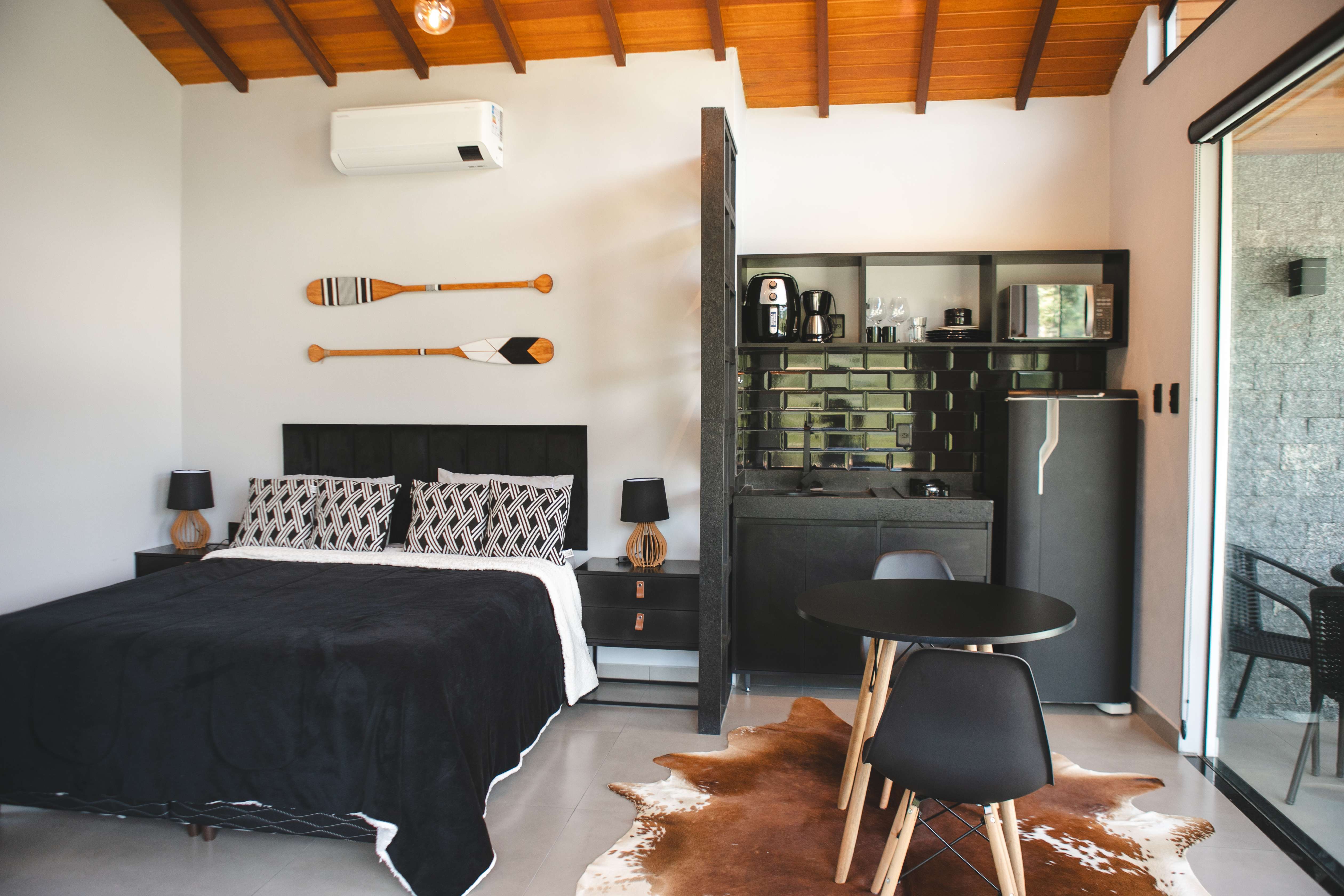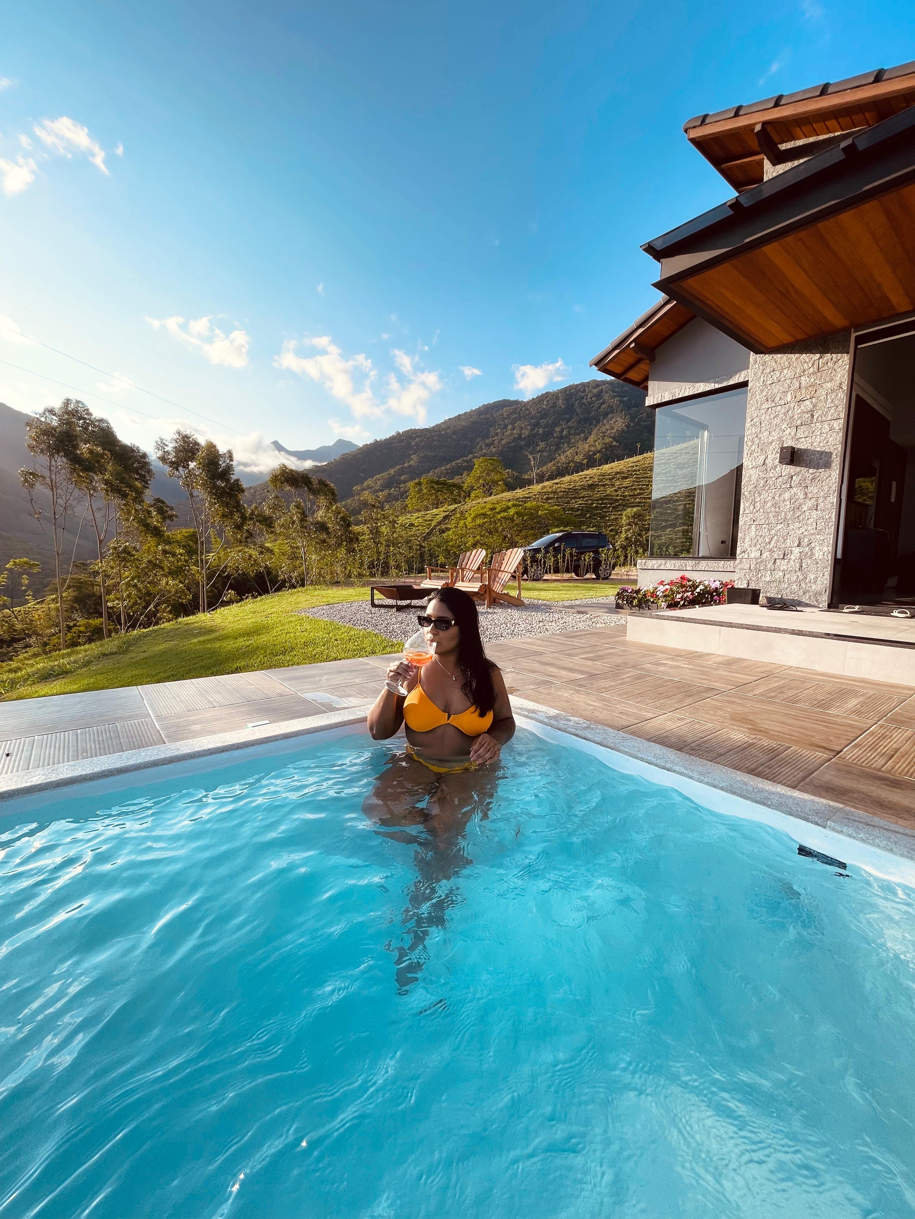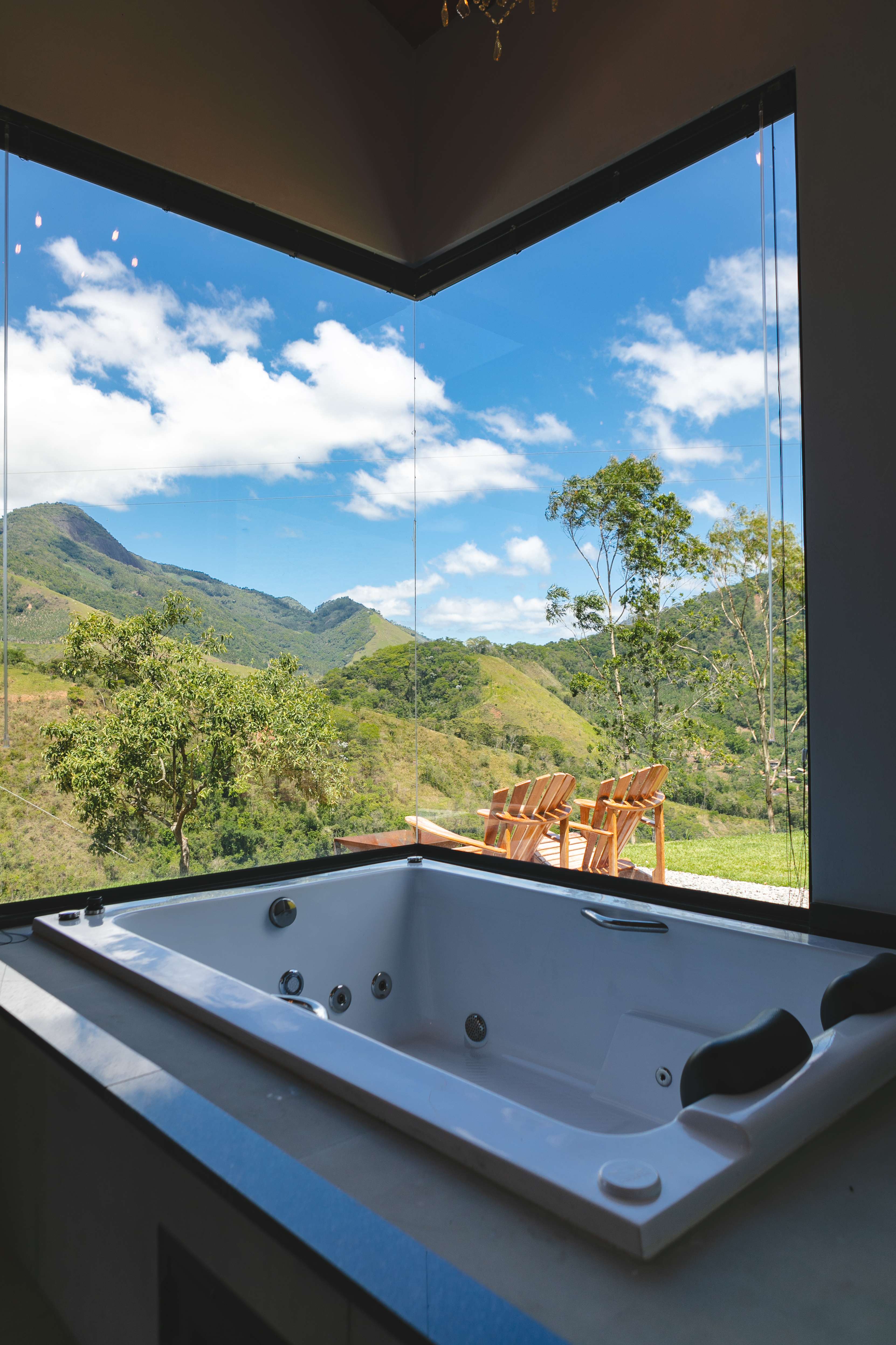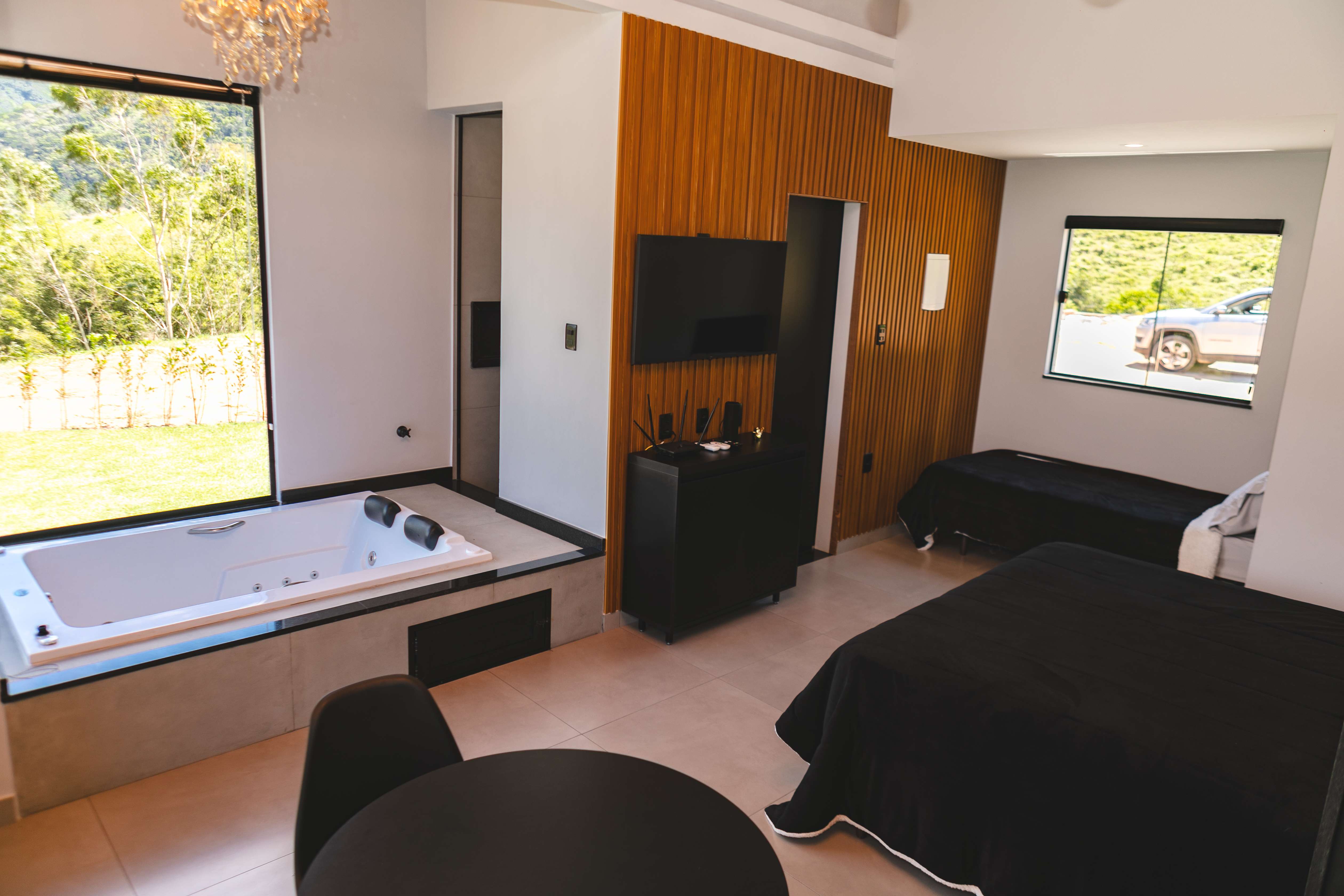 Ar condicionado Secador de cabelo TV a cabo / Smart TV Jacuzzi / Ofurô / Banheira Coberta Frigobar Lareira Máquina de Café Enxoval de Luxo (+ Roupão e Pantufa) Sauna Cozinha Estação de trabalho (mesa e cadeira) Piscina Aquecida ou climatizada Borda Infinita Coberta