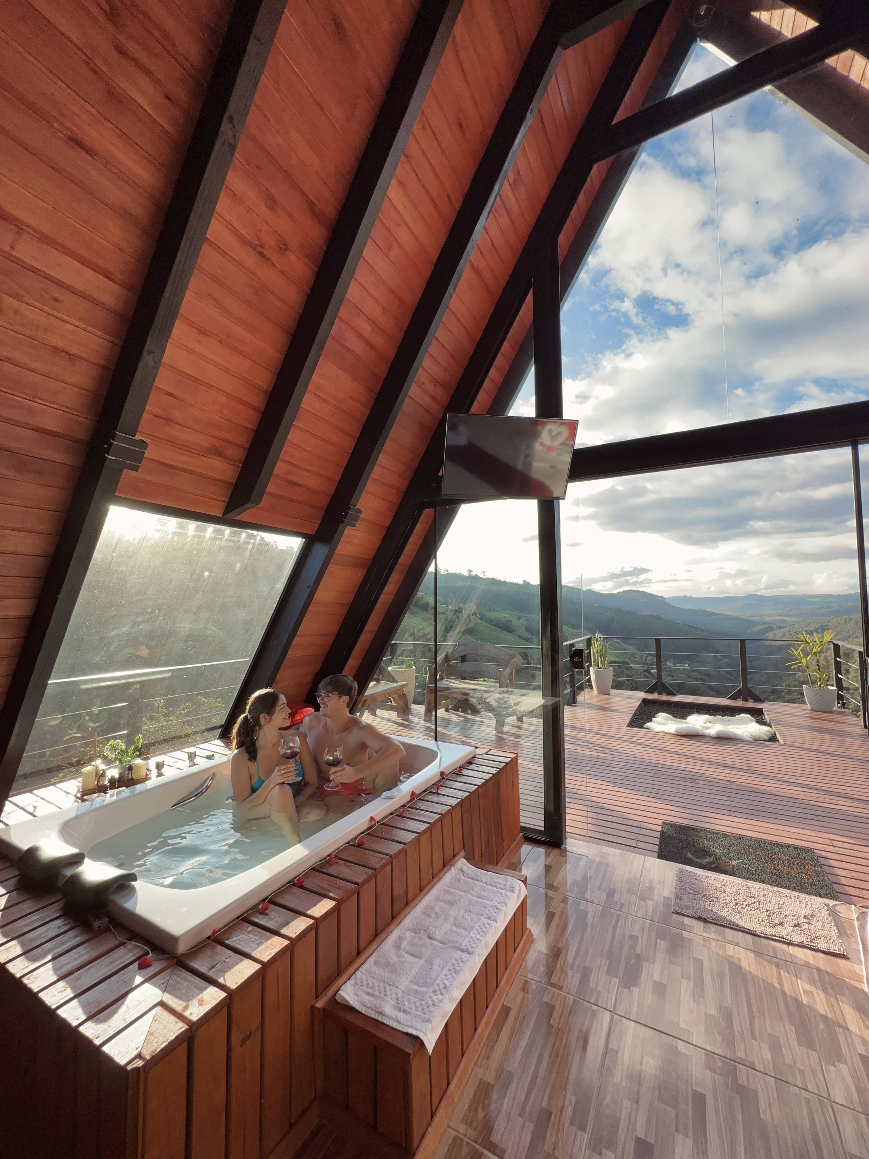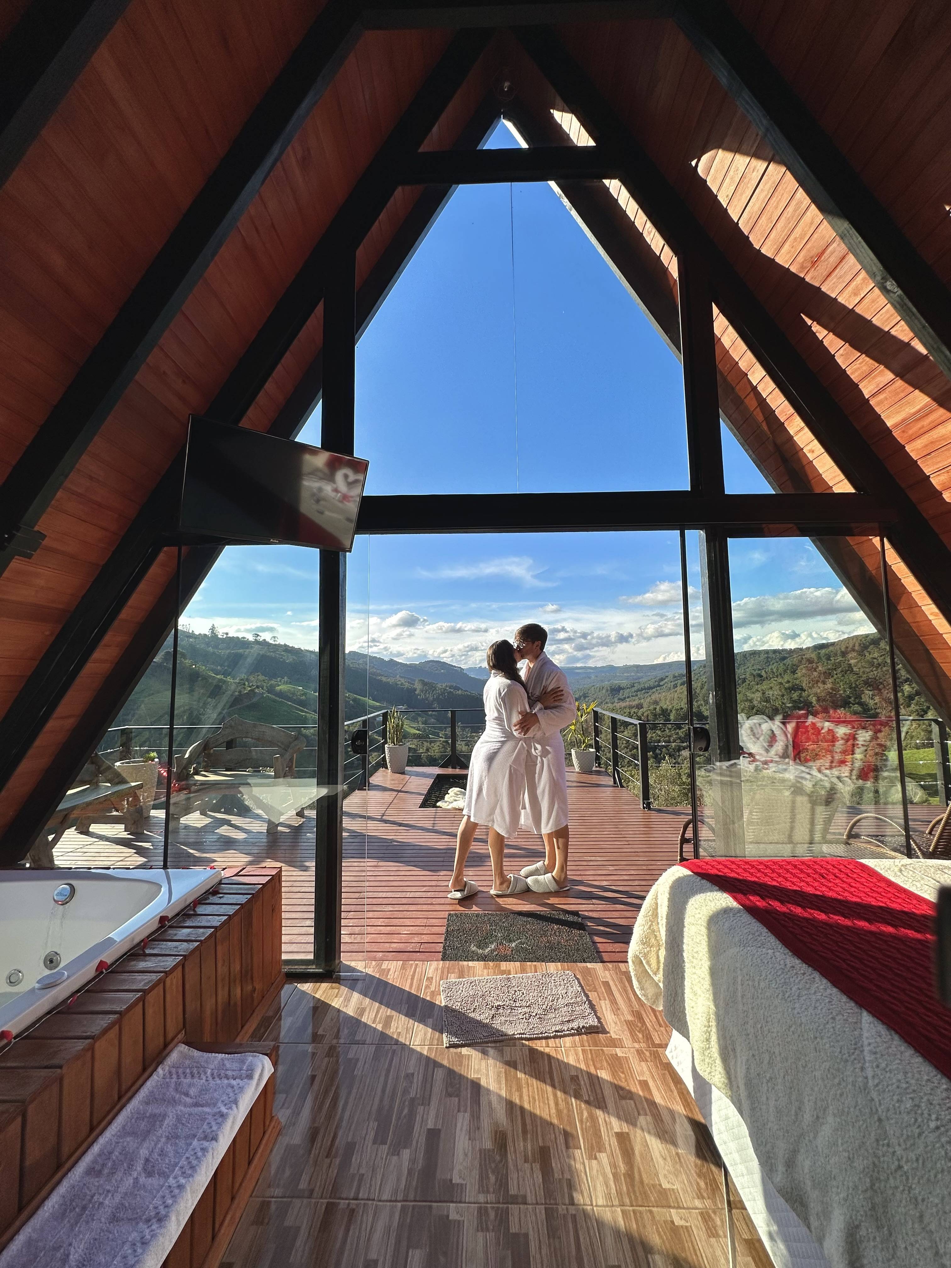 Hospedagem exclusiva em meio às montanhas, piscina aquecida com design moderno e integração à natureza, ideal para casais que buscam romantismo, conforto e momentos inesquecíveis. Os espaços contam com varandas panorâmicas, rede suspensa, áreas de fogo cobertas e banheiras de hidromassagem, criando o cenário perfeito para relaxar e viver experiências únicas em todas as estações.