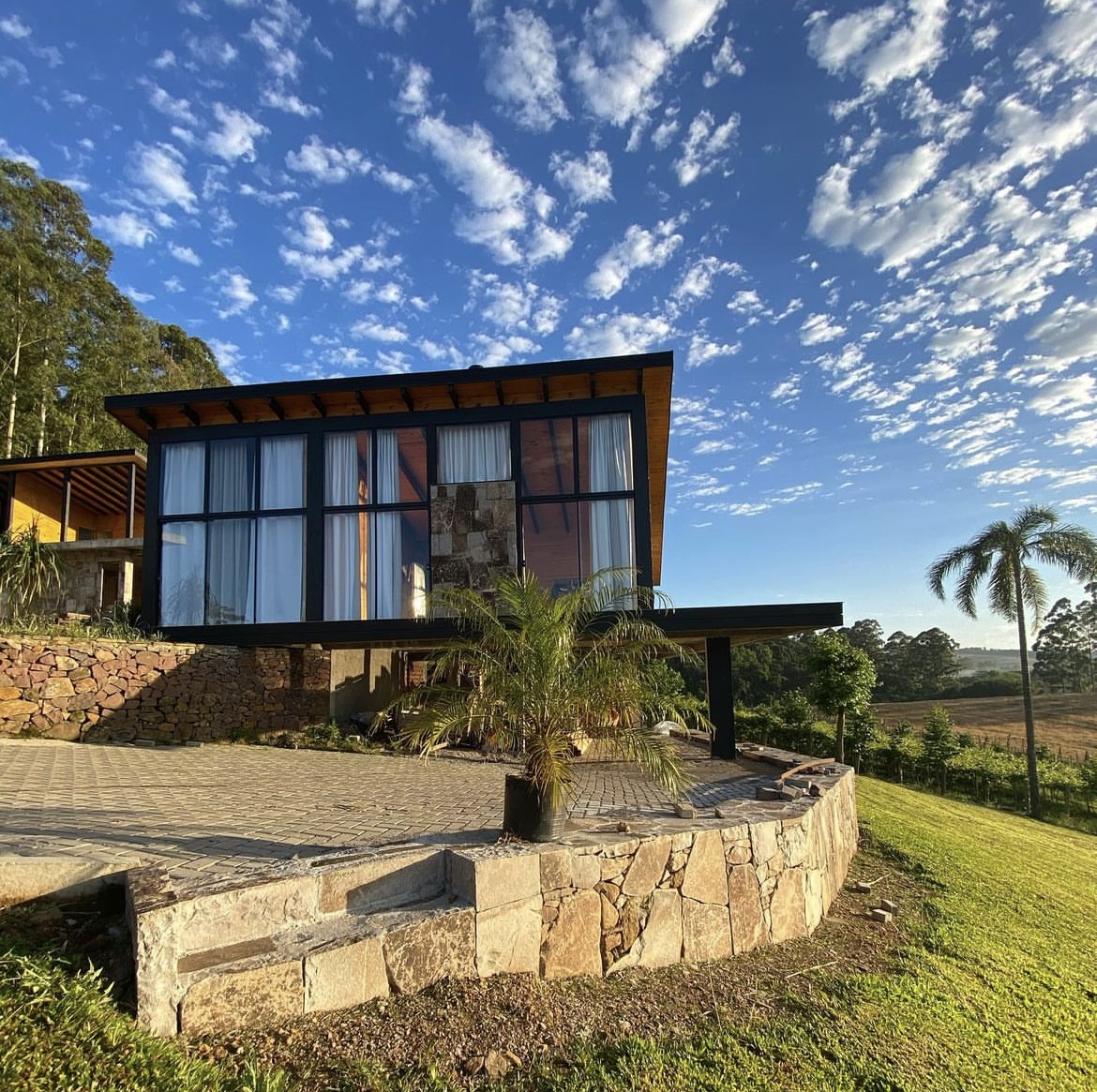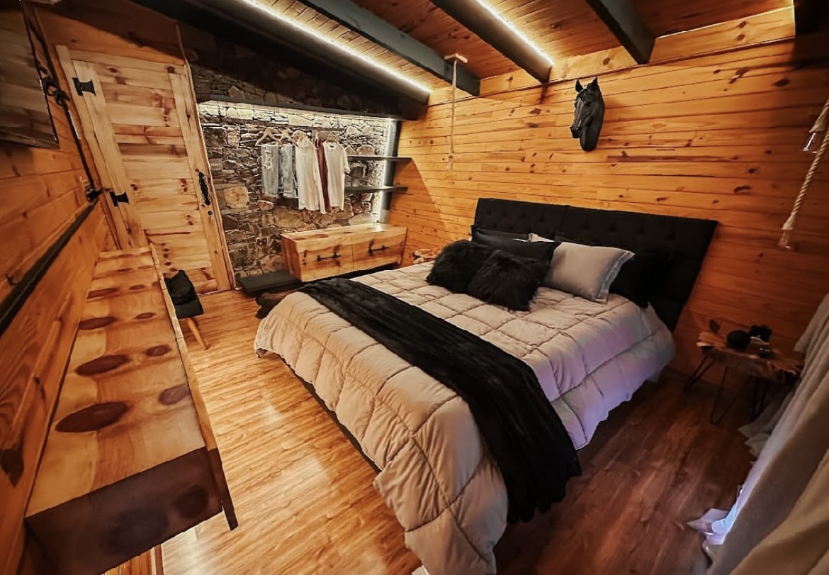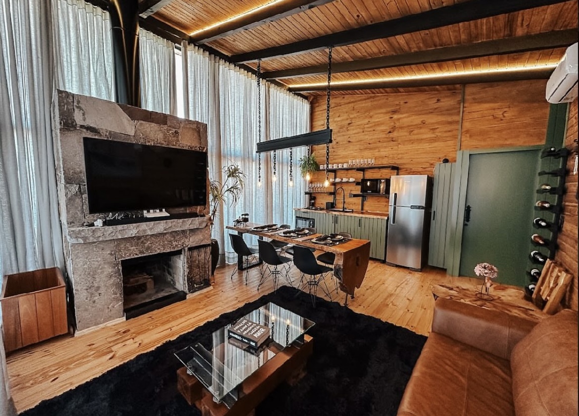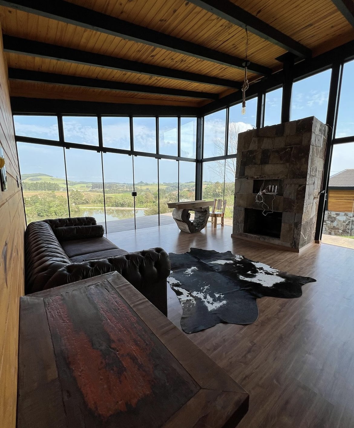 O Chalé Potro Negro, localizado na divisa entre Dois Lajeados e Vespasiano Correa, RS, oferece acesso asfaltado e proximidade com o maior viaduto da América Latina (V13). Com design rústico e sofisticado, o chalé combina pedra de taipa e madeira, criando um ambiente aconchegante para casais, famílias ou amigos, acomodando até 5 pessoas. Acomodações incluem cozinha completa com Airfryer, forno elétrico, micro-ondas, cooktop, geladeira frost free e adega com vinhos e espumantes. A sala conta com TV 4K de 55 polegadas, Netflix, lareira, ar condicionado e mesa de jantar. Dois quartos com camas queen e sistema de massagem, ambos com ar condicionado e TVs 4K. O chalé dispõe de amplo banheiro rústico, com aquecimento de toalhas e chuveiro quente ou frio. A área externa inclui jardins, pergolados, área gourmet, fire pit e decks rodeados por árvores. A fazendinha pode ser visitada ao final do dia. Acomodação pet-friendly, permitindo 1 cachorro de até 8kg por chalé.