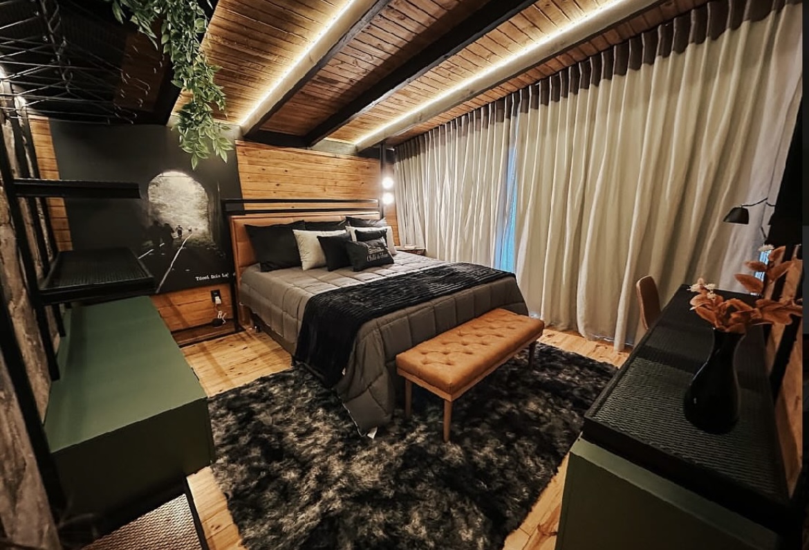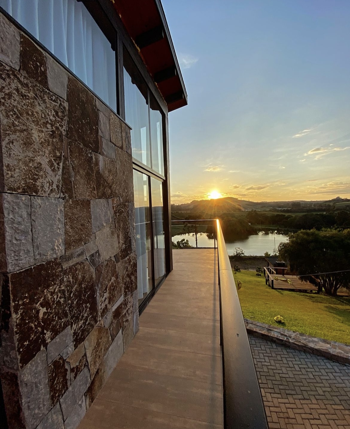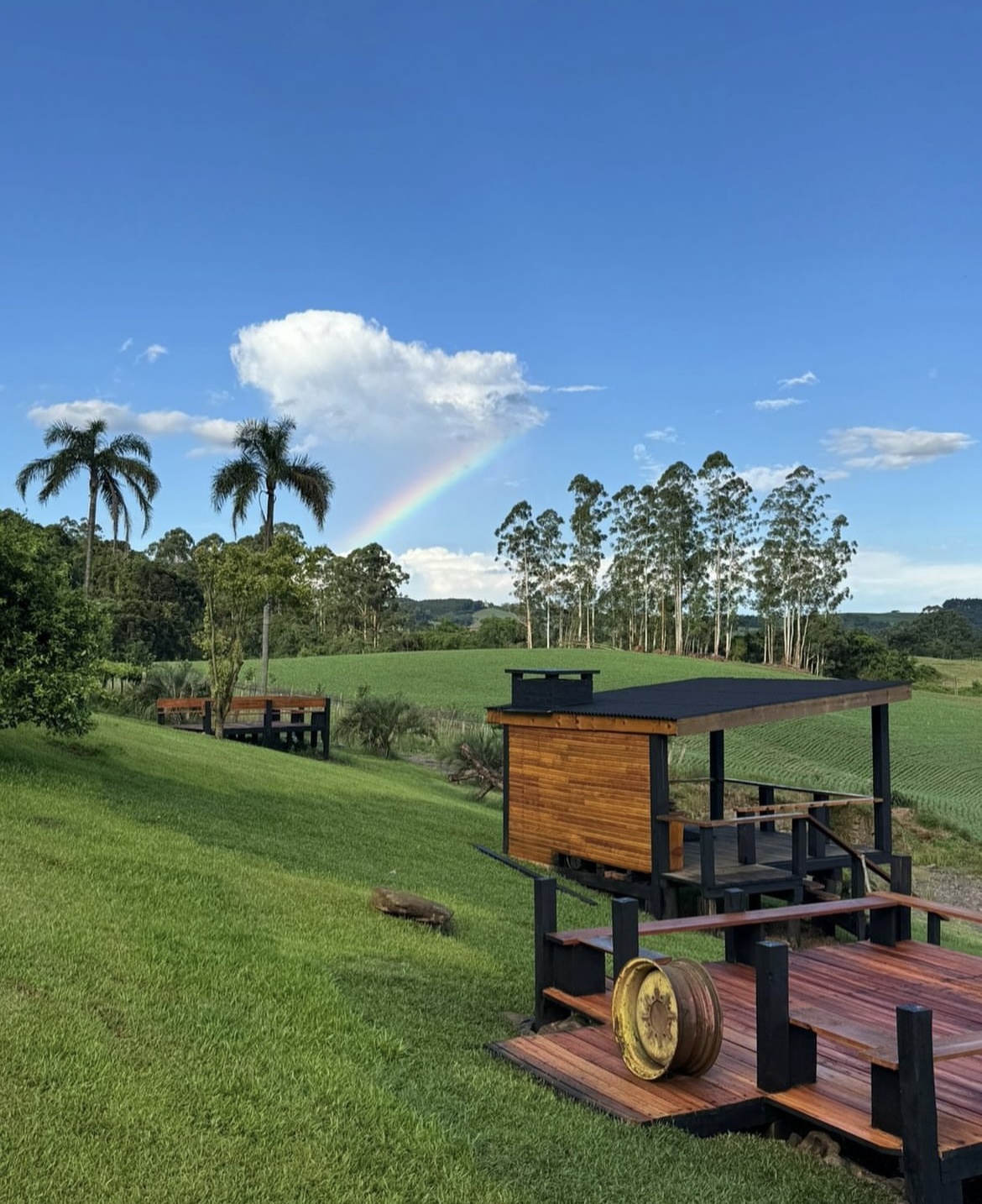 O Chalé Potro Negro, localizado na divisa entre Dois Lajeados e Vespasiano Correa, RS, oferece acesso asfaltado e proximidade com o maior viaduto da América Latina (V13). Com design rústico e sofisticado, o chalé combina pedra de taipa e madeira, criando um ambiente aconchegante para casais, famílias ou amigos, acomodando até 5 pessoas. Acomodações incluem cozinha completa com Airfryer, forno elétrico, micro-ondas, cooktop, geladeira frost free e adega com vinhos e espumantes. A sala conta com TV 4K de 55 polegadas, Netflix, lareira, ar condicionado e mesa de jantar. Dois quartos com camas queen e sistema de massagem, ambos com ar condicionado e TVs 4K. O chalé dispõe de amplo banheiro rústico, com aquecimento de toalhas e chuveiro quente ou frio. A área externa inclui jardins, pergolados, área gourmet, fire pit e decks rodeados por árvores. A fazendinha pode ser visitada ao final do dia. Acomodação pet-friendly, permitindo 1 cachorro de até 8kg por chalé.