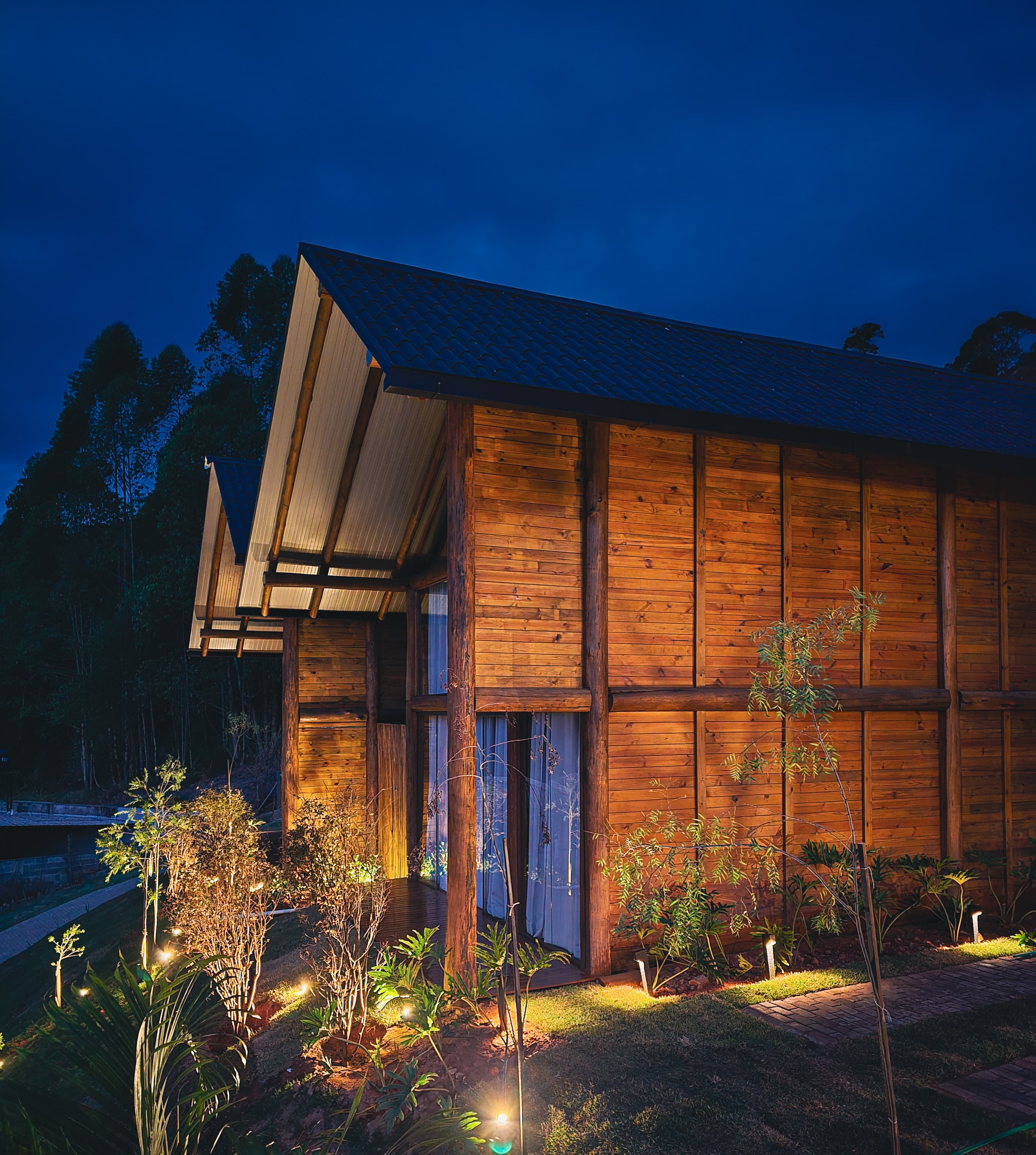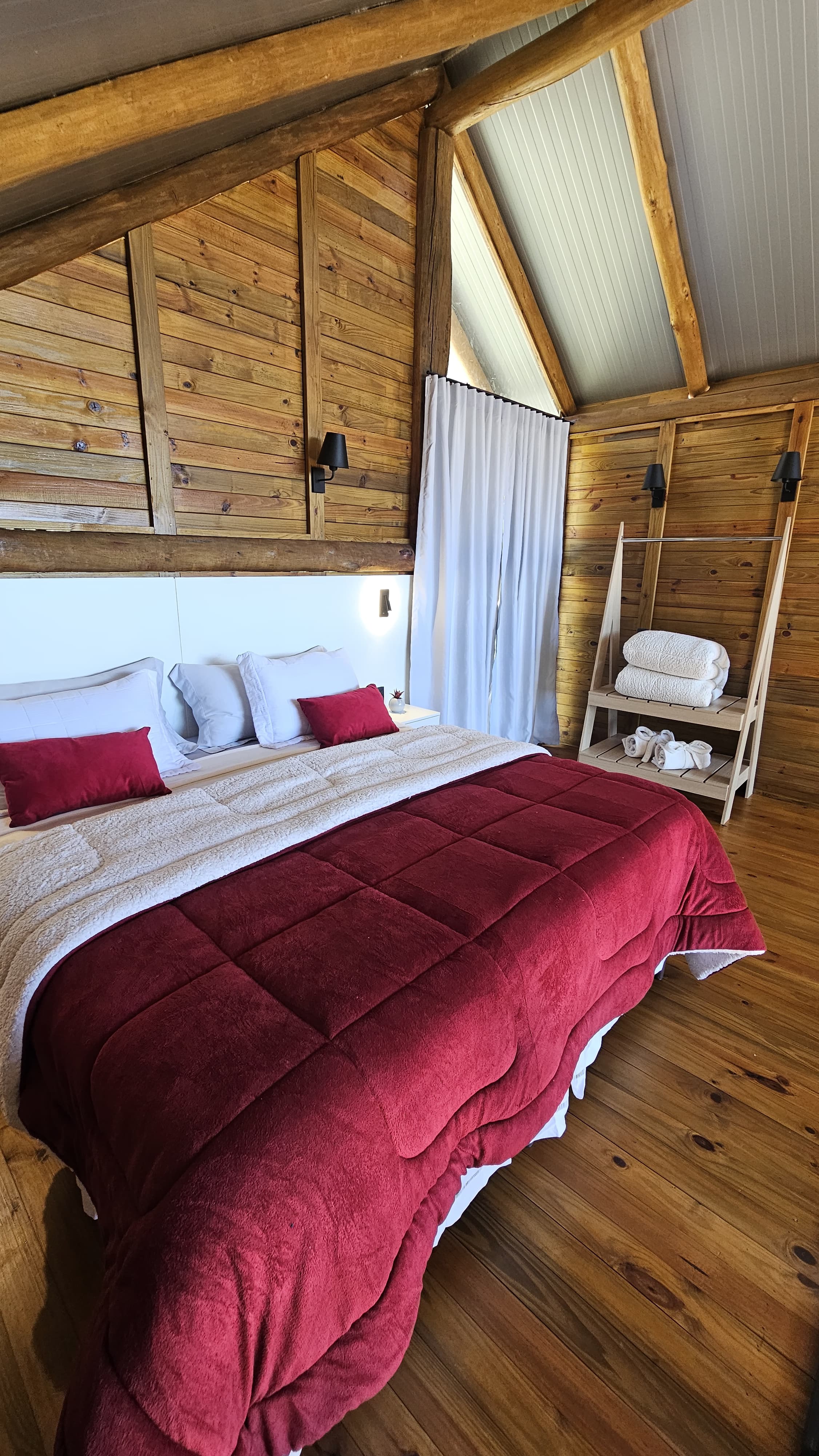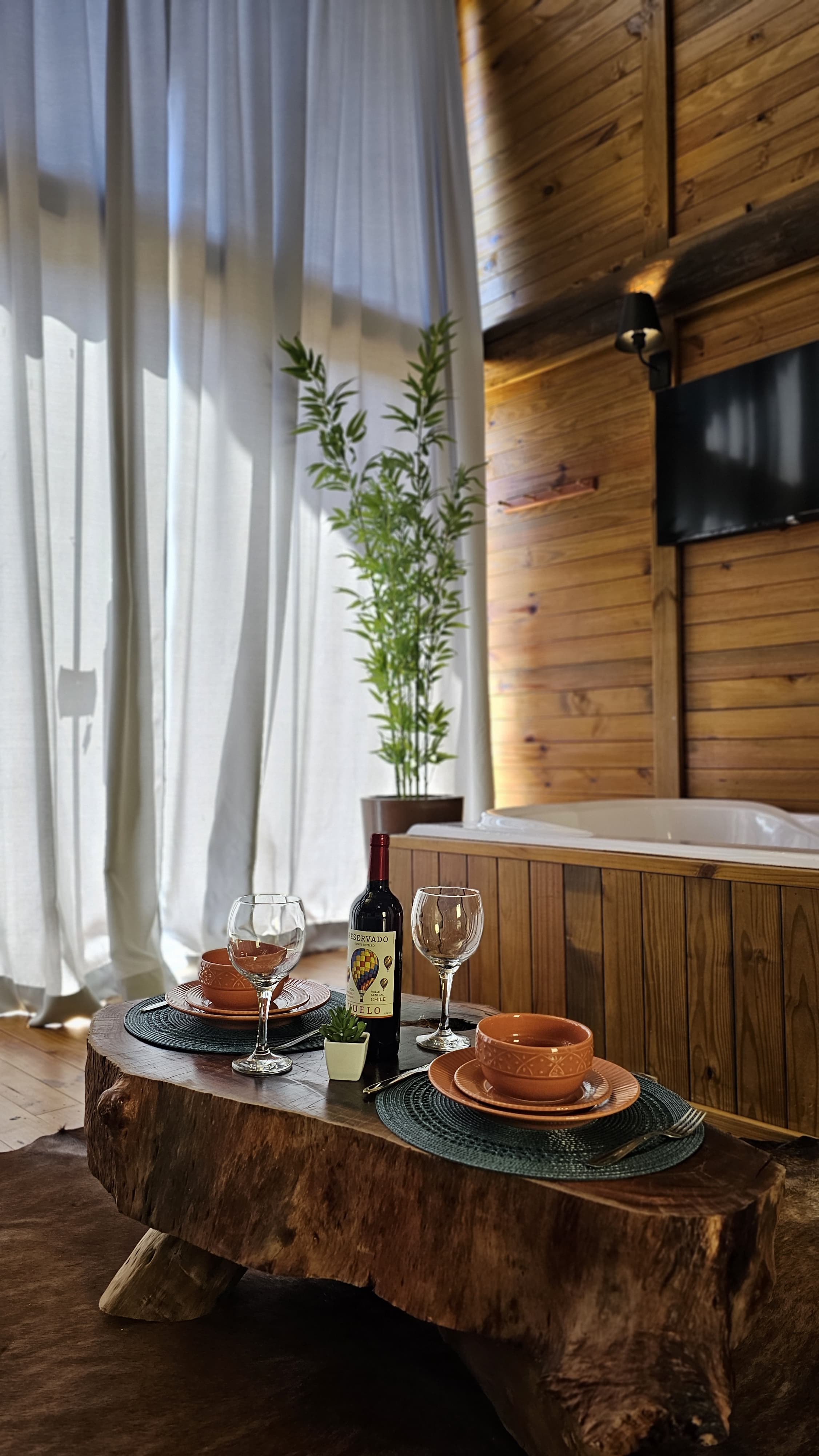 Com vista para as montanhas, os chalés estilo cabana oferecem uma estadia acolhedora, ideal para casais que valorizam privacidade, conforto e contato com a natureza. Cada unidade conta com cozinha completa com utensílio. Jacuzzi, criando o ambiente perfeito para relaxar em silêncio absoluto.