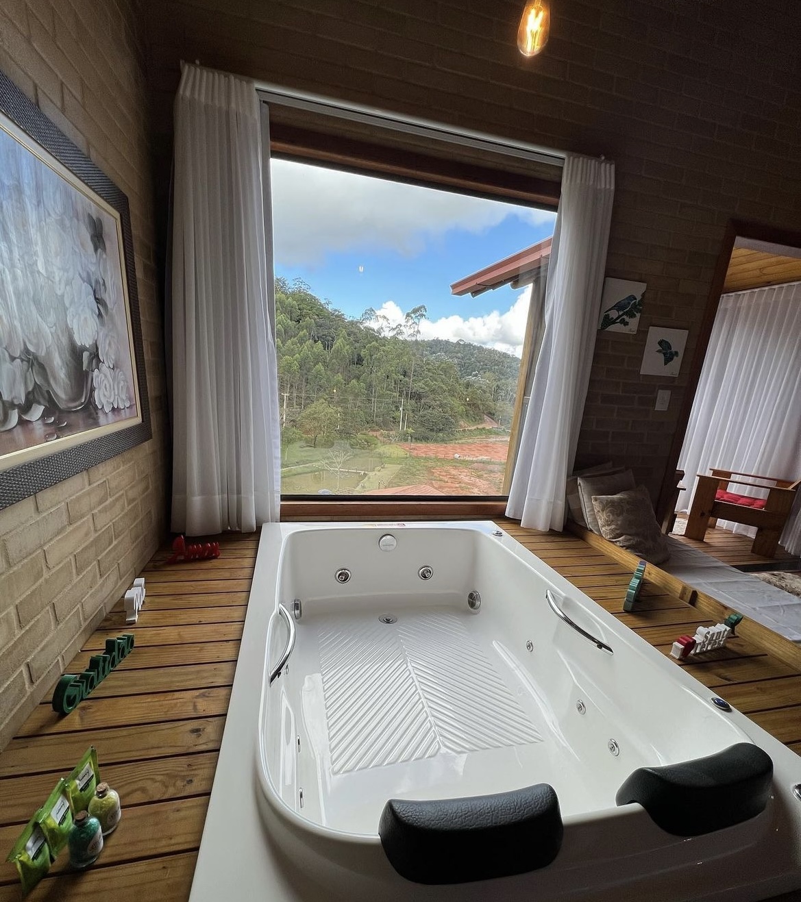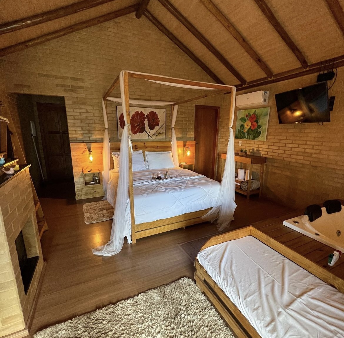Ar condicionado Secador de cabelo TV a cabo / Smart TV Jacuzzi / Ofurô / Banheira Coberta Frigobar Lareira Máquina de Café Enxoval de Luxo (+ Roupão e Pantufa) Sauna Cozinha Estação de trabalho (mesa e cadeira) Piscina Aquecida ou climatizada Borda Infinita Coberta