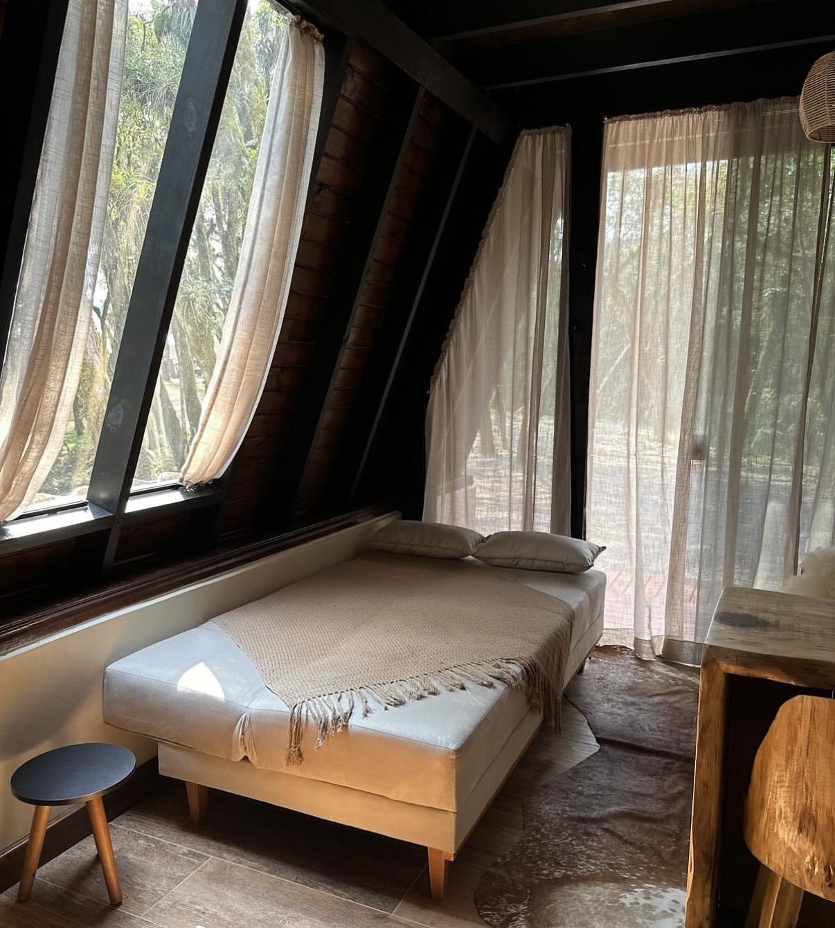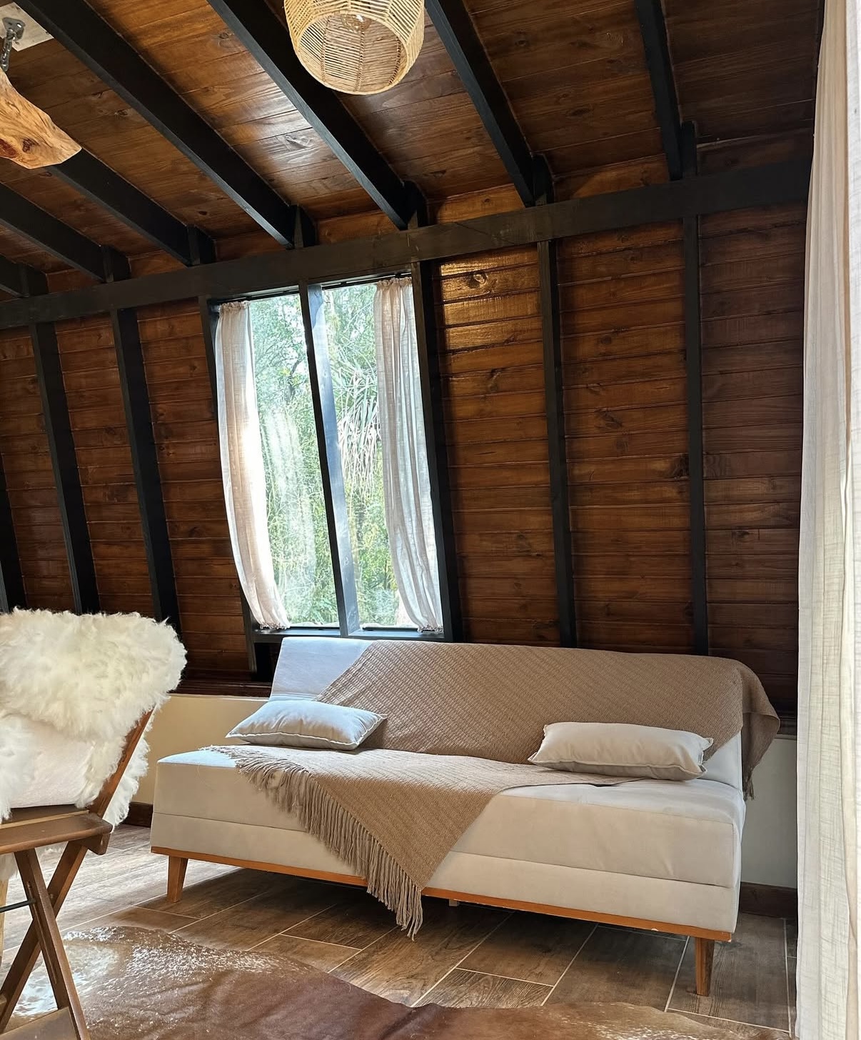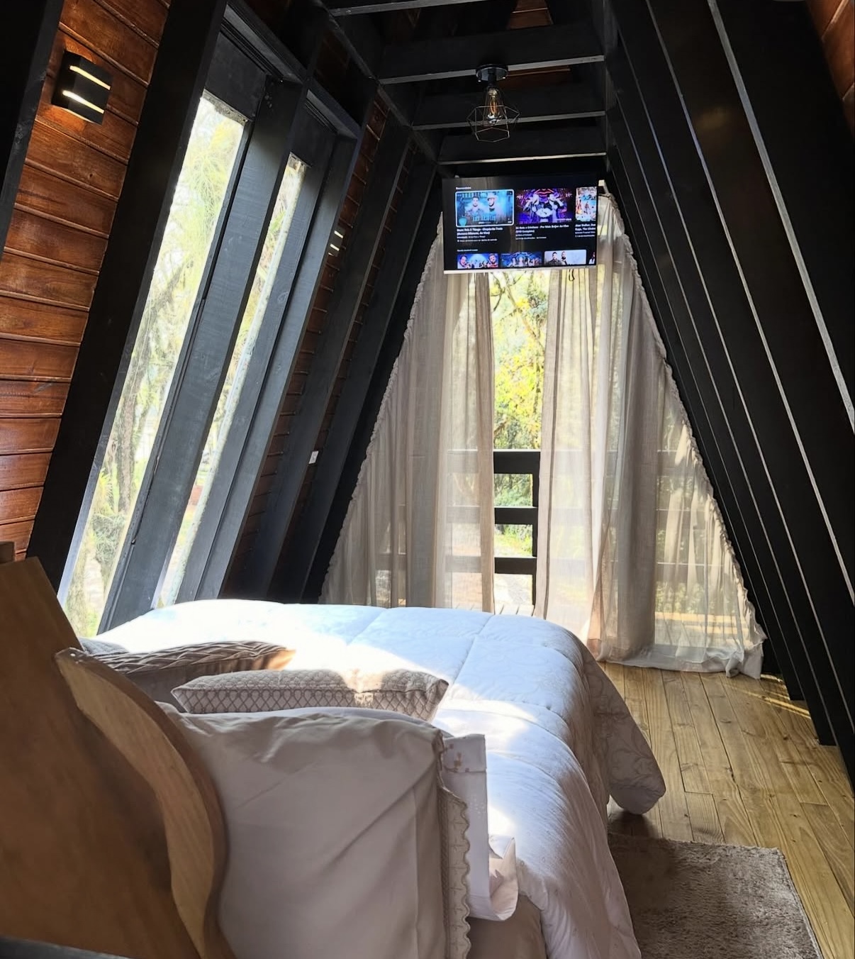 Atualmente contamos com dois Chalés da Mata: o Chalé Refúgio e o Chalé Sossego, ambos muito aconchegantes com banheira de hidromassagem e um espaço cercado pela natureza, ideal para quem busca tranquilidade e contato com o verde. Totalmente equipado e possuindo privacidade, oferece uma experiência única em meio a mata, perfeito para relaxar e renovar as energias.
