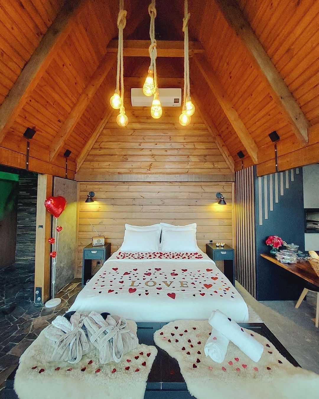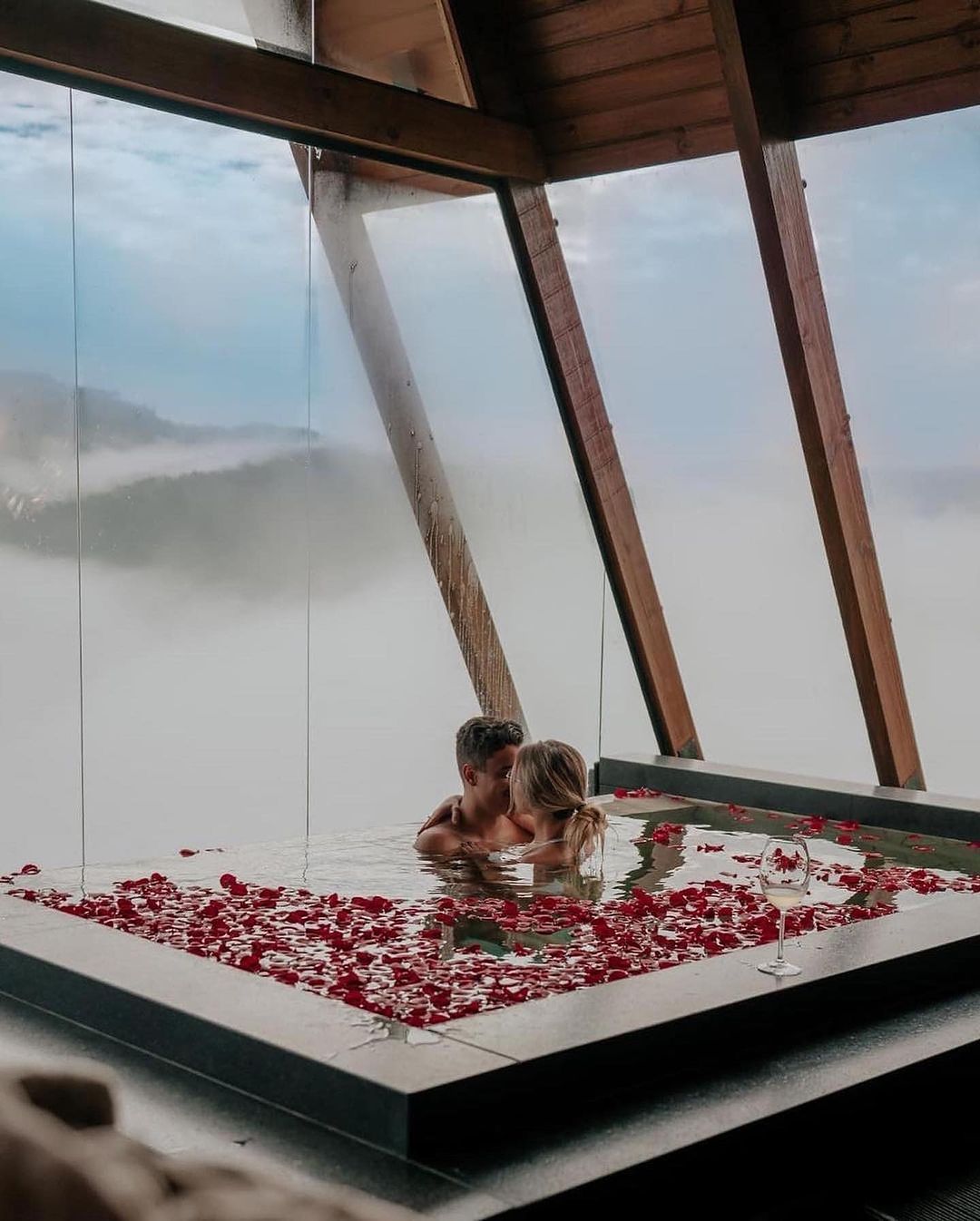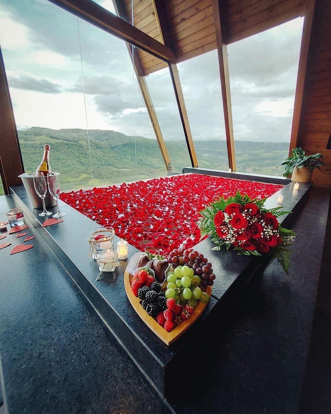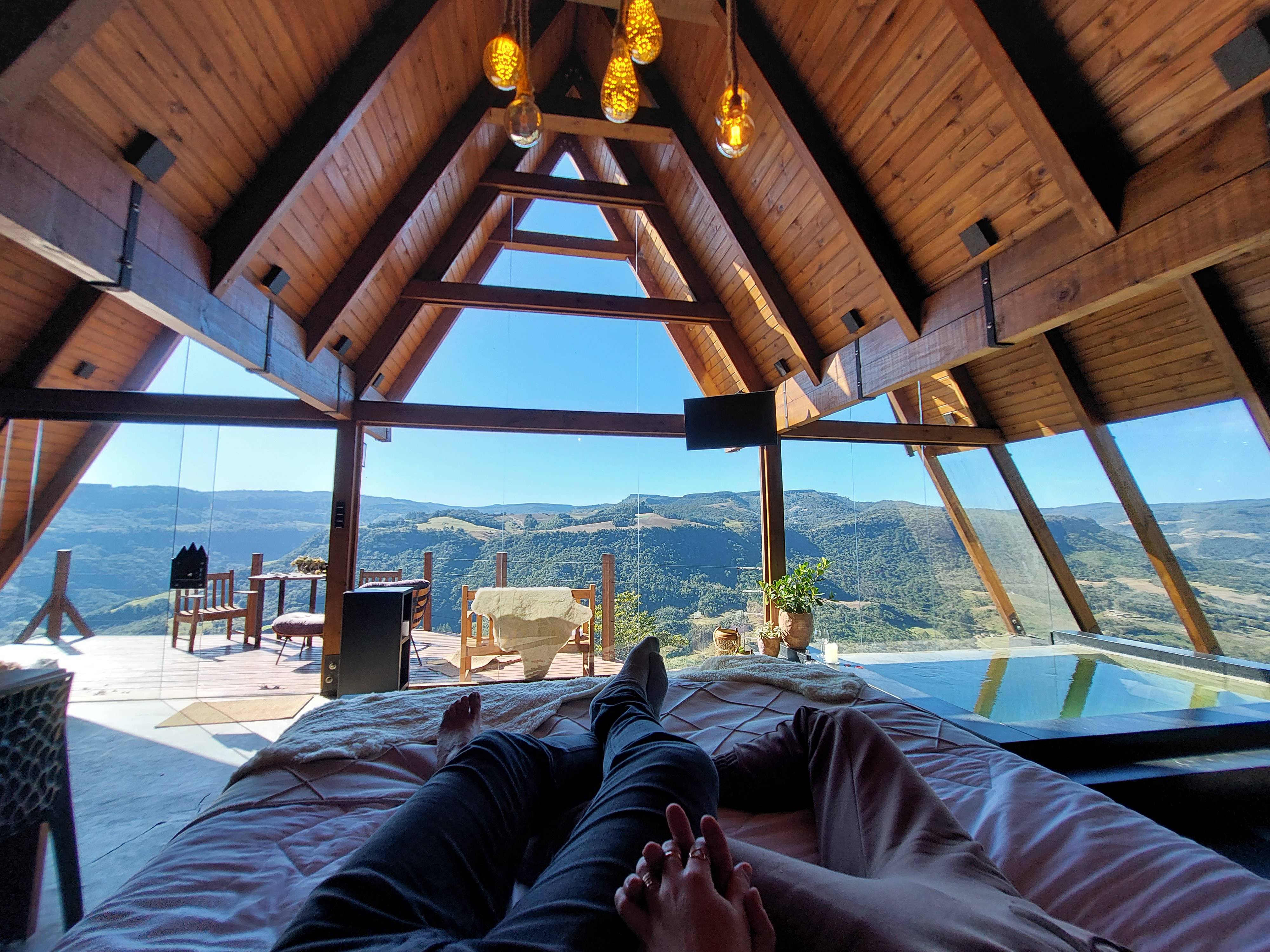 Construído com o propósito de ser um destino exclusivo para casais apaixonados viverem momentos únicos nas montanhas de Alfredo Wagner, com experiências sensoriais dentro do chalé como cachoeira e piscina, ambas feitas com pedras e com água de nascente. O Chalé possui 65 m² internos com piscina, e 30 m² de deck com vista para as montanhas e uma fazendinha de ovelhas e um belo jardim com flores. Muito além de um café da manhã, proporcionam uma verdadeira imersão gastronômica na Serra Catarinense com produtos coloniais da região e o melhor.