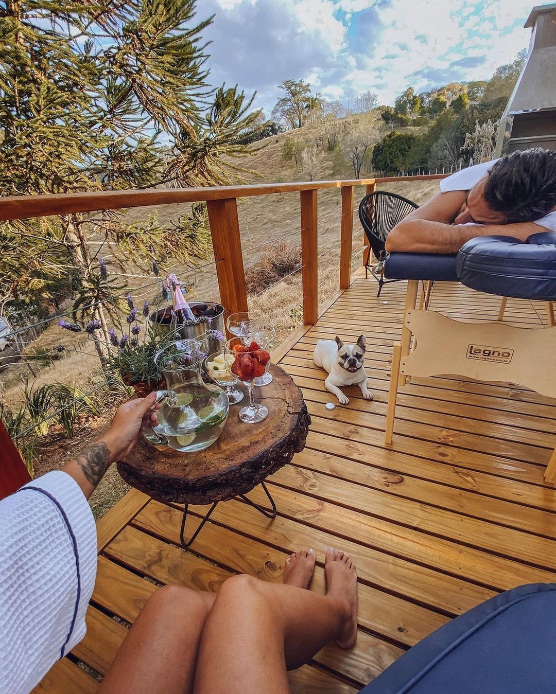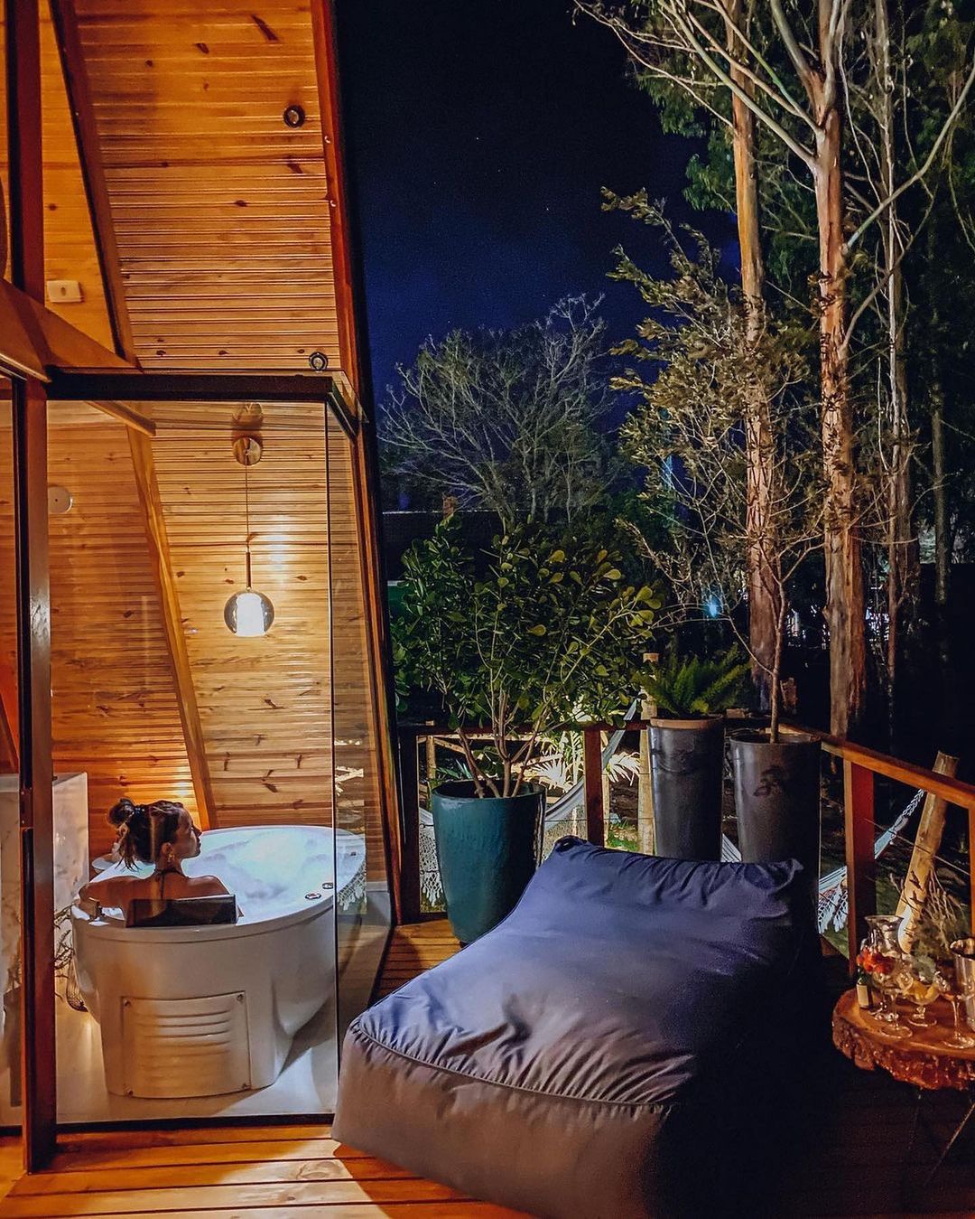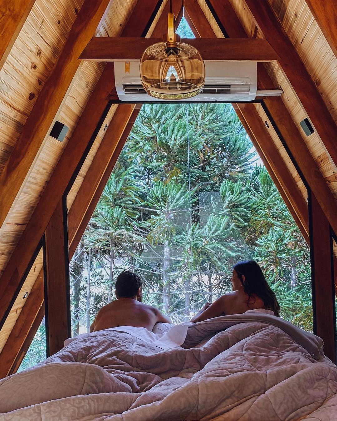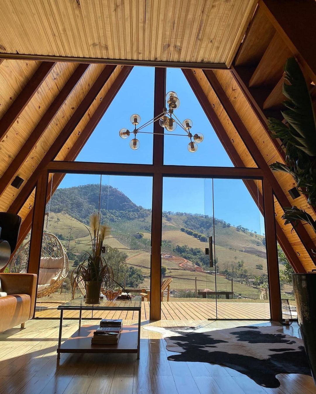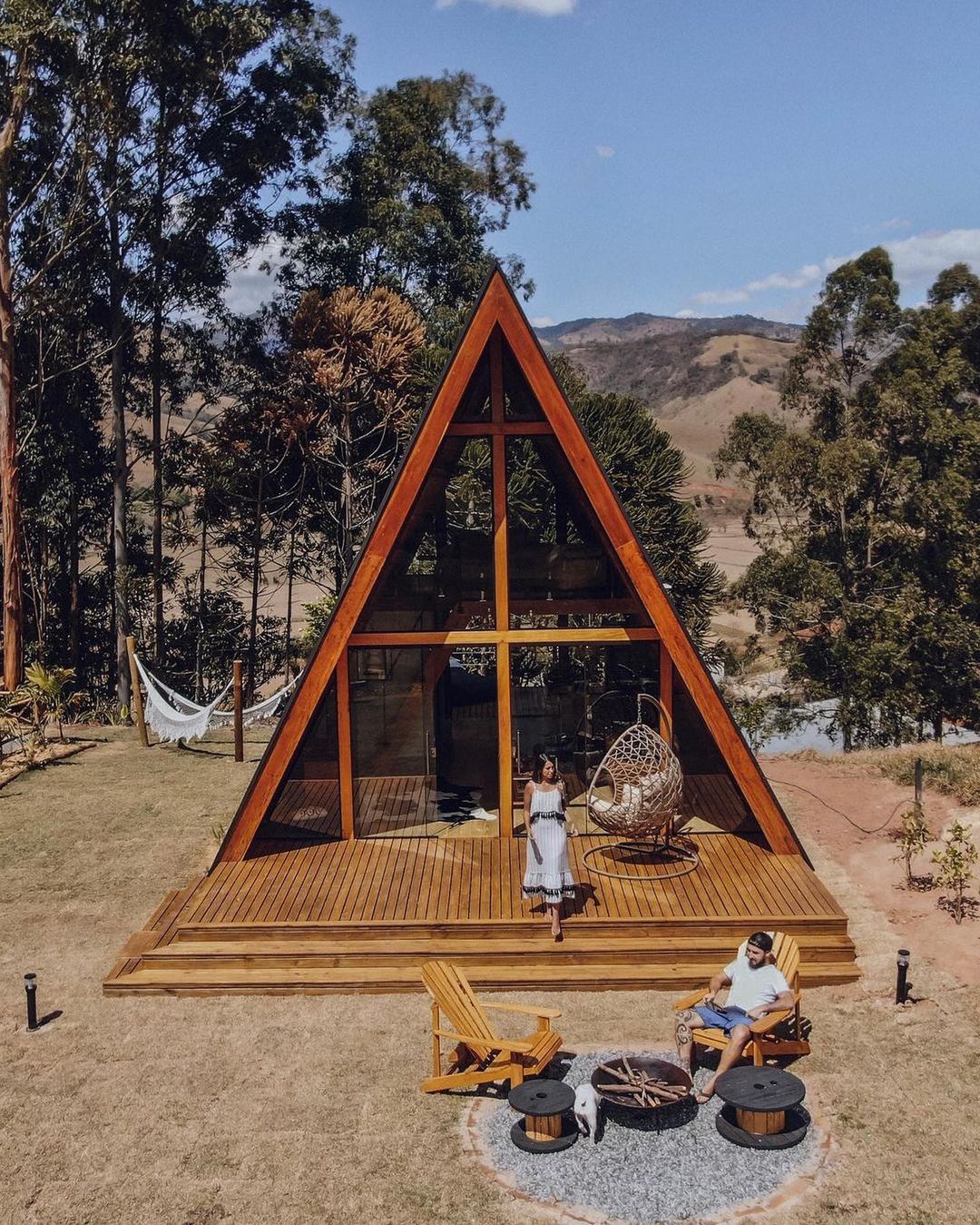 Assistir ao pôr do sol à beira da fogueira, tomar um banho de banheira com vista para as montanhas e curtir a paz e a tranquilidade da natureza: isso é apenas um recorte do que essa hospedagem oferece. A ideia do espaço de hospedagem, que é independente (via Airbnb) mas oferece serviços e infraestrutura, é proporcionar aos hóspedes uma experiência que integra conforto e contato com a natureza, sendo uma opção próxima das montanhas e no melhor estilo tradicional de cabana A-Frame com toque moderno. Inclusive, o projeto lindo foi desenvolvido pelo escritório da Setta Arquitetura, que tem feito trabalhos incríveis e especializados em design com cabanas no Brasil. Cada detalhe foi pensado para que os momentos ali sejam realmente especiais.