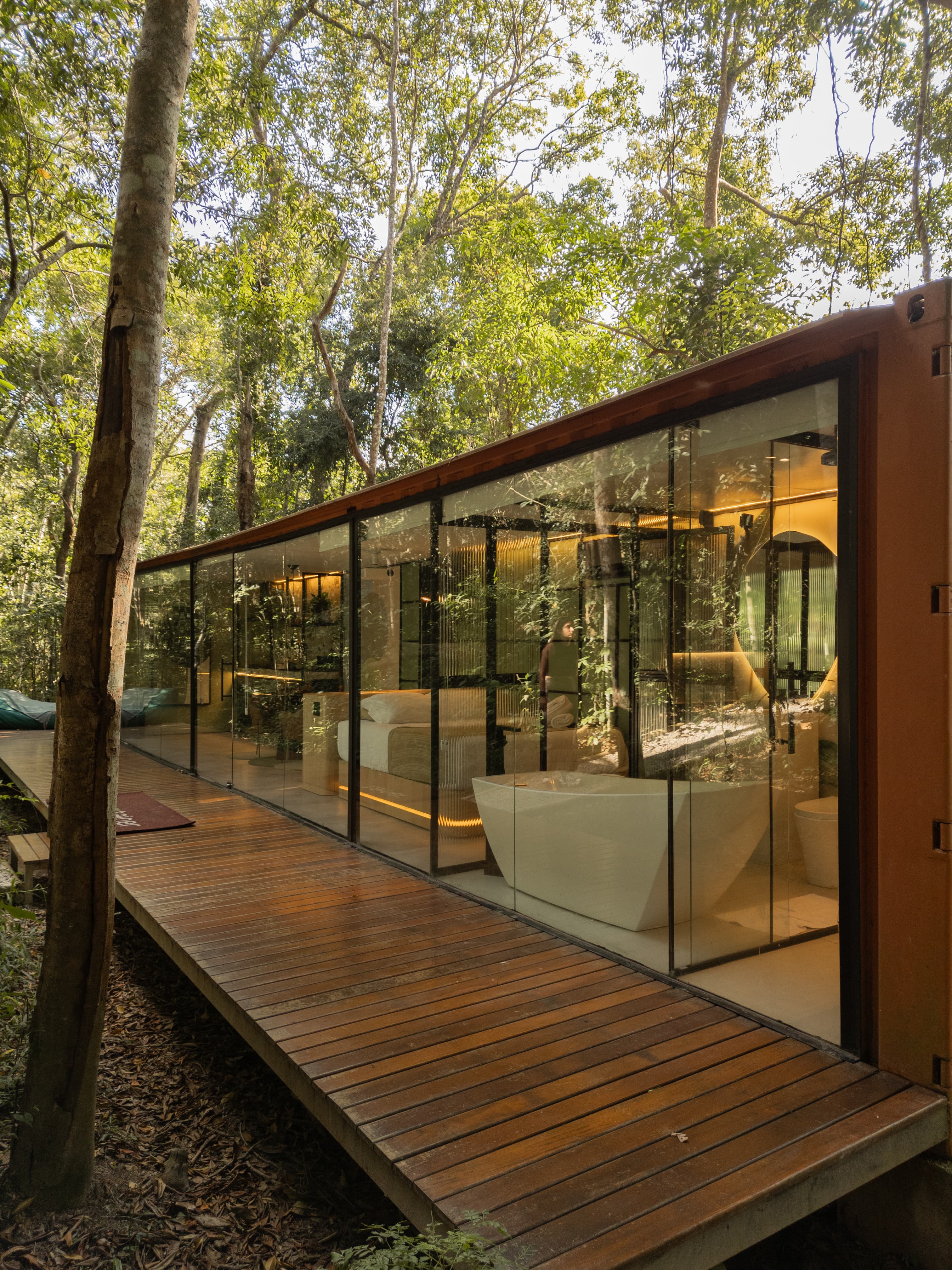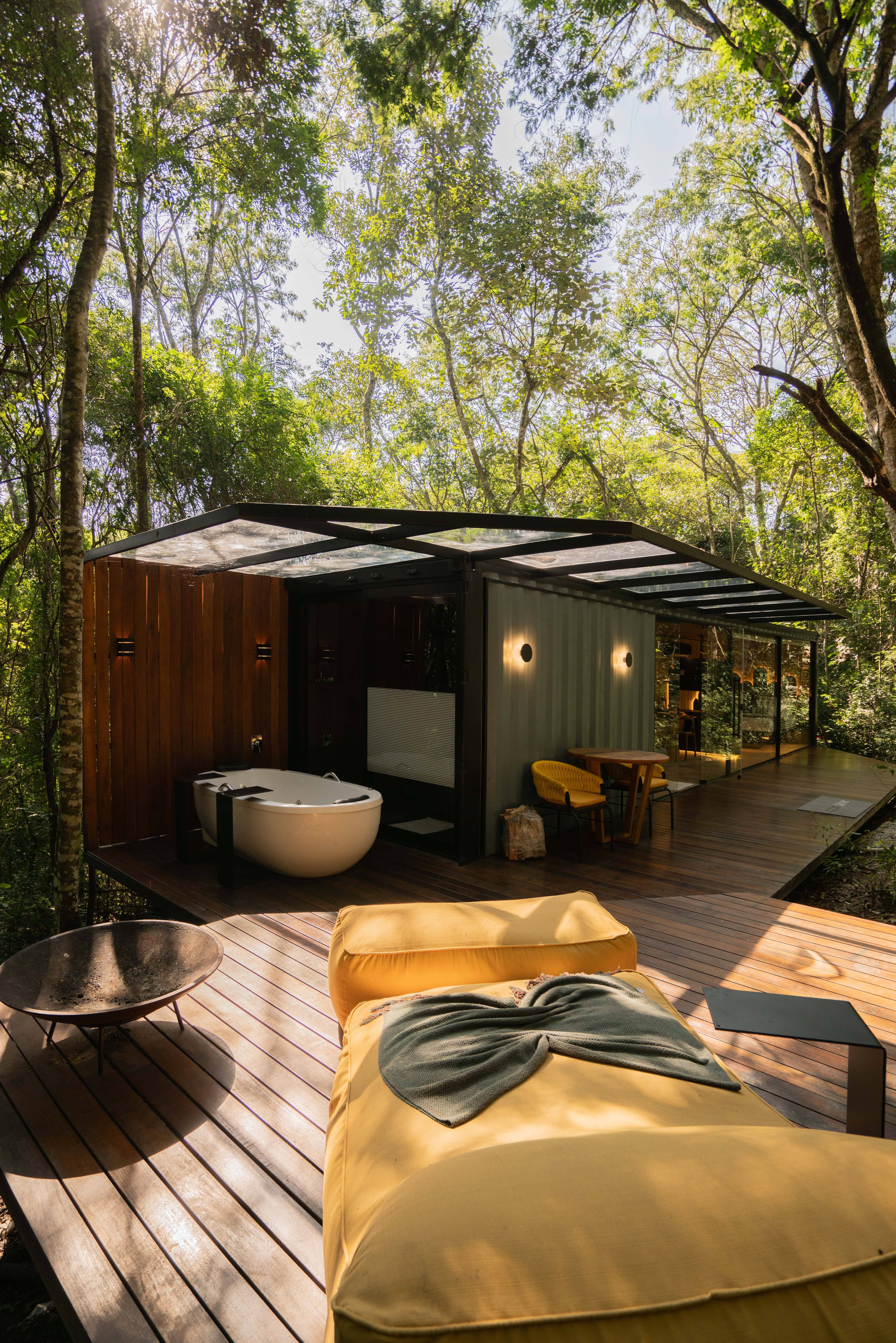 O Container na Mata é muito mais que uma acomodação; é um refúgio de sofisticação e conexão com a natureza. Imagine-se relaxando em uma banheira com vista para a Mata.