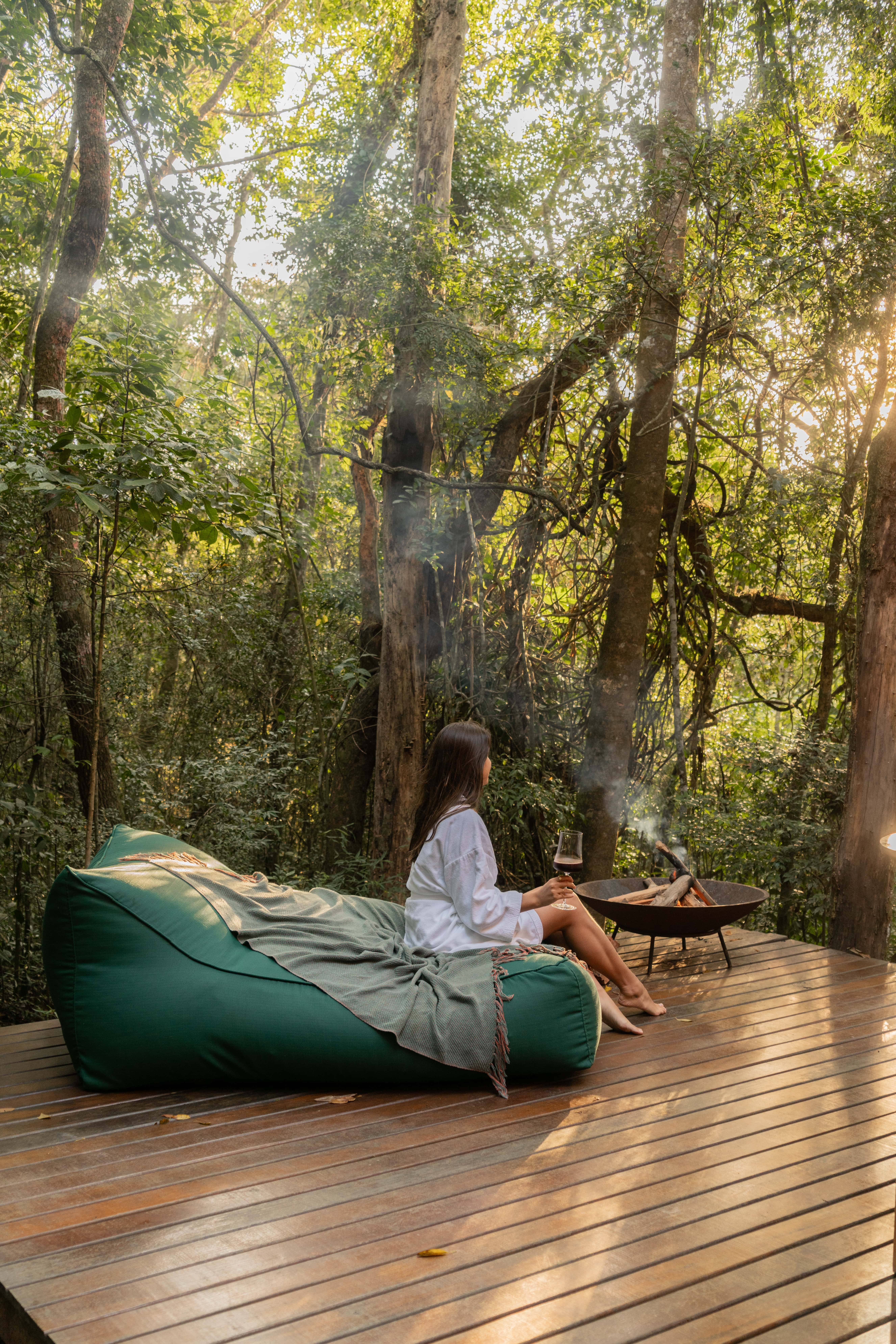 Com um amplo deck para clima de fogueira e um puf super confortável, é o lugar perfeito para admirar o céu estrelado de dentro da Mata.
