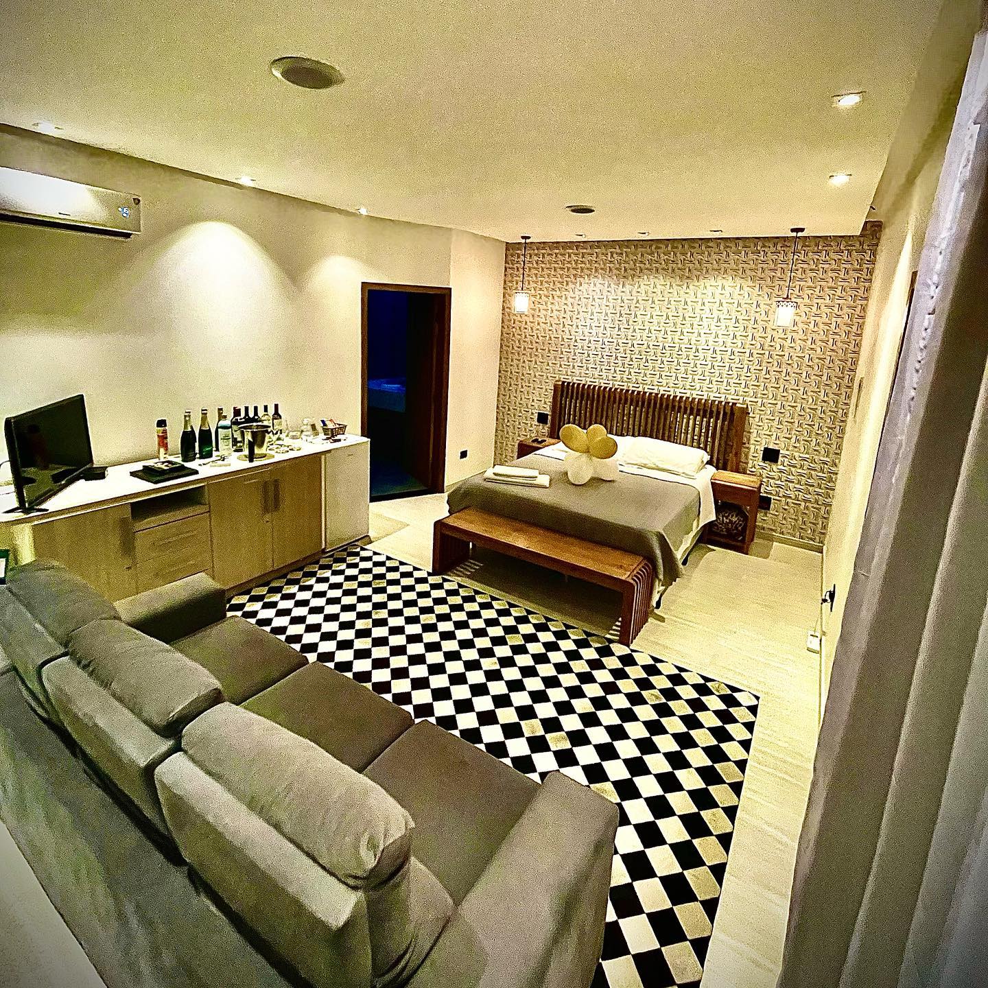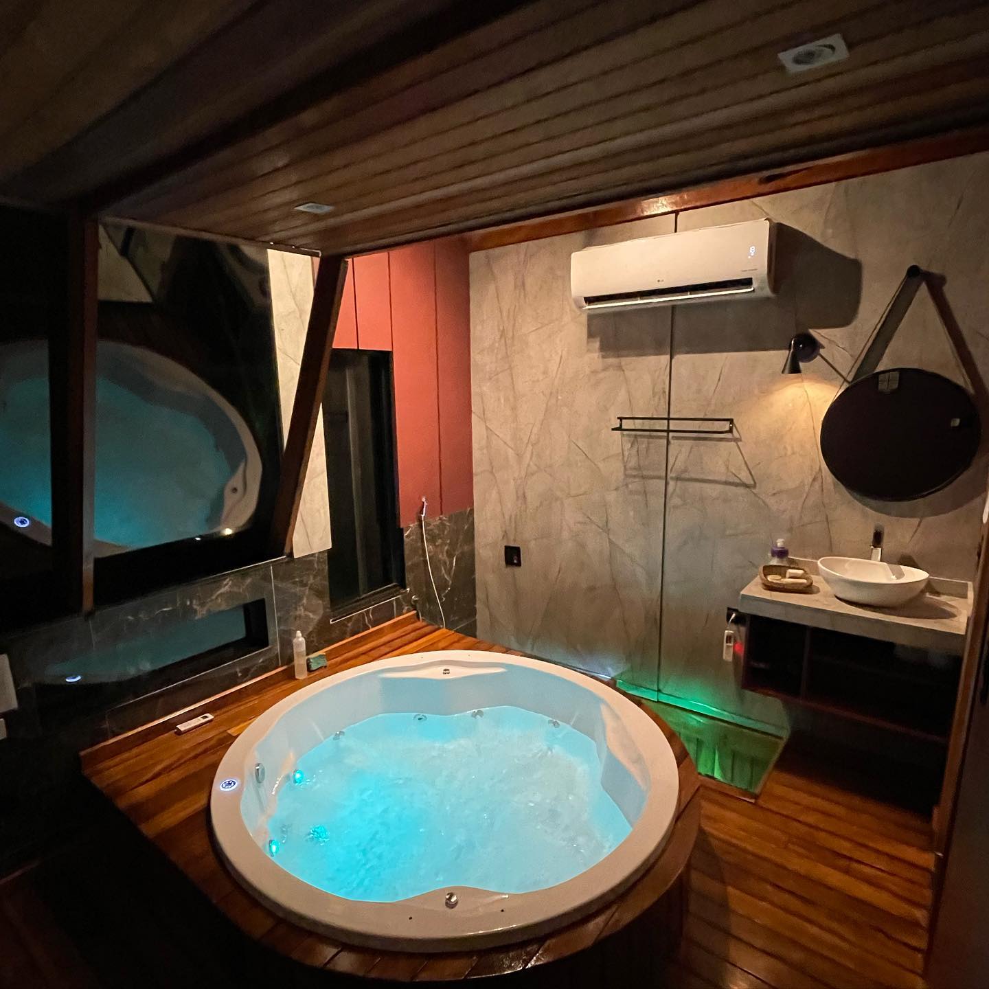 Ar condicionado Secador de cabelo TV a cabo / Smart TV Jacuzzi / Ofurô / Banheira Coberta Frigobar Lareira Máquina de Café Enxoval de Luxo (+ Roupão e Pantufa) Sauna Cozinha Estação de trabalho (mesa e cadeira) Piscina Aquecida ou climatizada Borda Infinita Coberta