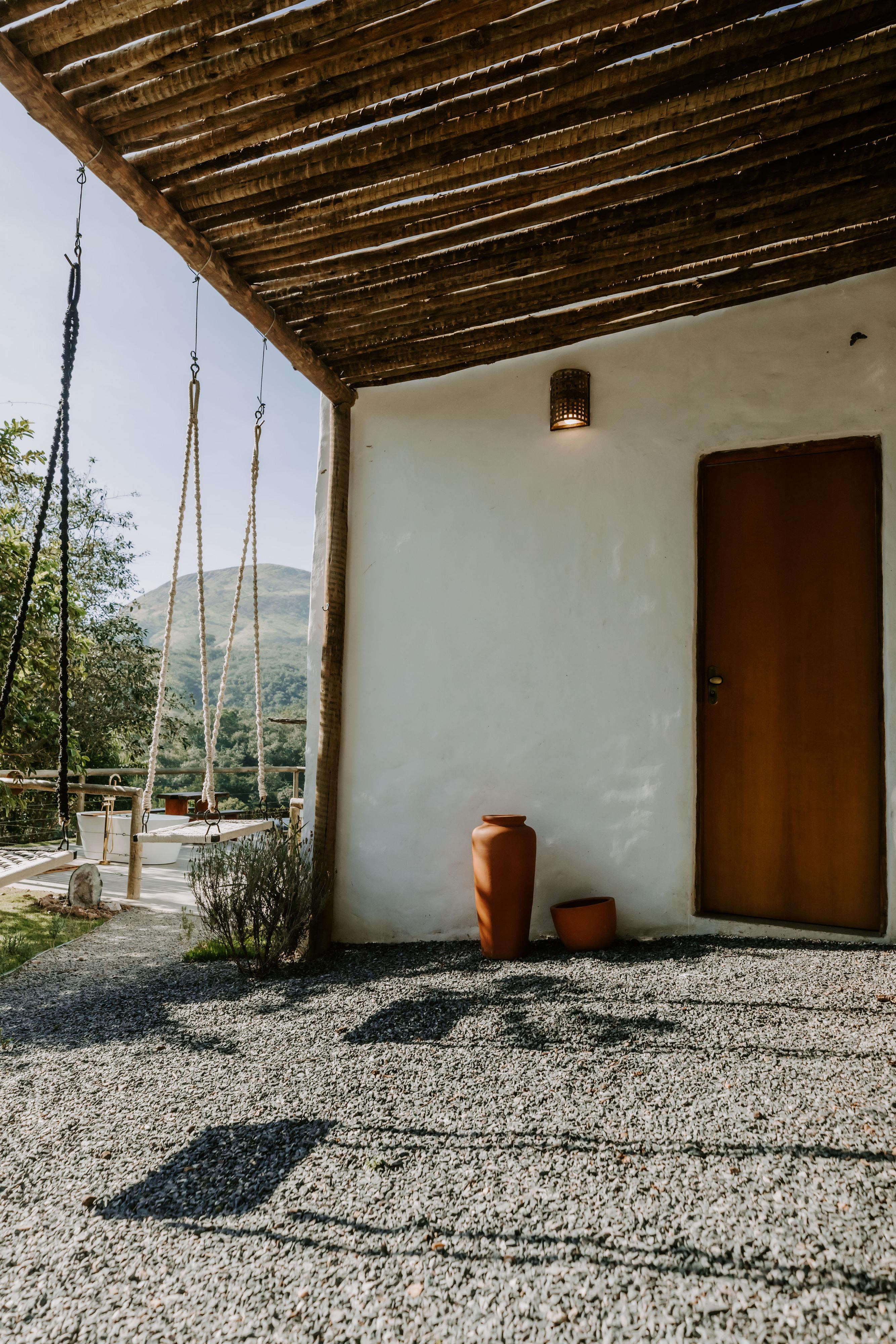 Relaxe na banheira de imersão interna com cromoterapia, experimente a cozinha completa e equipada e aproveite a sala de estar com sofá-cama e projetor. A Tiny possui 2 mezaninos, um com cama de casal e outro com um espaço livre dedicado à meditação e conexão. Na área externa, encontra-se tudo o que é necessário para desfrutar da vista para o morro. Um ofurô que chega a 40 graus e um espaço gourmet com churrasqueira.