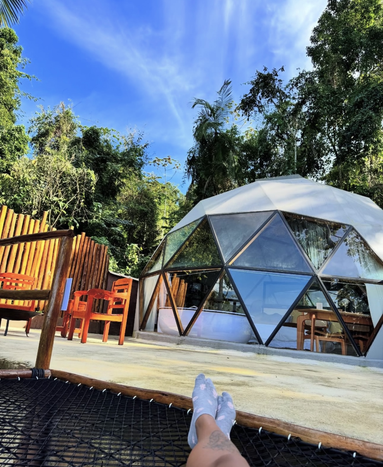 O Domo Aysú é um refúgio pensado com carinho em cada detalhe. Ideal para casais que buscam se desconectar do mundo e viverem dias de paz, descanso, romance e conexão com a natureza. Possuímos duas cozinhas completamente equipadas, fogo de chão, churrasqueira, banheira de hidromassagem com vista mar, Wi-Fi, telão e rede suspensa. Localização segura há apenas 15 minutos do centro histórico de Paraty - RJ