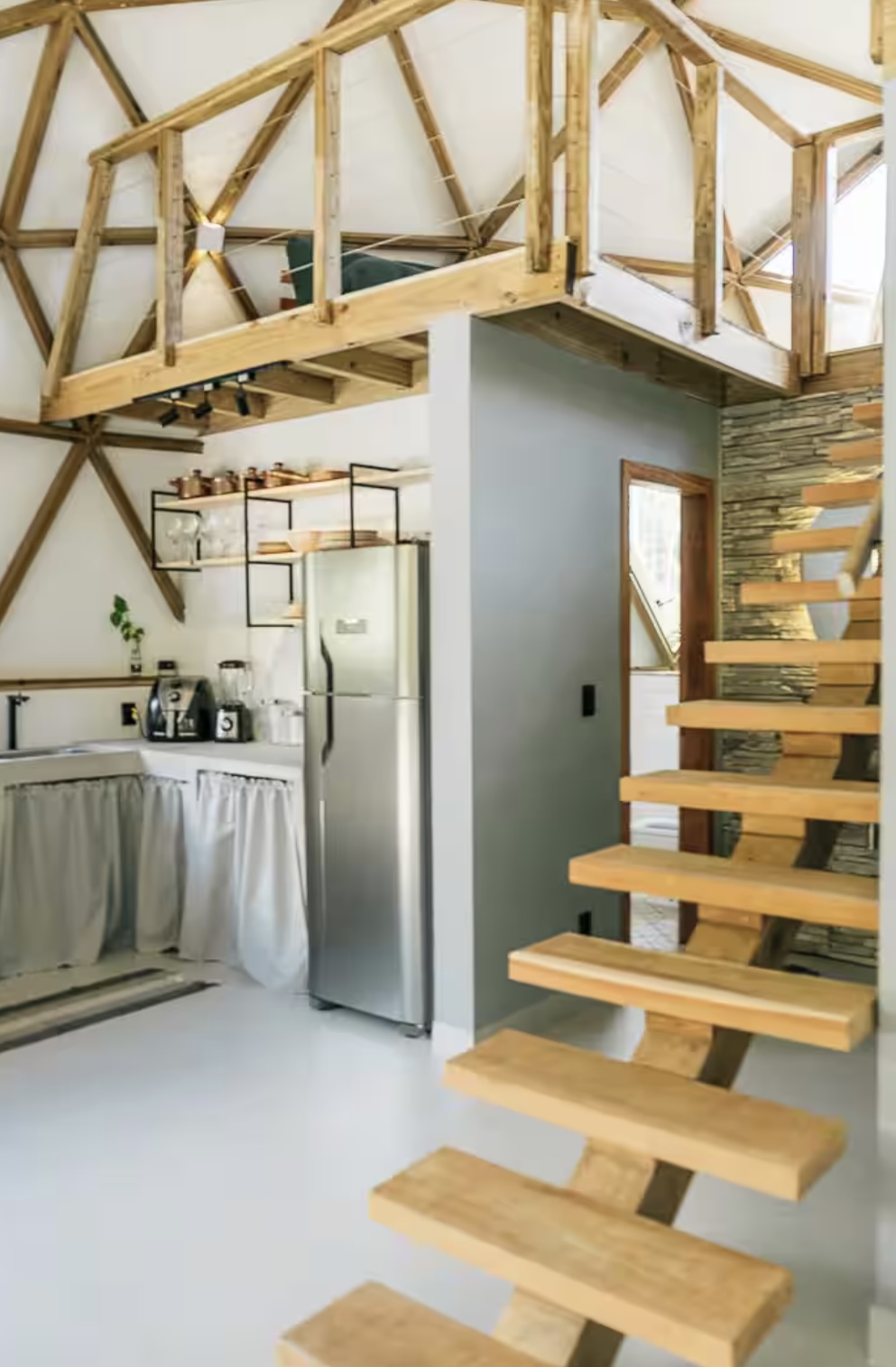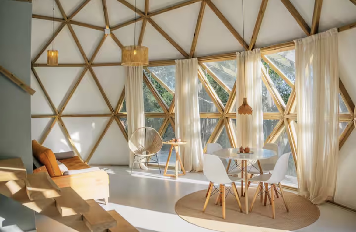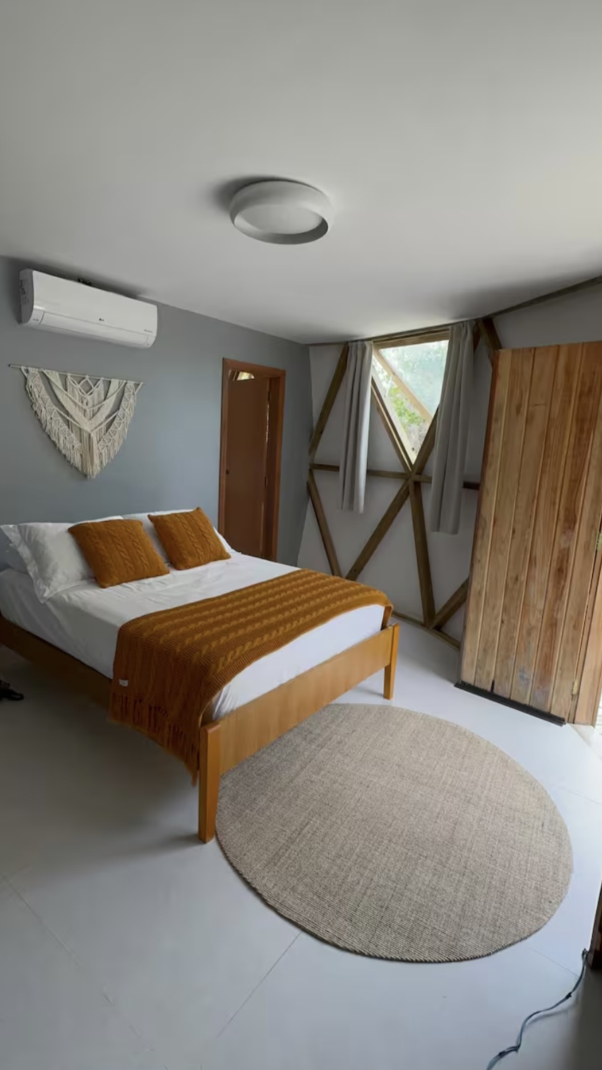 Descubra o equilíbrio perfeito entre natureza e conforto no Domo Pataxi, um refúgio único em formato geodésico. Totalmente climatizado, o domo oferece um ambiente integrado e acolhedor com sala, cozinha e mezanino, iluminado naturalmente pelas amplas janelas que trazem a beleza da paisagem para dentro. No Domo, você se conecta com a natureza enquanto desfruta de todo o conforto necessário para relaxar e renovar as energias.