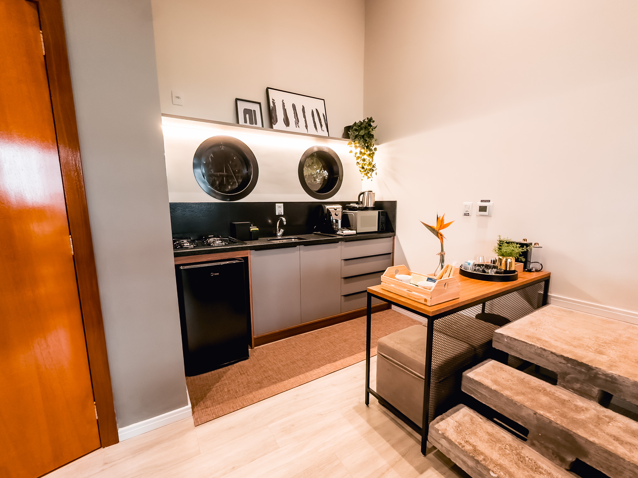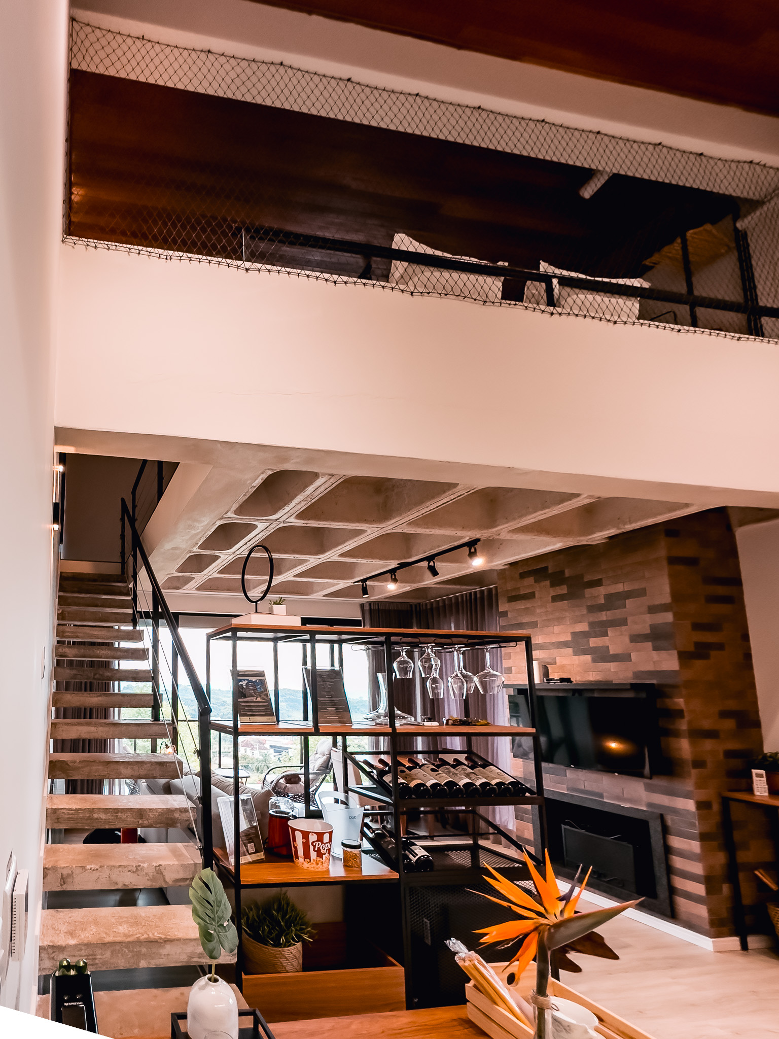 As pousadas contam com construções independentes e completas, distribuídas em dois andares, com varandas externas em ambos os pisos e vista encantadora do pôr do sol. A combinação entre autonomia, conforto e cenário inspirador transforma a estadia em uma vivência exclusiva, perfeita para quem deseja desfrutar do melhor que a terra dos vinhedos tem a oferecer.