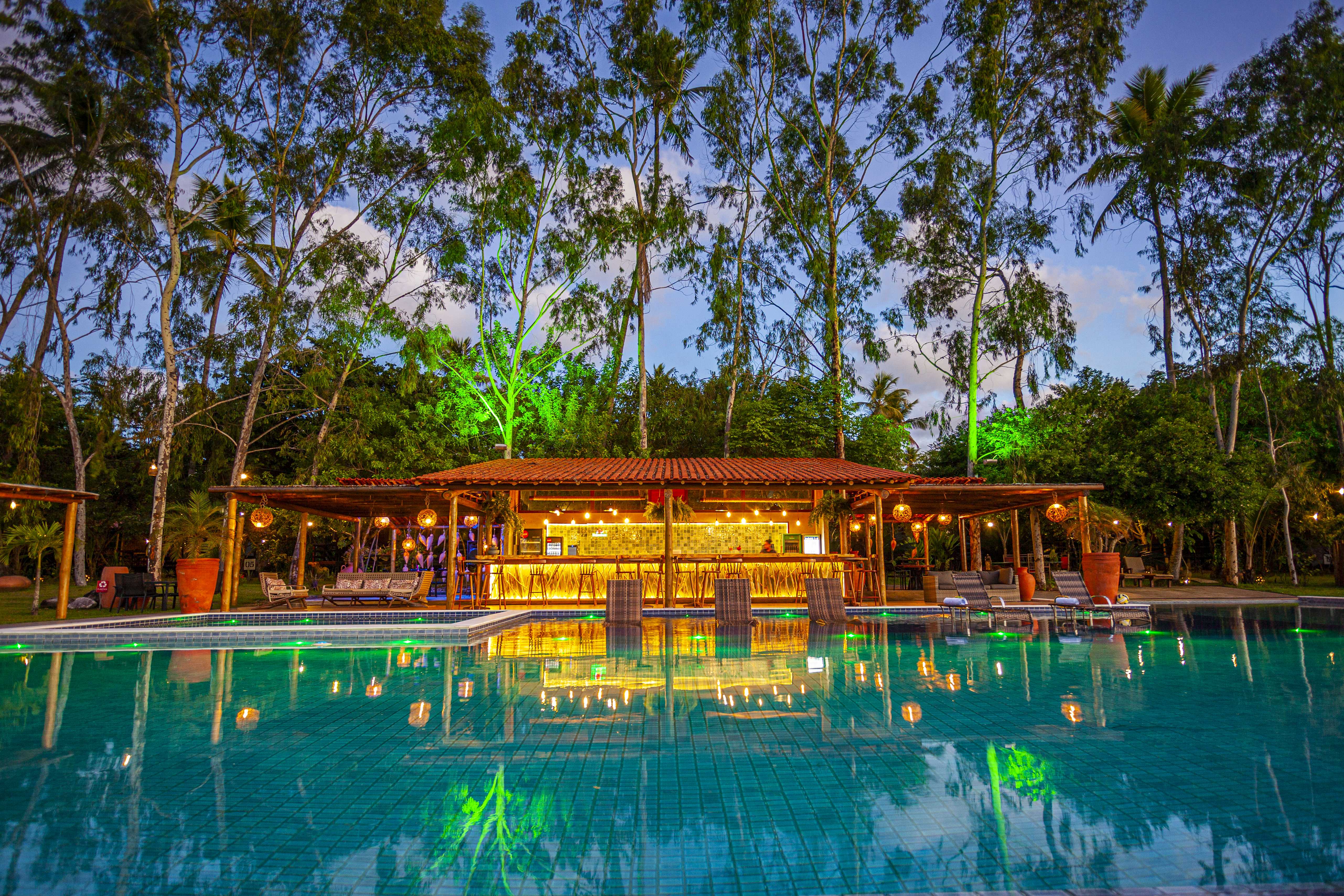 Localizada em uma antiga fazenda de coqueiros, a pousada dispõe de 21 chalés em madeira e vidro integrados com o ambiente natural. Os quartos (chalés) não possuem televisões, pois o foco é mergulhar nas experiências naturais da fauna e da flora local.