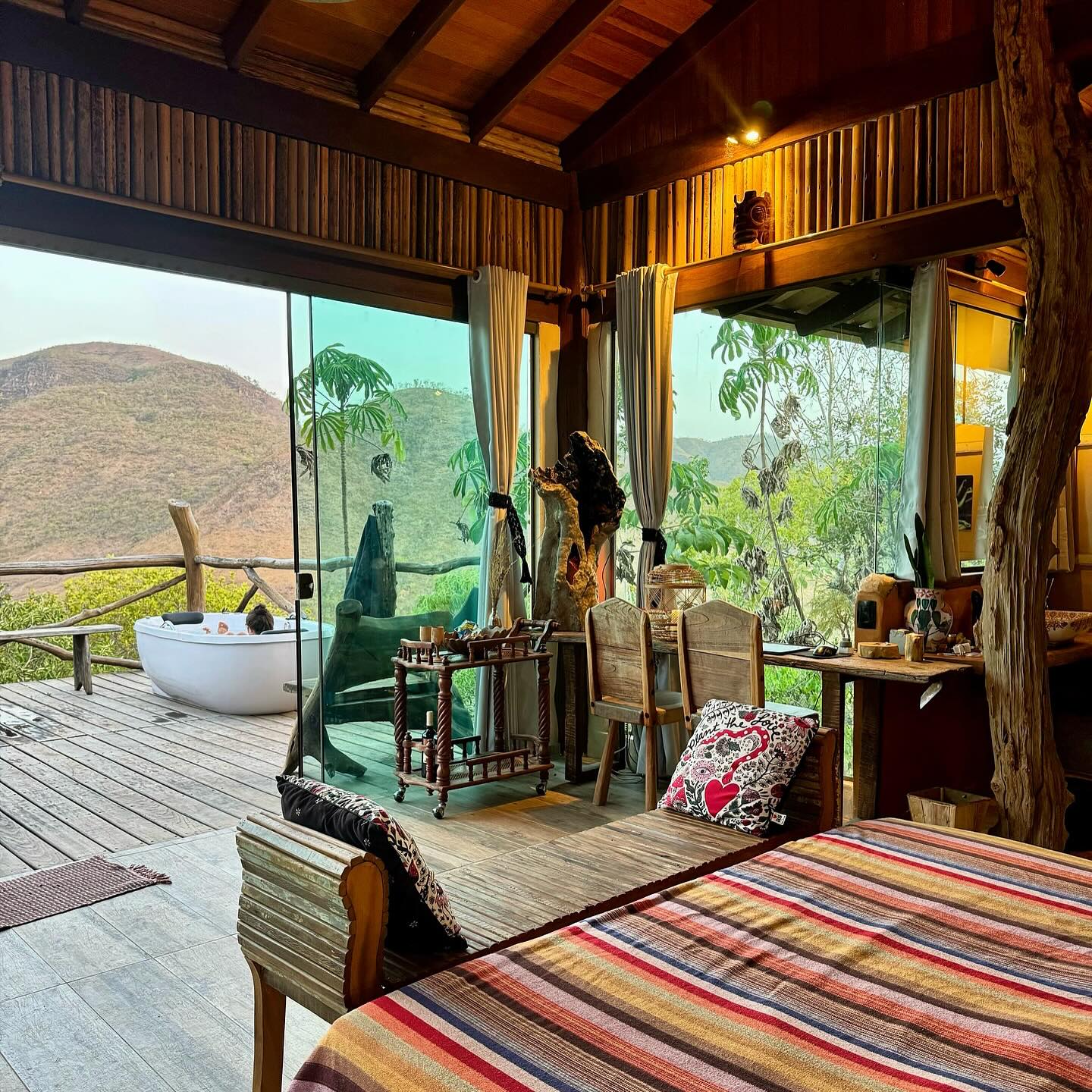 Aqui, você poderá se banhar nas águas cristalinas e medicinais do Rio São Miguel, além de vivenciar uma experiência imersiva, onde a natureza e o conforto caminham lado a lado. As acomodações rústicas oferecem todo o conforto necessário para que você aproveite a beleza do Cerrado em sua essência.