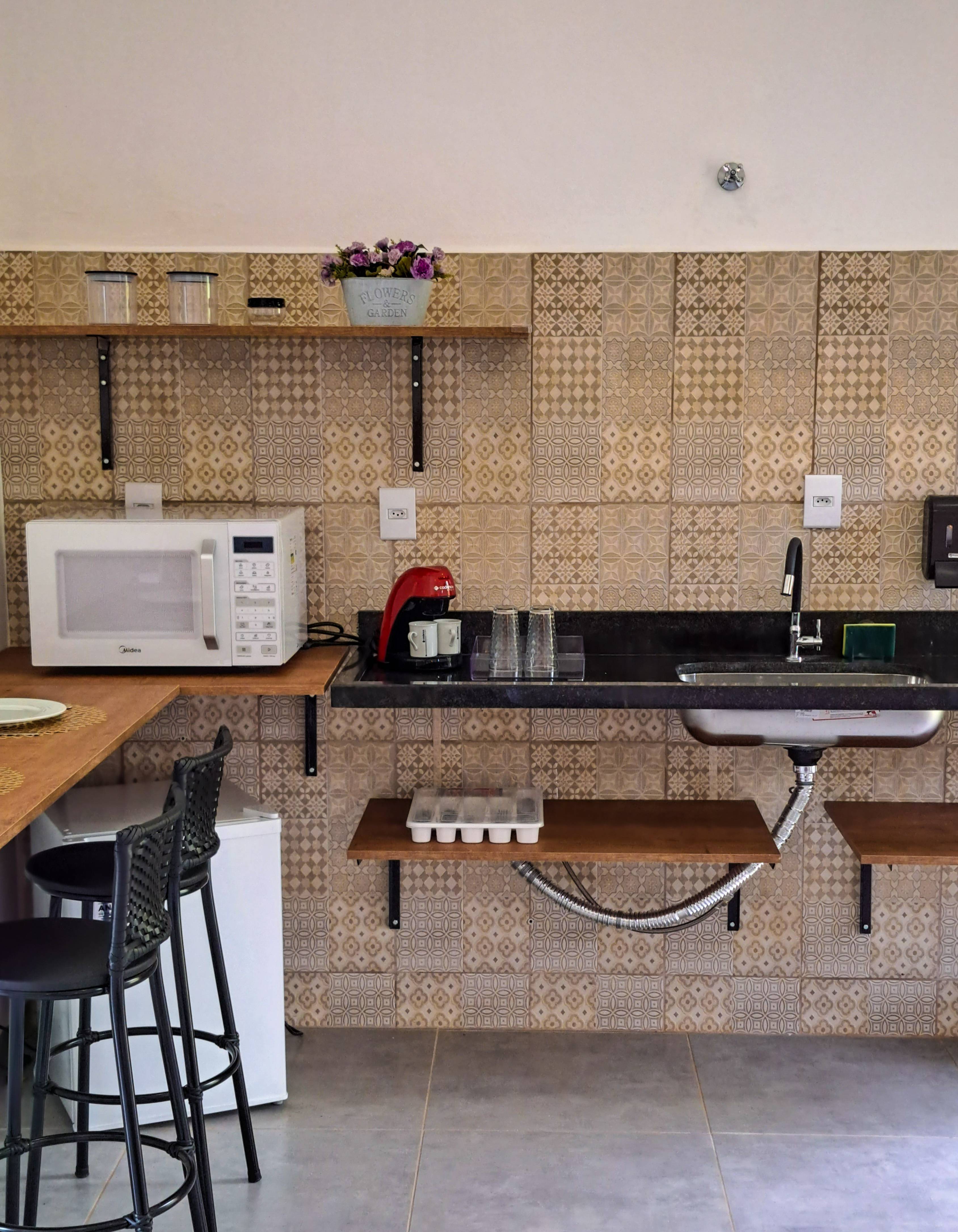 Possuí sistema de self-checkin com fechadura eletrônica e disponibiliza kit de café da manhã incluso na diária. Este kit é composto de torradas, geleias, café, leite em pó, chá, queijo Polenguinho, suco de laranja, damasco, ameixa e minibrownie.