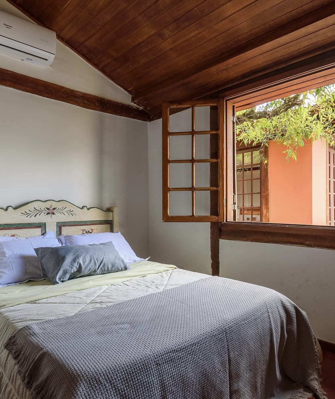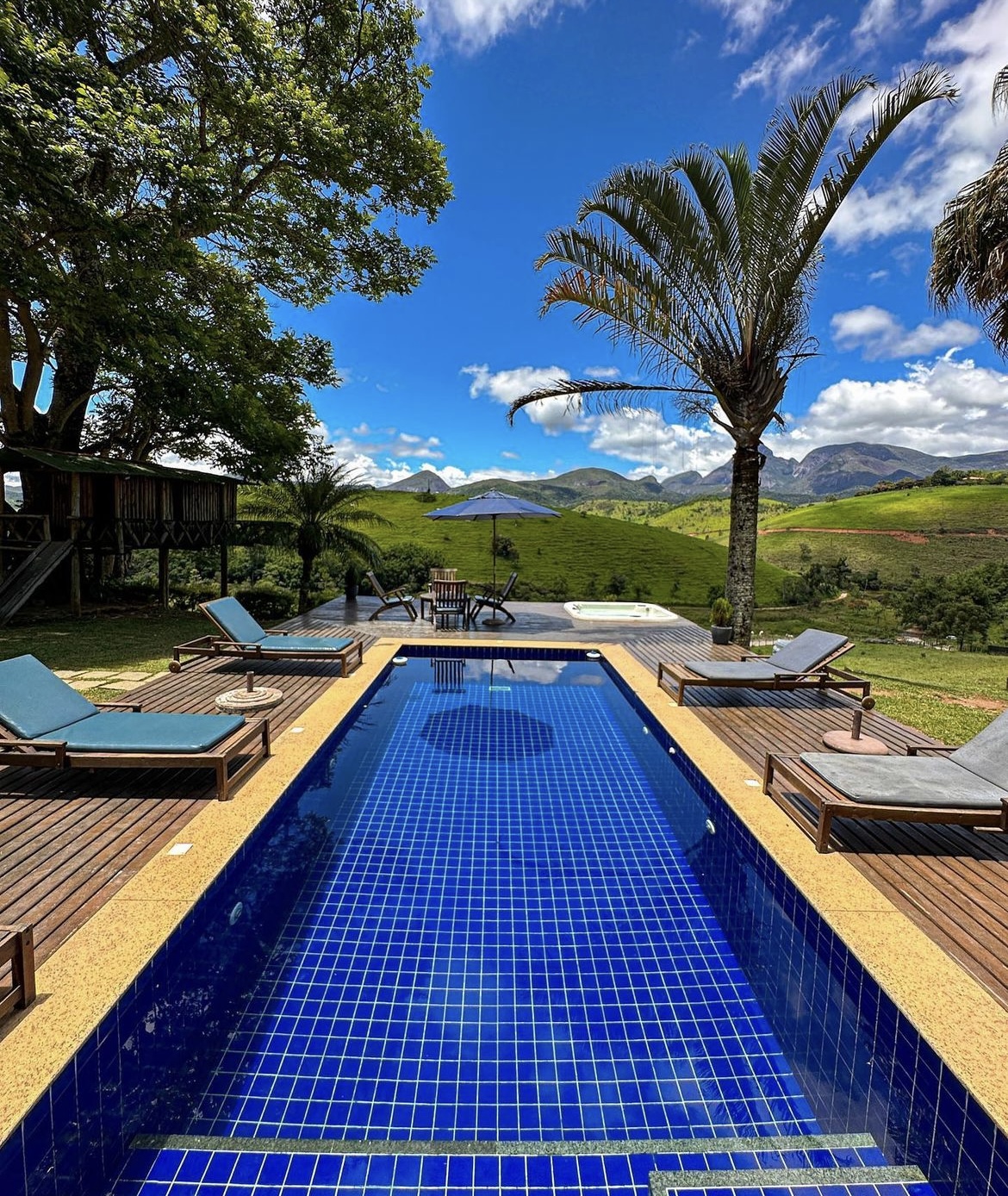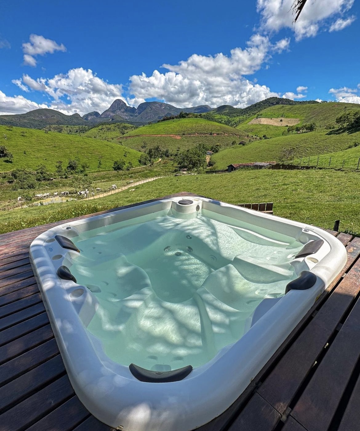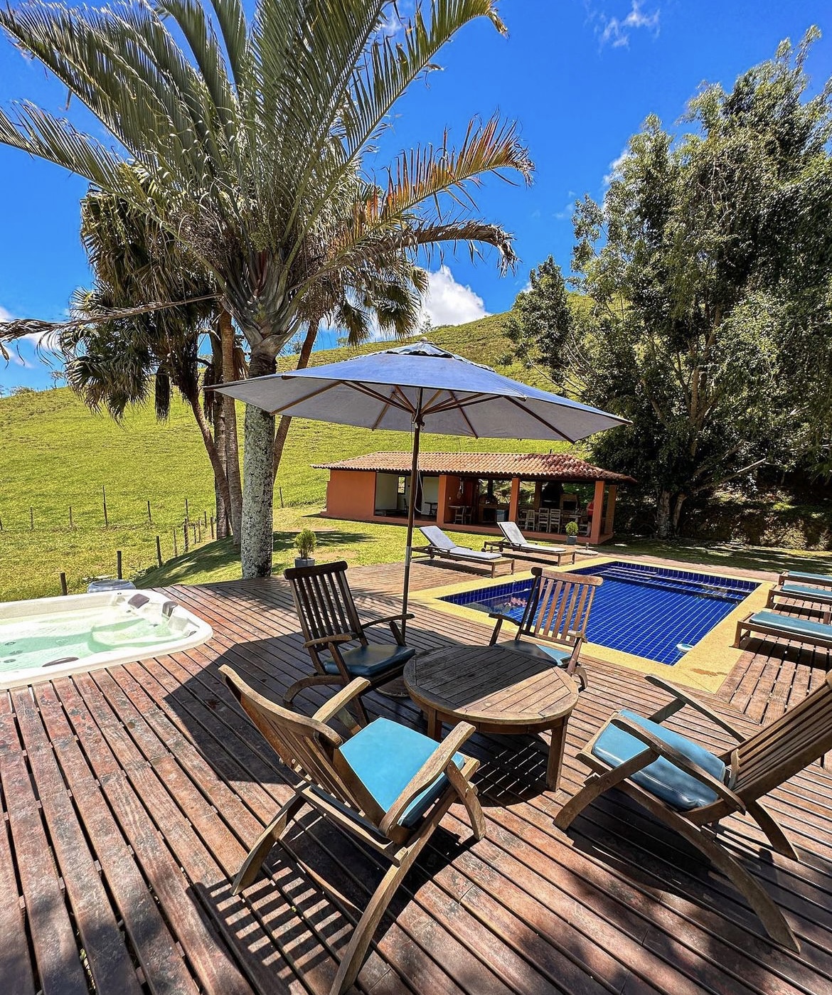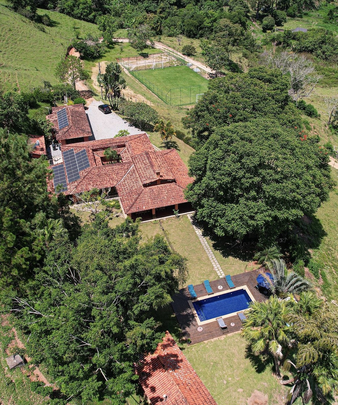 O local possui piscina aquecida, hidromassagem, churrasqueira e forno à lenha, 7 quartos com ar-condicionado, sendo 5 suítes, casa na árvore, campo de futebol, quadra de areia, passeio a cavalo e sala com lareira.