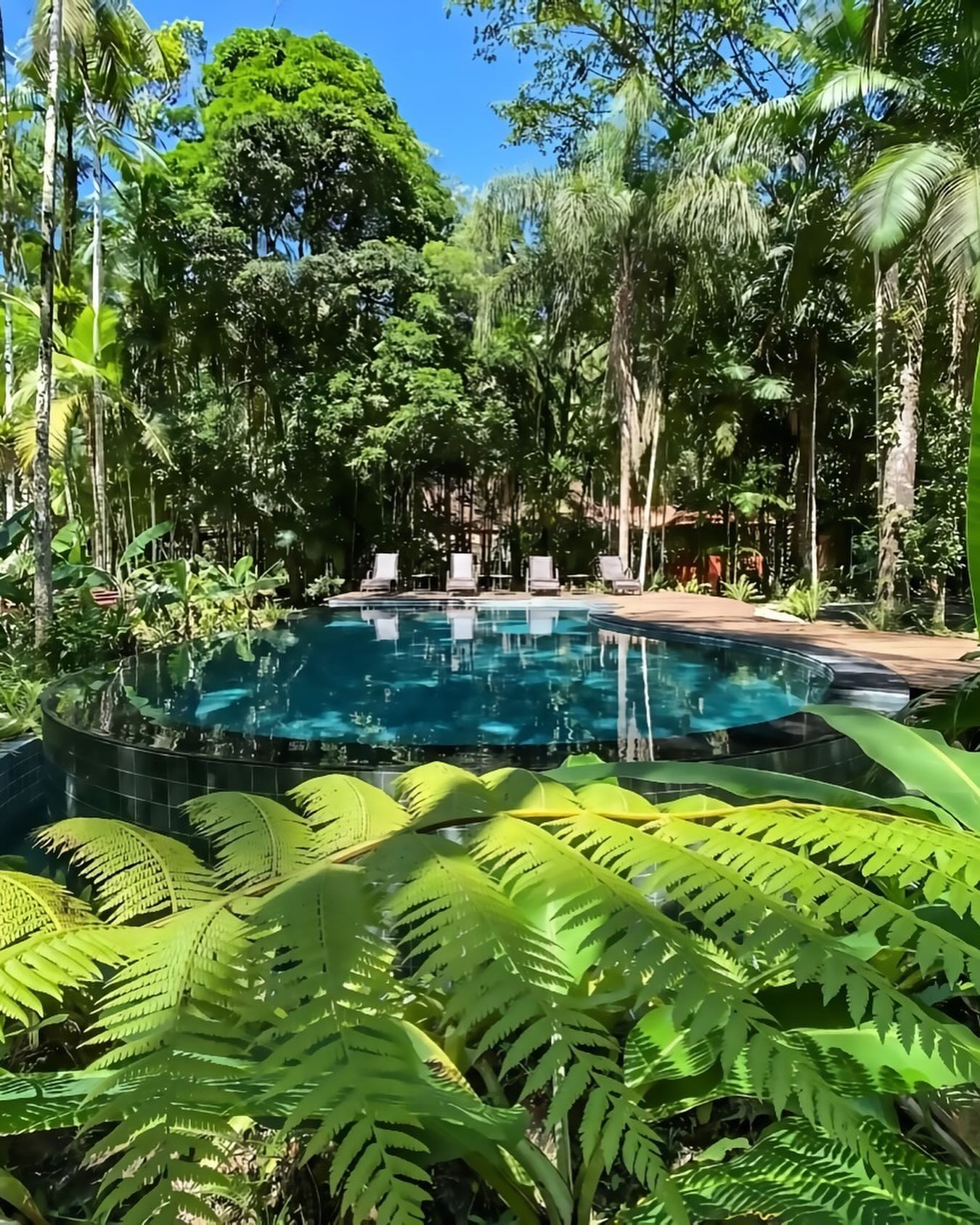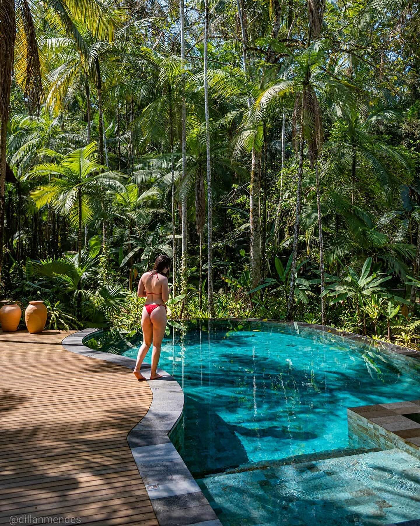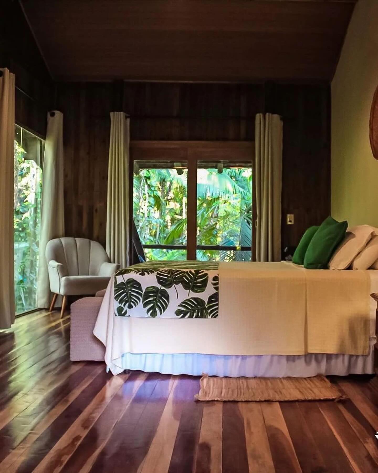 Os bangalôs estão suspensos sobre a mata e os quartos são totalmente equipados com o que há de melhor para o conforto dos hóspedes após curtirem as aventuras na região.