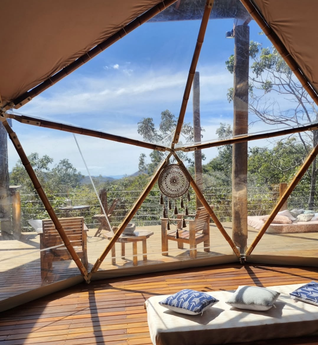 Acomodações exclusivas em frente ao Parque Nacional da Chapada dos Veadeiros, proporcionando uma experiência única em meio à natureza. O espaço combina aconchego, contato com o verde e todo o conforto necessário para dias de descanso, lazer e contemplação em família ou a dois.