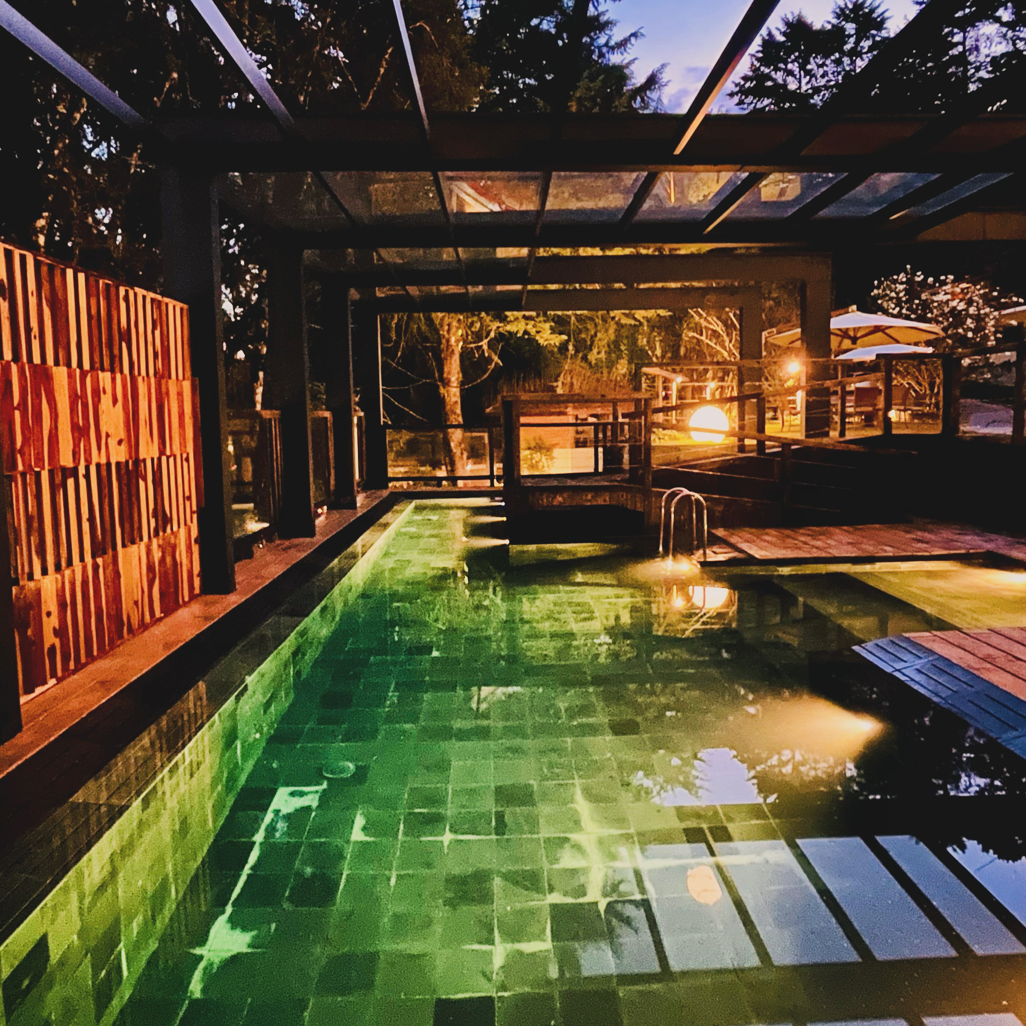 Piscina aquecida, com borda infinita e coberta
