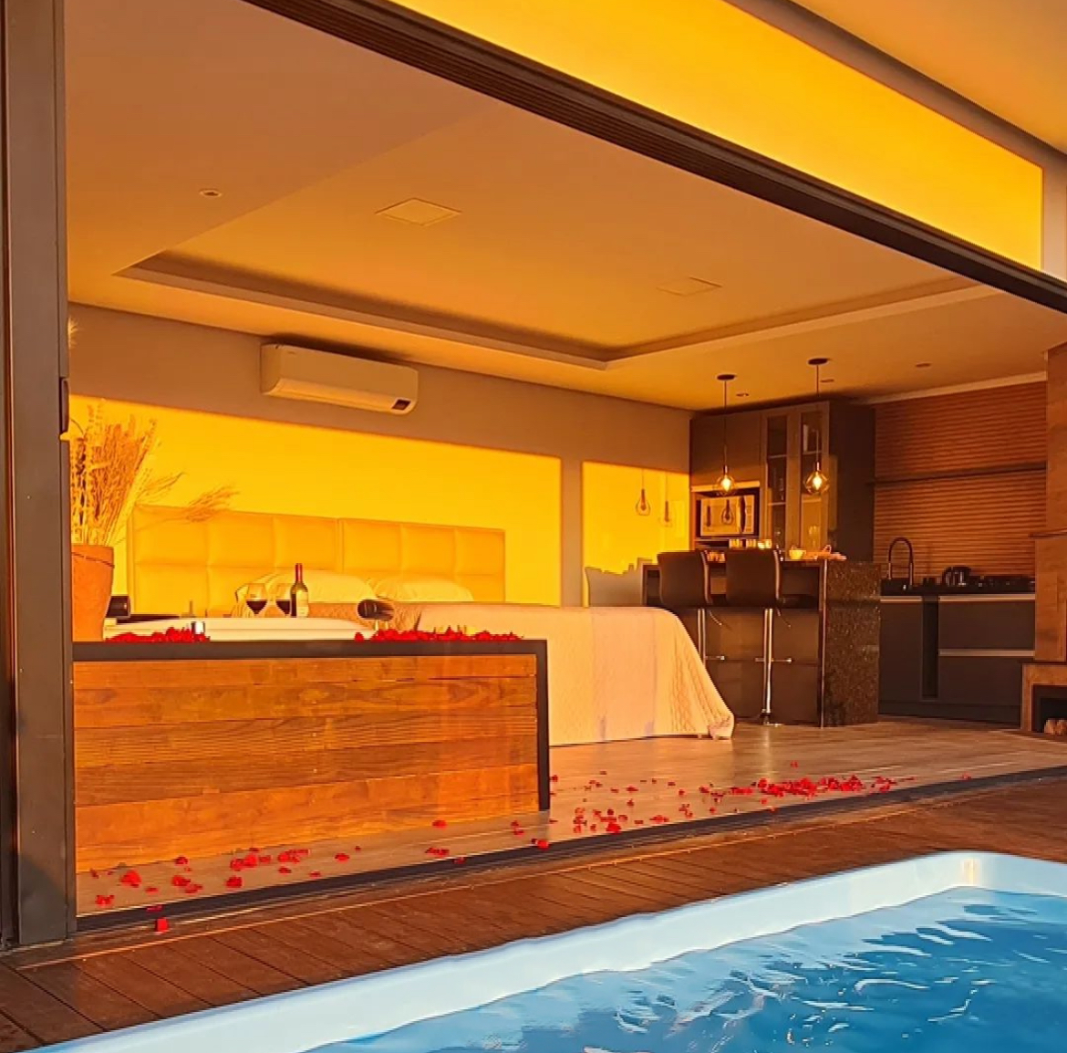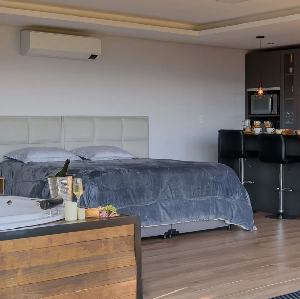 Ar condicionado Secador de cabelo TV a cabo / Smart TV Jacuzzi / Ofurô / Banheira Coberta Frigobar Lareira Máquina de Café Enxoval de Luxo (+ Roupão e Pantufa) Sauna Cozinha Estação de trabalho (mesa e cadeira) Piscina Aquecida ou climatizada Borda Infinita Coberta