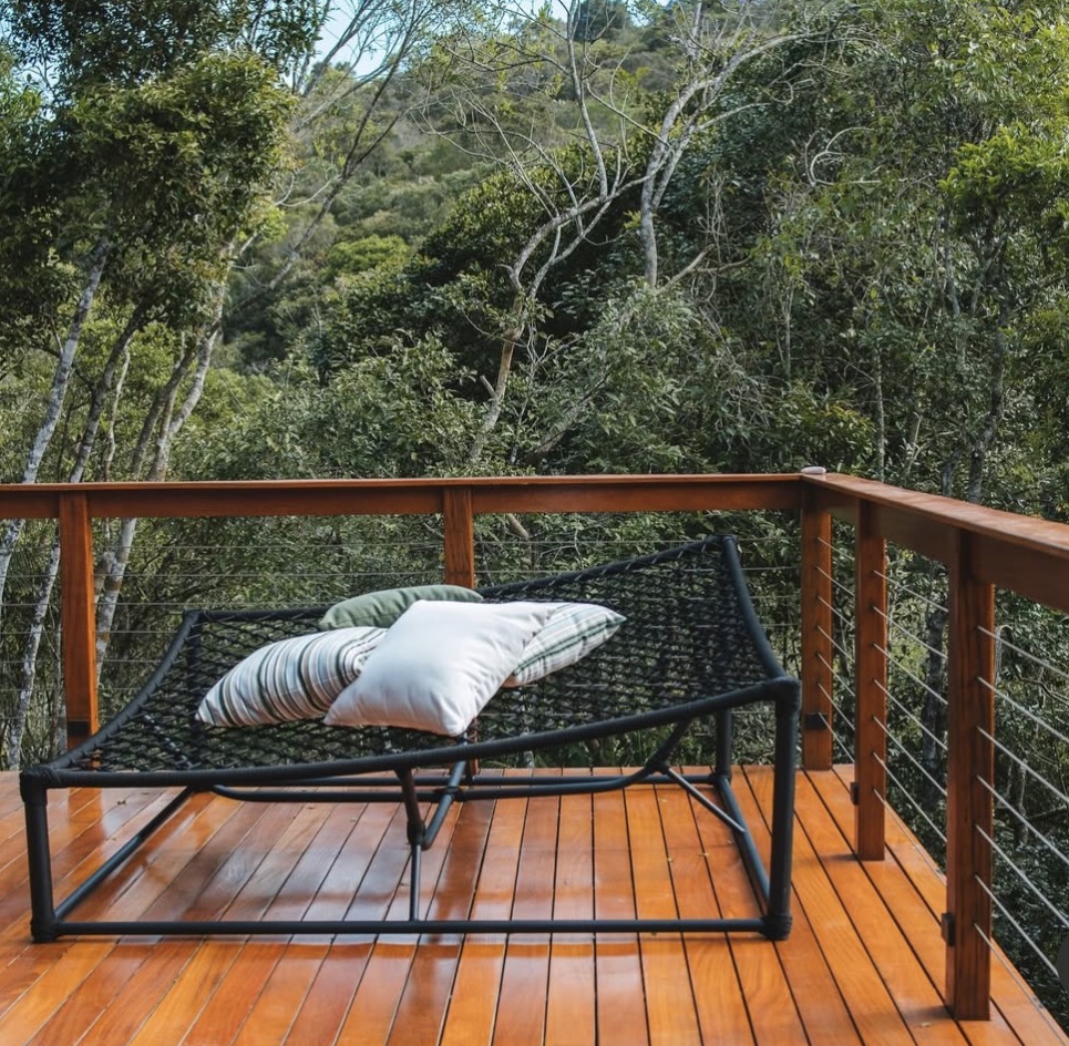 Esta cabana apresenta uma experiência privativa cercada pela natureza, com atmosfera acolhedora e integração total ao verde. Os ambientes foram planejados para oferecer tranquilidade e conforto, criando um refúgio perfeito para dias de descanso em meio à mata.