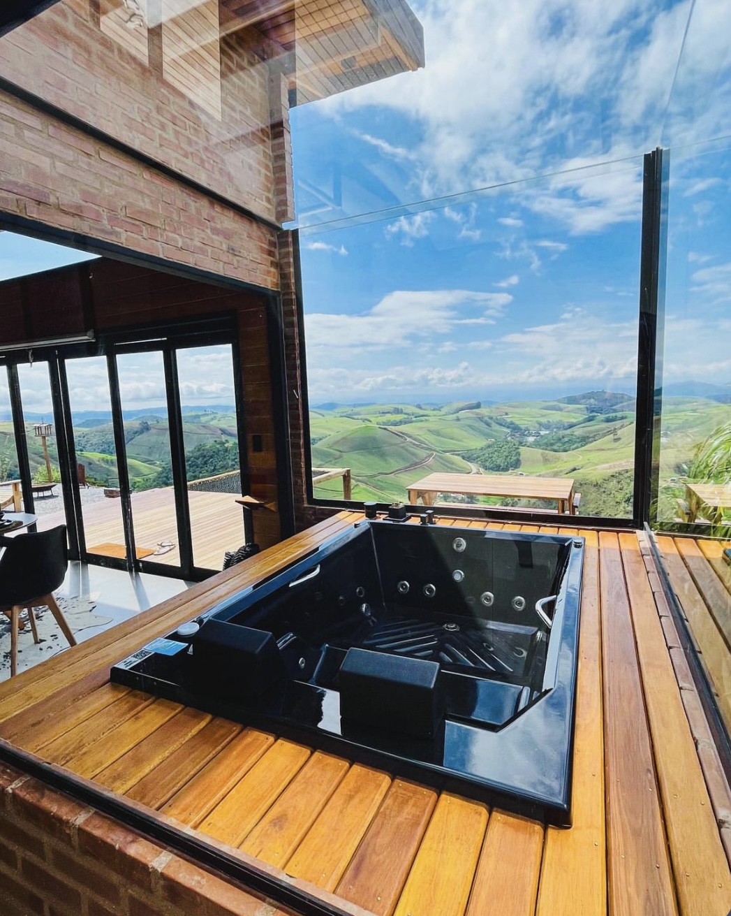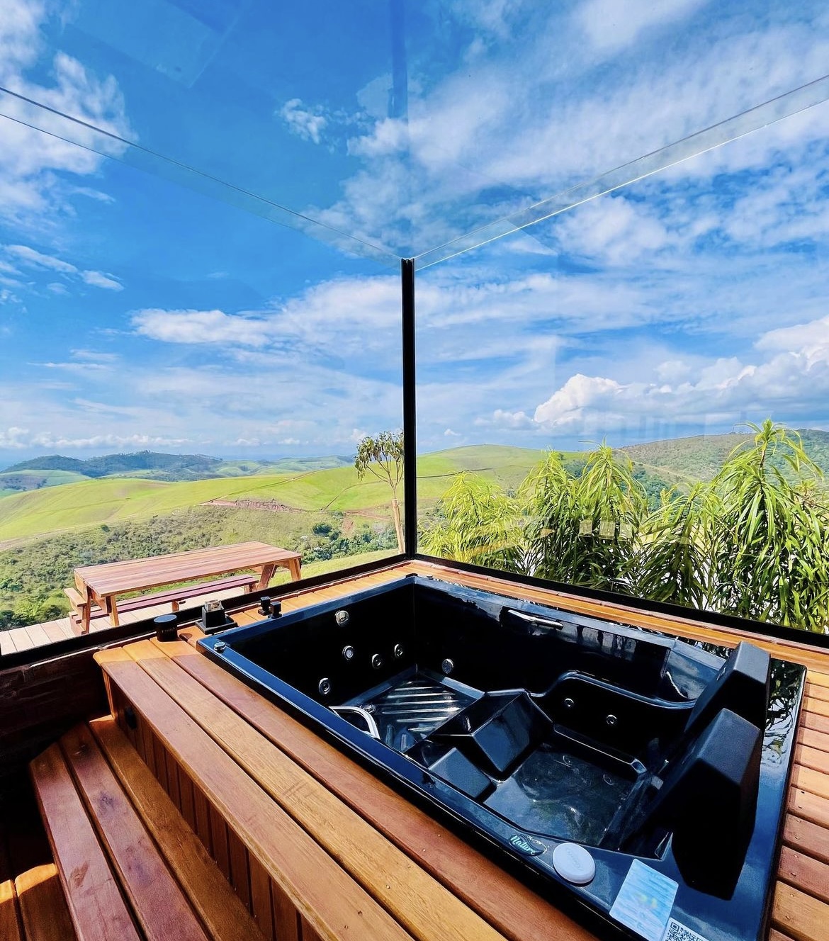Combinação perfeita entre sofisticação e aconchego. Com vista infinita para as montanhas, jacuzzi com hidromassagem e um deck com redário suspenso, cada detalhe foi pensado para criar momentos inesquecíveis a dois.