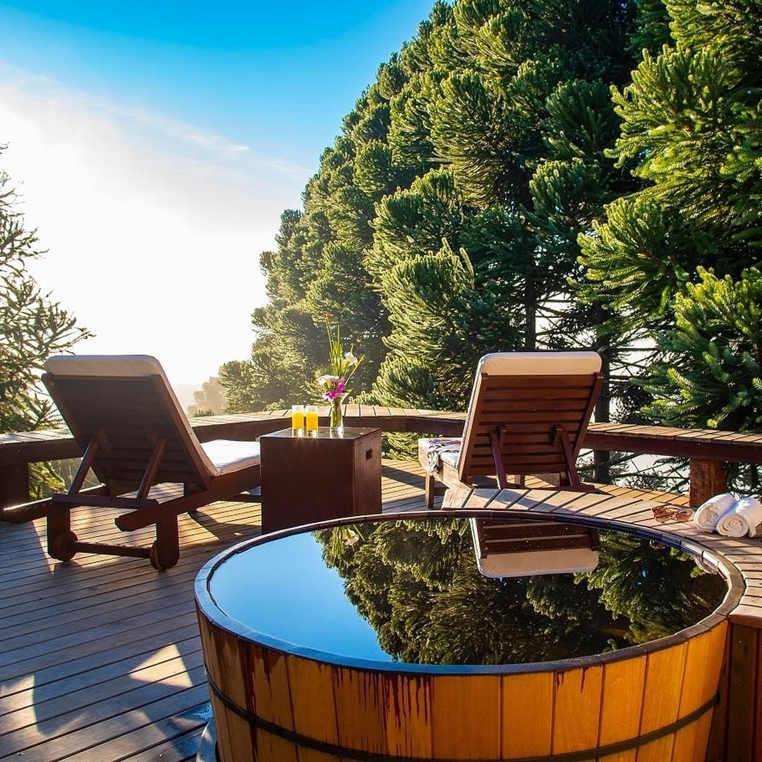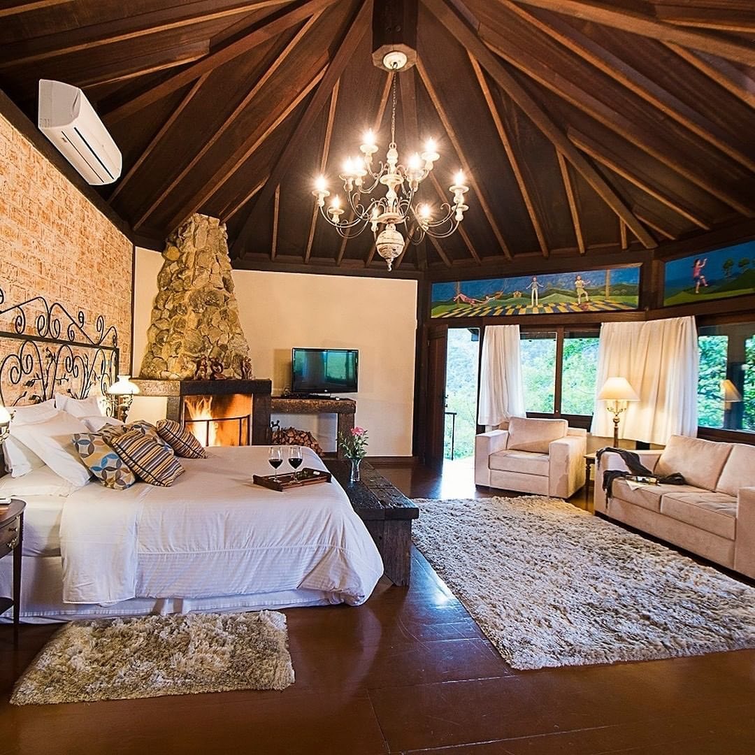 Ar condicionado Secador de cabelo TV a cabo / Smart TV Jacuzzi / Ofurô / Banheira Coberta Frigobar Lareira Máquina de Café Enxoval de Luxo (+ Roupão e Pantufa) Sauna Cozinha Estação de trabalho (mesa e cadeira) Piscina Aquecida ou climatizada Borda Infinita Coberta