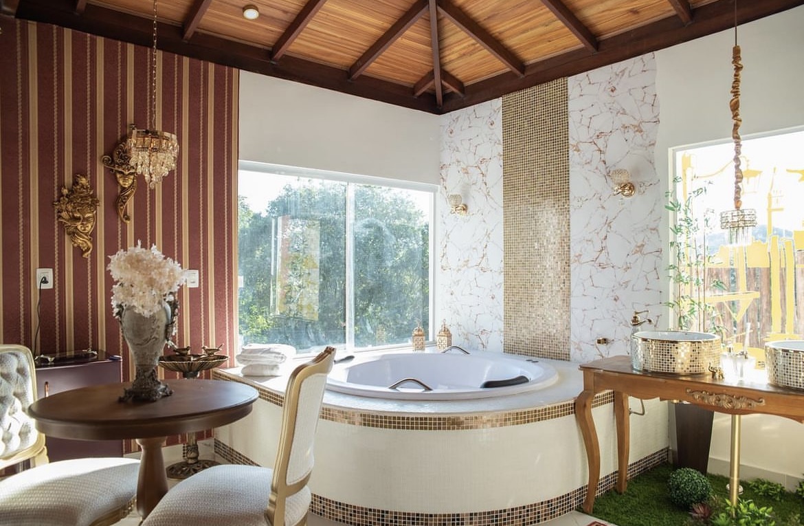 Ar condicionado Secador de cabelo TV a cabo / Smart TV Jacuzzi / Ofurô / Banheira Coberta Frigobar Lareira Máquina de Café Enxoval de Luxo (+ Roupão e Pantufa) Sauna Cozinha Estação de trabalho (mesa e cadeira) Piscina Aquecida ou climatizada Borda Infinita Coberta