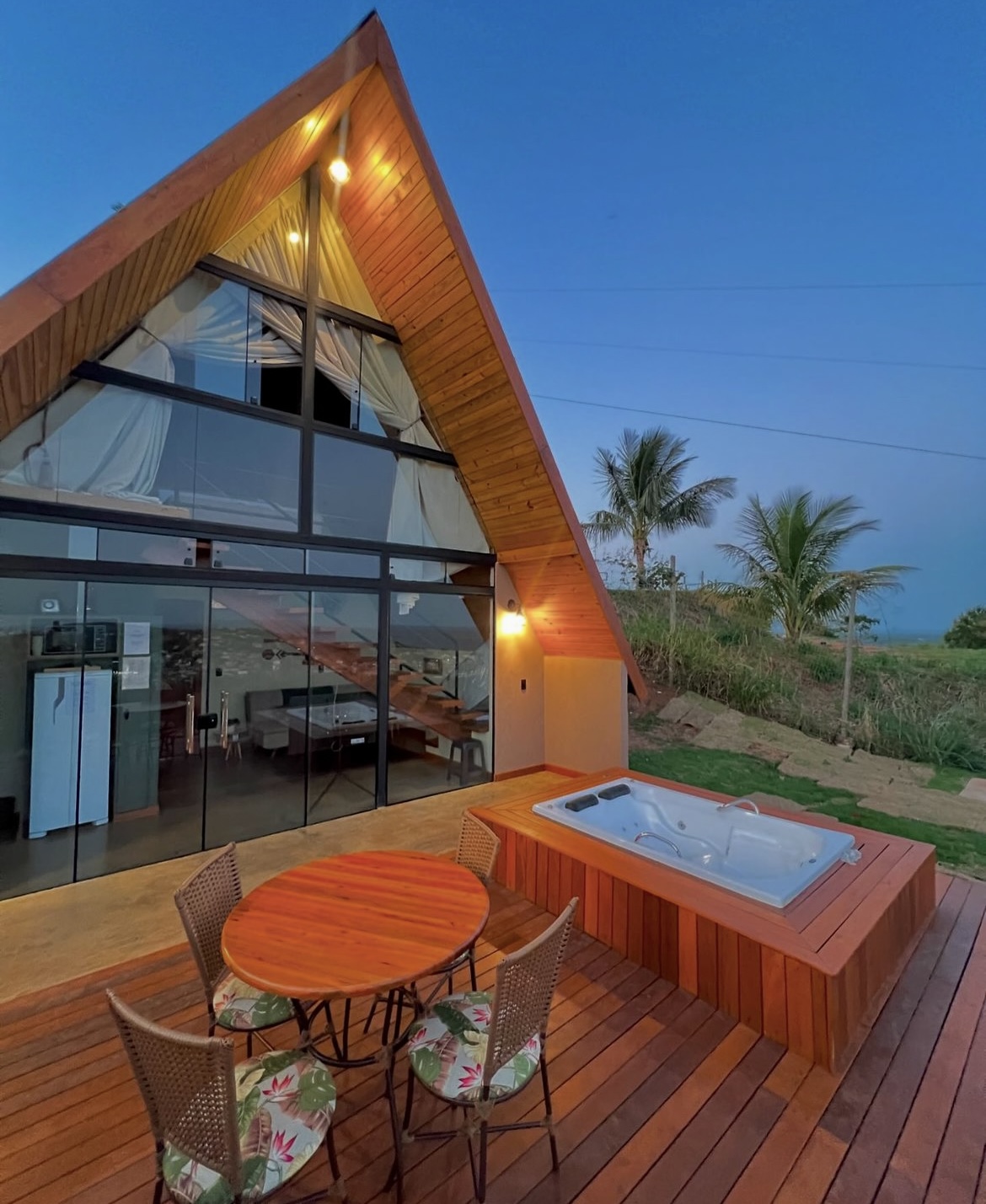 Cada cabana acomoda até 3 pessoas, com cama queen, cama de solteiro, sofá/cama, TV Smart, ar-condicionado e banheiro privativo. O local ideal para quem busca relaxamento, conforto e uma experiência única.