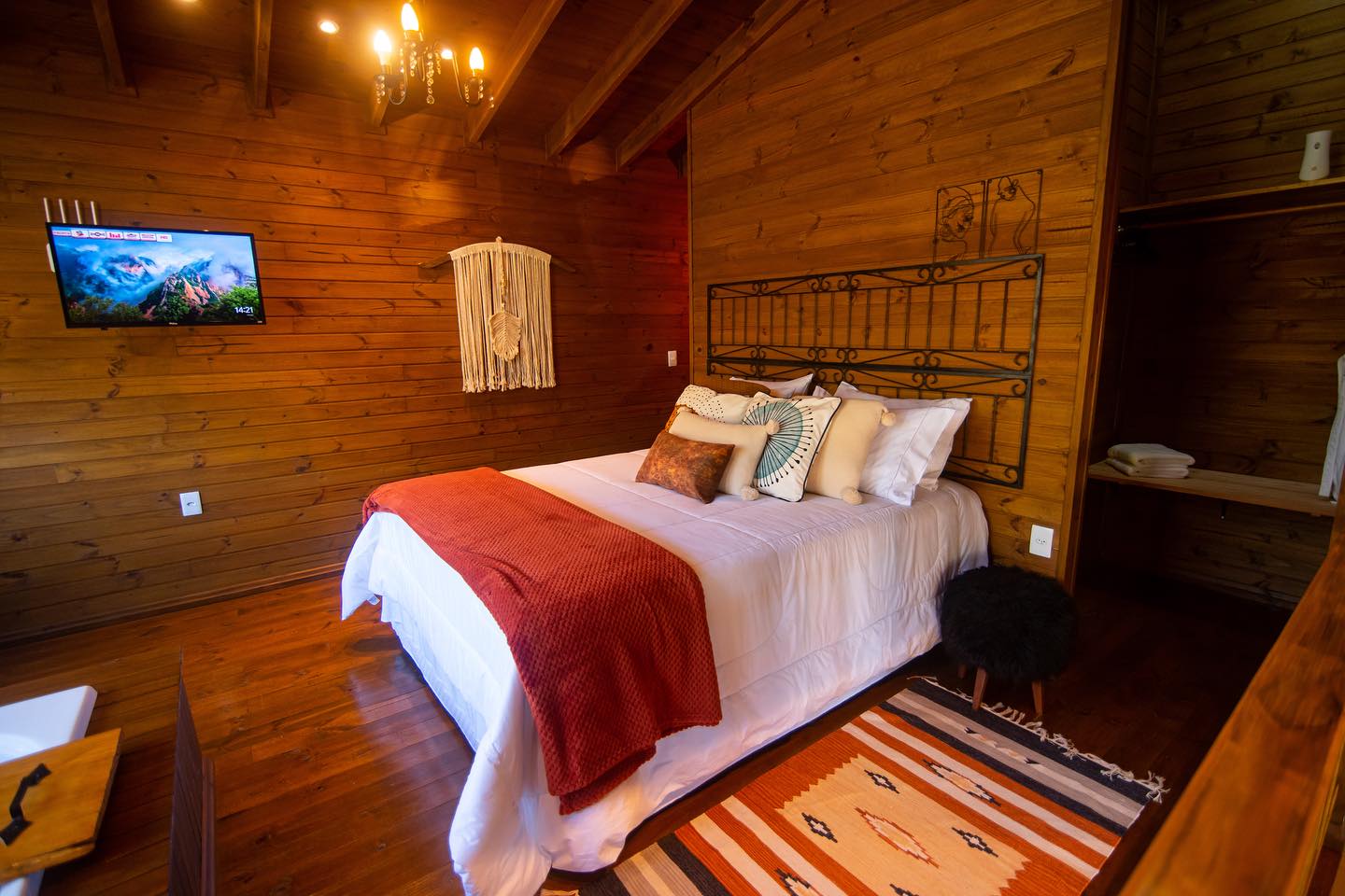 Chalé com vista para o Canyon Índios Coroados, rio privativo por toda a extensão do espaço. O encontro maravilhoso da natureza: dormir com o som do Rio e a brisa do vento. Feito todo em madeira rústica, mas decorado com todo luxo e design para que o hóspede tenha uma experiência inesquecível com requinte e aconchego. Um espaço único de contato com a natureza, descanso e tranquilidade. O chalé Morada das Figueiras foi feito para casais. Com uma cozinha bem completa, faça você mesmo sua refeição com muito requinte. É possível descansar com todo conforto de uma deliciosa cama queen com vista para a mata e também para os Canyons da Serra do Faxinal. Relaxe na banheira de hidromassagem curtindo uma linda paisagem. No final do dia prepare um pic-nic no deck para curtir um lindo pôr do sol nas montanhas. O fogo de chão está preparado para você curtir um delicioso vinho e preparar marshmallows. Um momento de paz e tranquilidade em meio à natureza, uma maneira de se desconectar da vida corrida e se reencontrar.