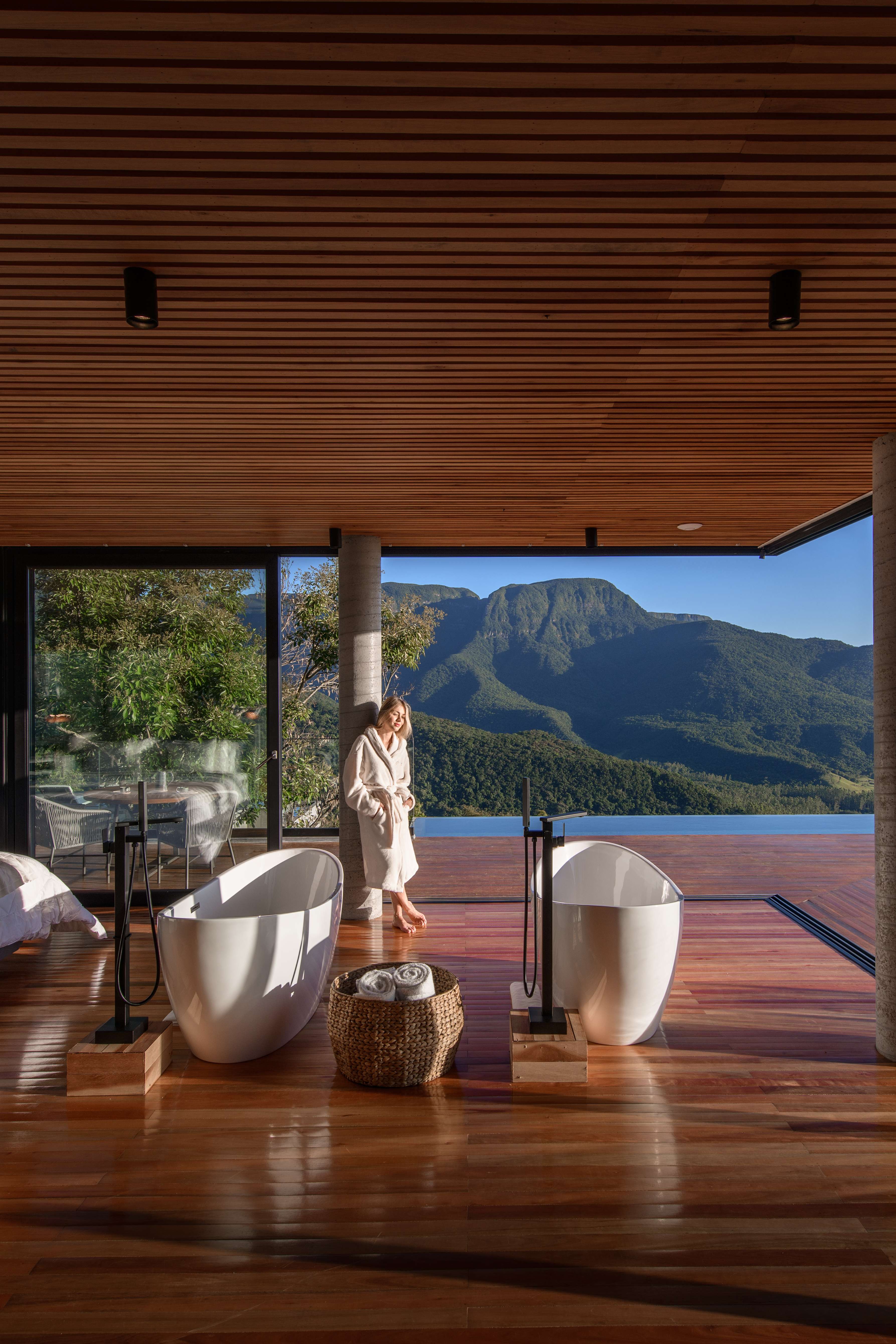Ar condicionado Secador de cabelo TV a cabo / Smart TV Jacuzzi / Ofurô / Banheira Coberta Frigobar Lareira Máquina de Café Enxoval de Luxo (+ Roupão e Pantufa) Sauna Cozinha Estação de trabalho (mesa e cadeira) Piscina Aquecida ou climatizada Borda Infinita Coberta