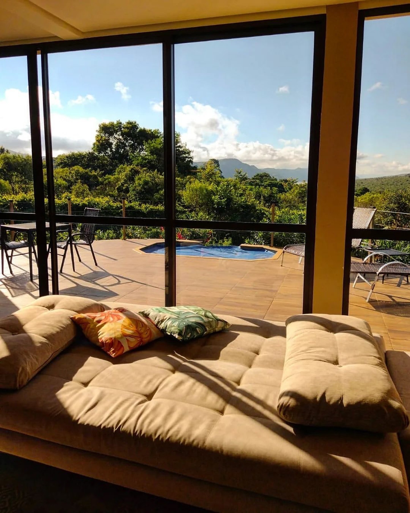 Para acordar ao som dos pássaros, está incluso na estadia uma cesta recheada com itens de café da manhã para saborear no cantinho que preferir. Na estrutura os hóspedes contam com área comum, um deck super charmoso para momentos de descanso e relaxamento embaixo de uma sombra de árvore nativa; um ponto de fogo muito aconchegante, apropriado para dias de frio e interação com pessoas queridas, além de um balanço romântico, todo decorado com vista para as montanhas o que garante belas fotos e momentos de descontração.