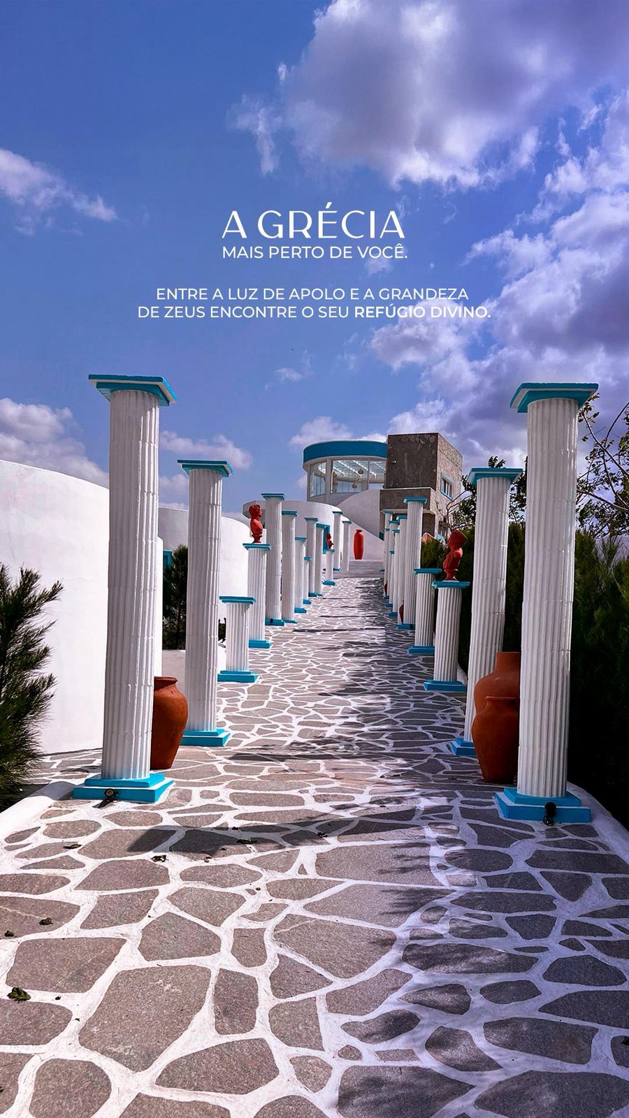 O que torna o Olymp SPA único vai além da arquitetura inspirada em Santorini e Mykonos. Aqui você encontra aposentos temáticos dedicados aos deuses gregos, esculturas em estilo neoclássico a céu aberto, sauna panorâmica, sala de massagem com cama de cristais, além de uma hospitalidade autêntica, feita para acolher cada hóspede como único.