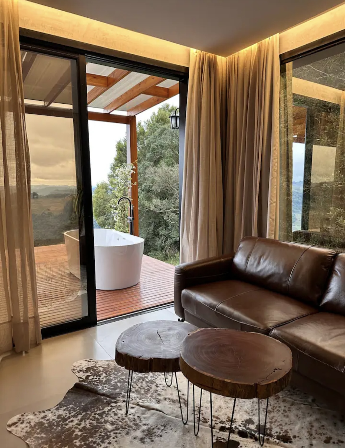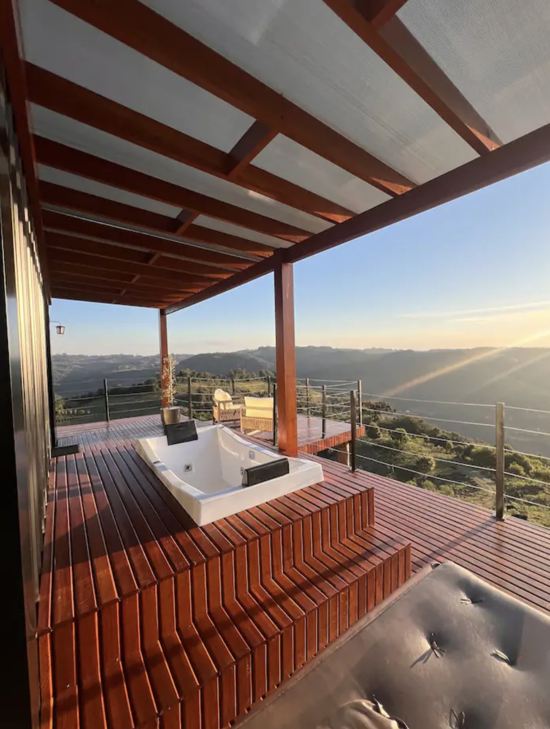 Ambas as casas estão equipadas com cozinha completa, Wi-Fi, ar-condicionado, TV smart, chuveiro a gás e banheira na parte externa.