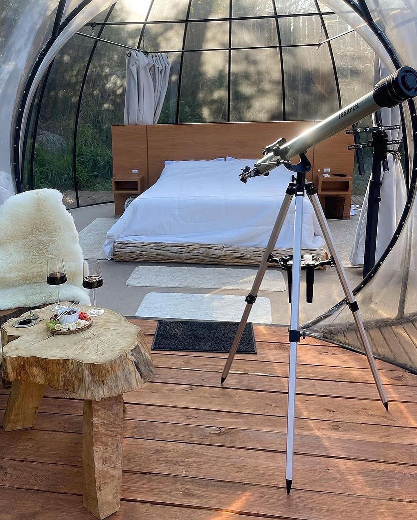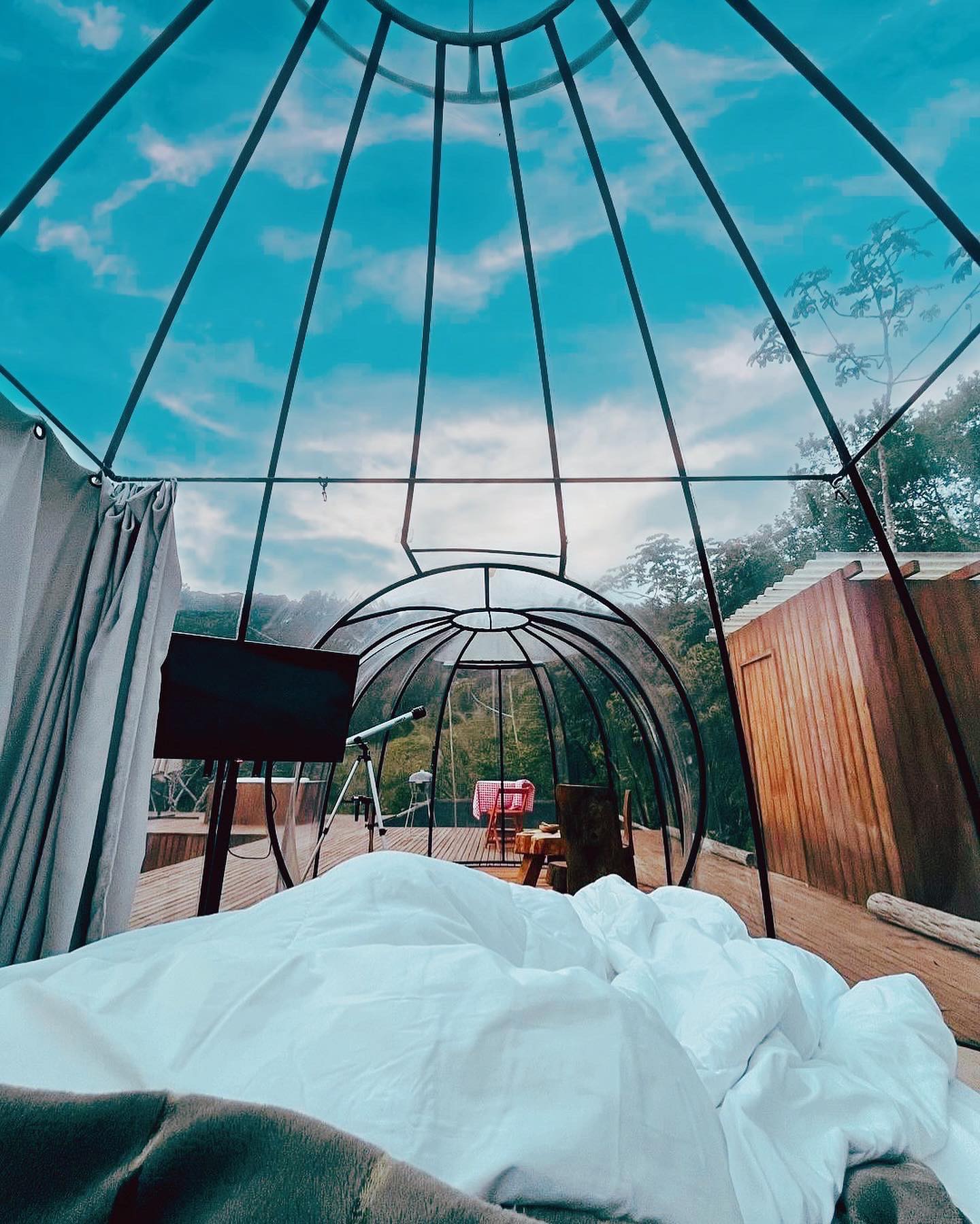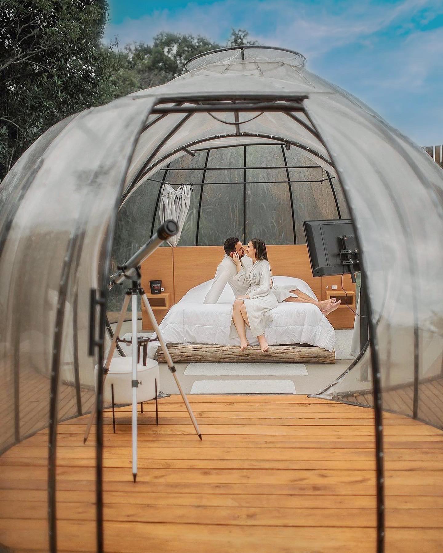 Cada detalhe da bolha foi pensado para que vocês vivam uma experiência de contato com a natureza inesquecível, além de muita paz. Perfeito para relaxar e recarregar as energias em uma área 100% privativa. Esse tipo de hospedagem é chamada de Glamping.
