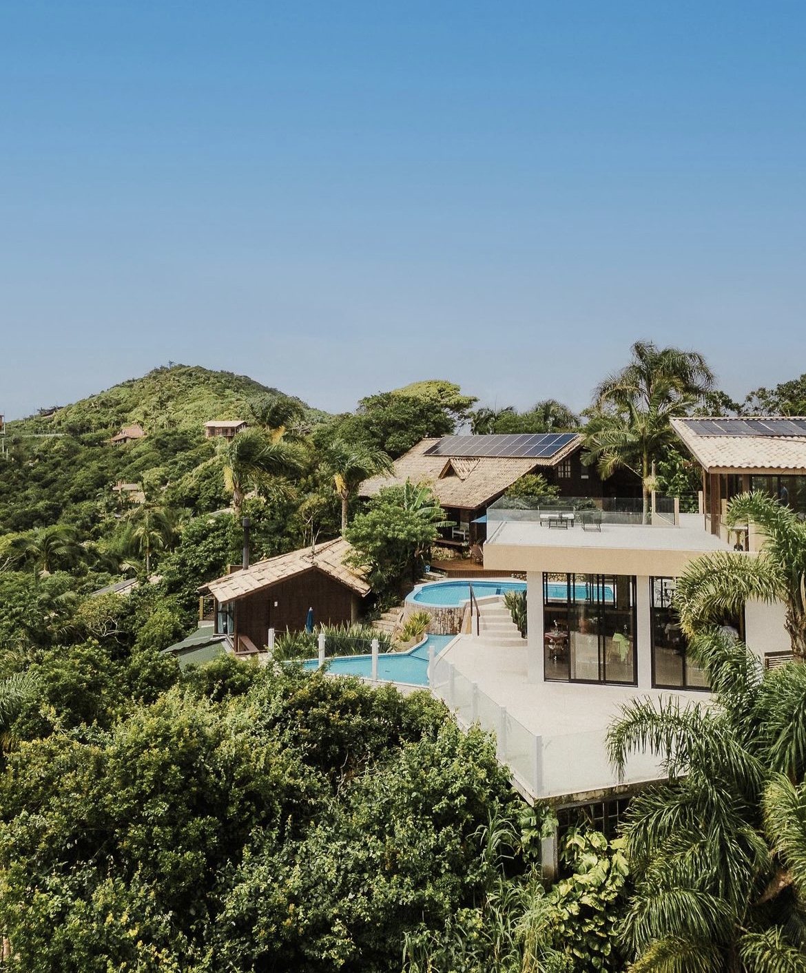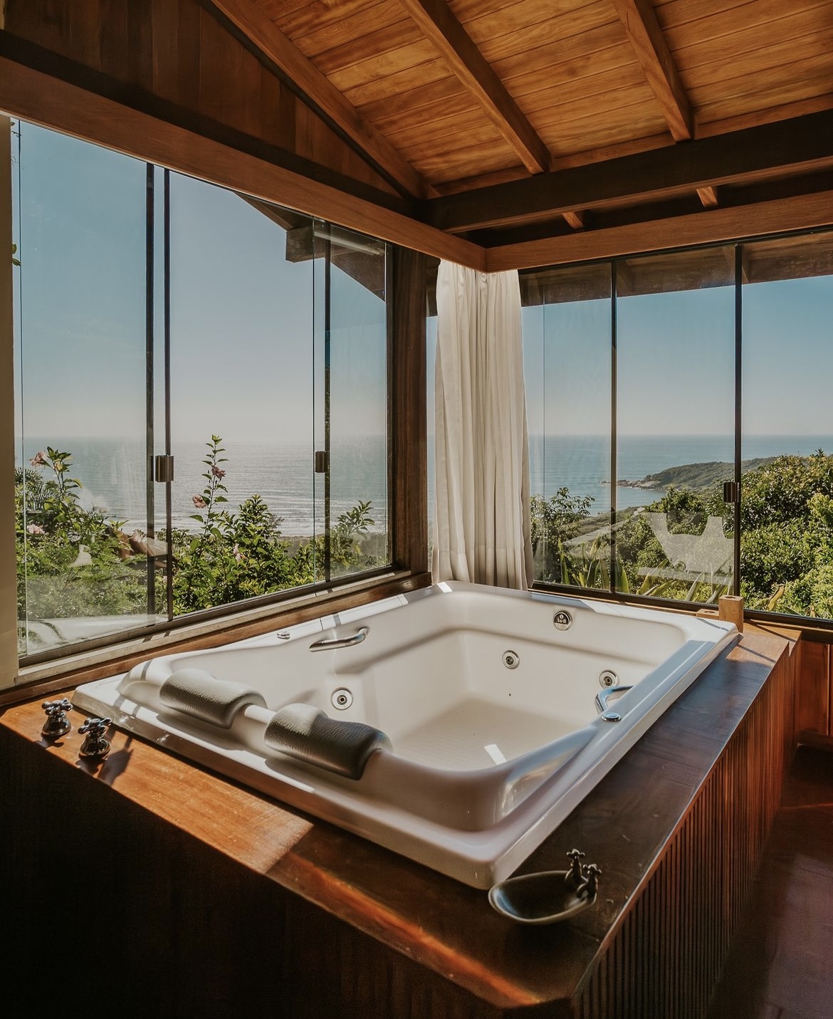 Localizada a pouco mais de 1 km do centrinho do Rosa em uma área verde de mais de 3000 m² com bela mata nativa, a pousada possui 8 privativos chalés independentes e suítes com vistas exclusivas da Praia do Rosa que proporcionam momentos tranquilos de rara contemplação.