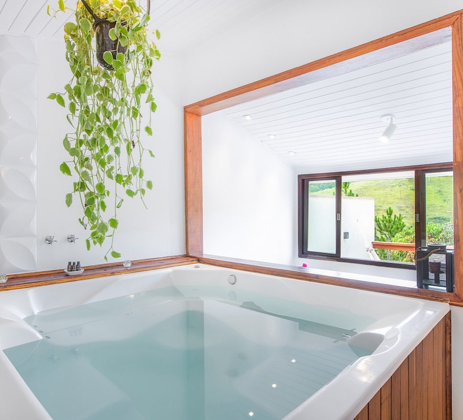 Ar condicionado Secador de cabelo TV a cabo / Smart TV Jacuzzi / Ofurô / Banheira Coberta Frigobar Lareira Máquina de Café Enxoval de Luxo (+ Roupão e Pantufa) Sauna Cozinha Estação de trabalho (mesa e cadeira) Piscina Aquecida ou climatizada Borda Infinita Coberta