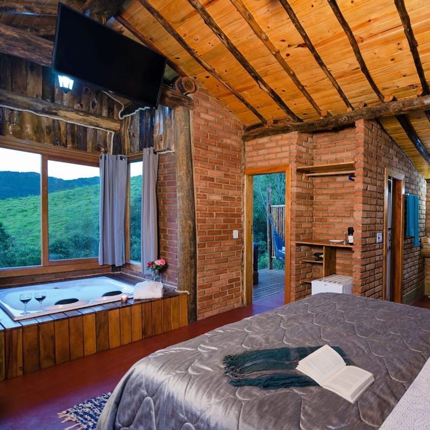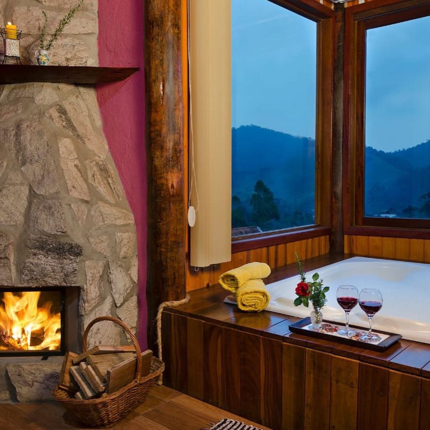 Ar condicionado Secador de cabelo TV a cabo / Smart TV Jacuzzi / Ofurô / Banheira Coberta Frigobar Lareira Máquina de Café Enxoval de Luxo (+ Roupão e Pantufa) Sauna Cozinha Estação de trabalho (mesa e cadeira) Piscina Aquecida ou climatizada Borda Infinita Coberta