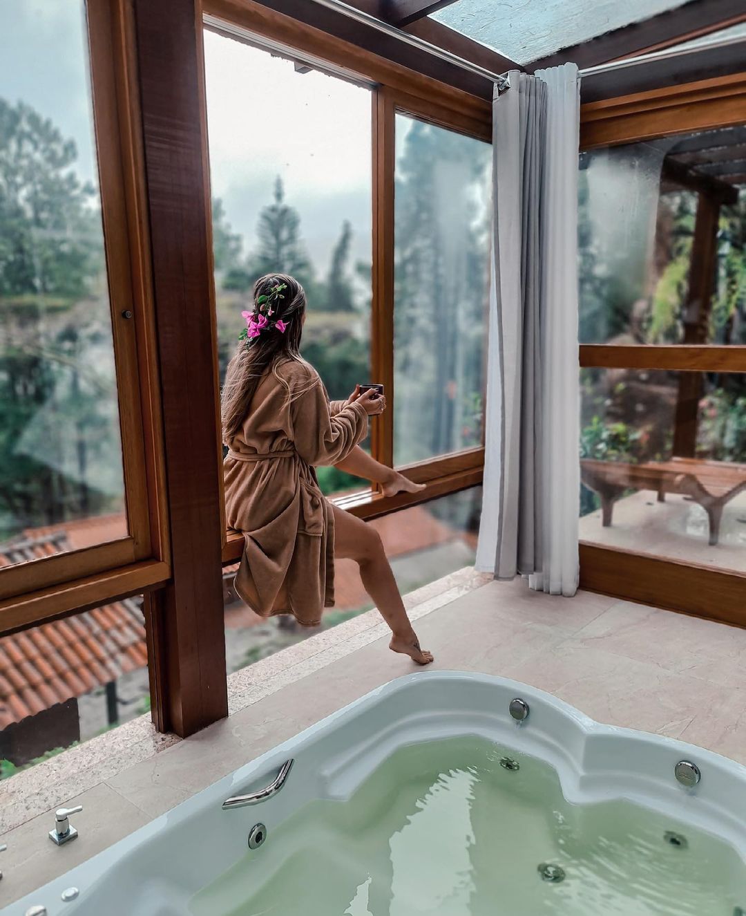 Ar condicionado Secador de cabelo TV a cabo / Smart TV Jacuzzi / Ofurô / Banheira Coberta Frigobar Lareira Máquina de Café Enxoval de Luxo (+ Roupão e Pantufa) Sauna Cozinha Estação de trabalho (mesa e cadeira) Piscina Aquecida ou climatizada Borda Infinita Coberta