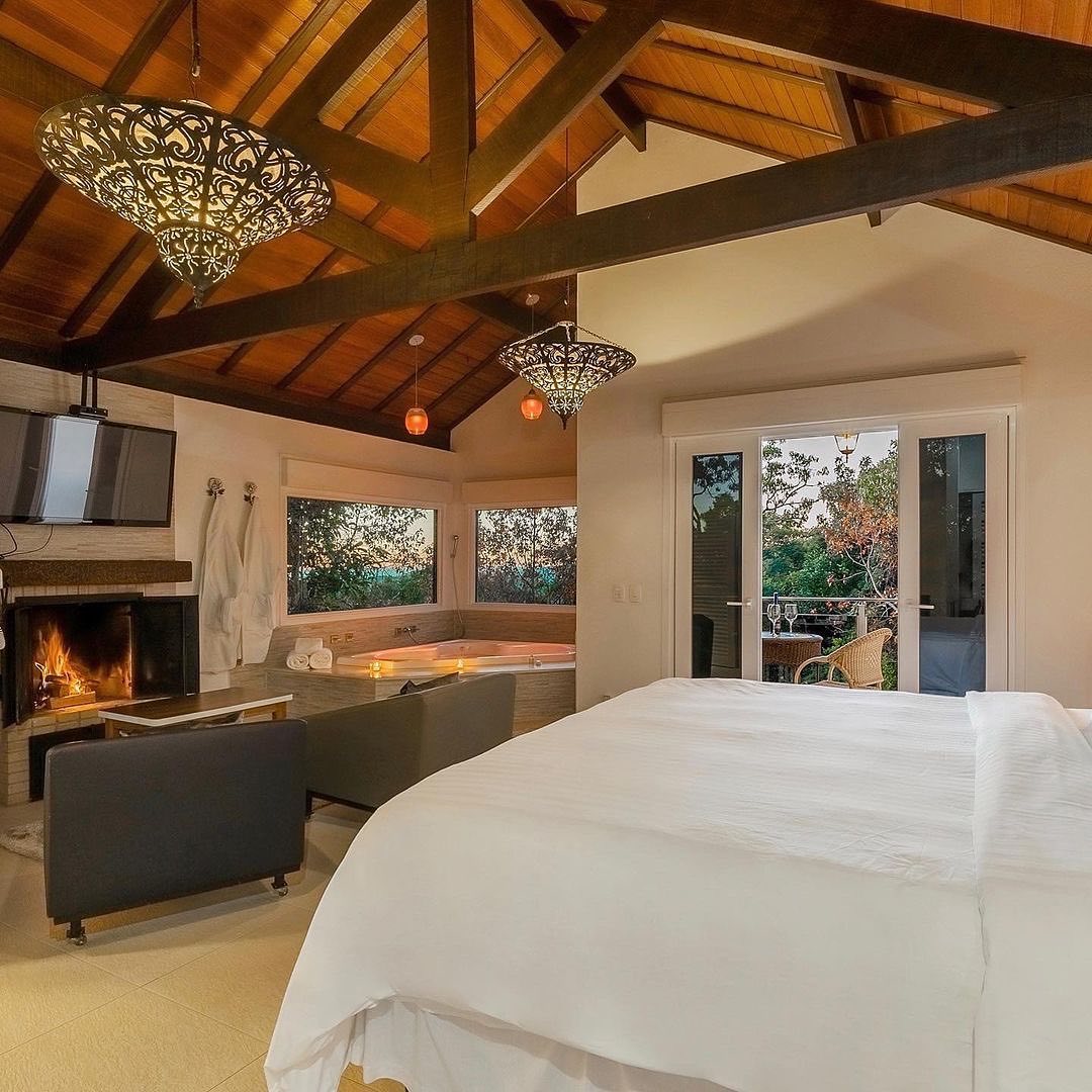 Ar condicionado Secador de cabelo TV a cabo / Smart TV Jacuzzi / Ofurô / Banheira Coberta Frigobar Lareira Máquina de Café Enxoval de Luxo (+ Roupão e Pantufa) Sauna Cozinha Estação de trabalho (mesa e cadeira) Piscina Aquecida ou climatizada Borda Infinita Coberta