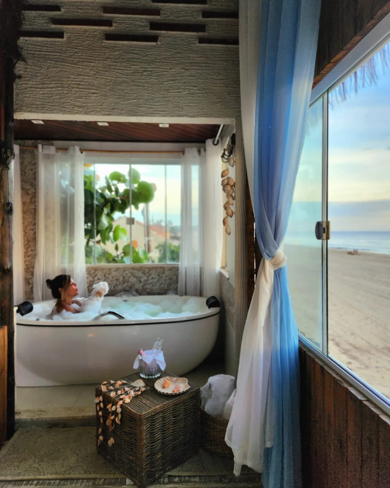 A pousada está situada à beira-mar, proporcionando aos hóspedes uma vista para o mar e acesso direto à praia de Ponta Negra. Os quartos na pousada estão equipados com ar-condicionado para garantir conforto climático. Além disso, cada quarto possui uma TV de tela plana para entretenimento. Todos os quartos têm banheiro privativo, oferecendo privacidade aos hóspedes. Os banheiros são equipados com chuveiro. Amenidades de banho e secador de cabelo: Para maior comodidade, a pousada fornece amenidades de banho gratuitas, o que pode incluir itens como sabonetes, xampus e loções. Além disso, um secador de cabelo é disponibilizado nos quartos. Essas comodidades sugerem um ambiente confortável e voltado para o bem-estar dos hóspedes, com a vantagem adicional de estar localizado em uma área à beira-mar.
