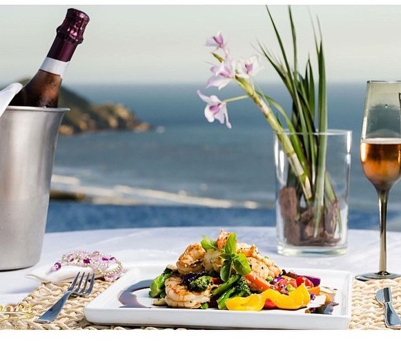 O buffet de café-da-manhã é servido no lounge ao lado da piscina, com frutas, pães artesanais e bolos. Os hóspedes podem apreciar o restaurante especializado em pratos de frutos do mar, em uma sala panorâmica com lareira.