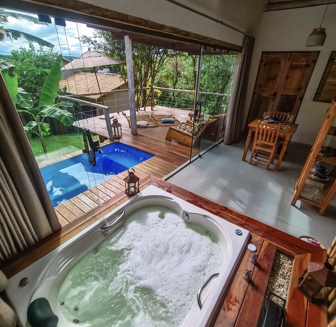 Em meio a uma natureza exuberante de beleza única, onde se revela o charme e o bom gosto de espaços que convidam a se integrar a um paraíso verde. Cada tijolo, cada detalhe pensado, cada objeto no seu lugar, a janela baixa dando vista às pedras e à mata, o som do riacho correndo vasto; tudo isso revela gestos de amor emprestados a cada canto da vila, conferindo-lhe identidade genuína. A proximidade com a natureza em uma área de 7000 metros de árvores nativas do cerrado em uma vegetação deslumbrante oferece um incrível ambiente de relaxamento para renovar as energias do corpo e da alma.