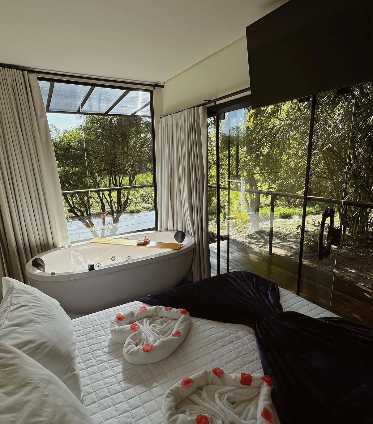 Ar condicionado Secador de cabelo TV a cabo / Smart TV Jacuzzi / Ofurô / Banheira Coberta Frigobar Lareira Máquina de Café Enxoval de Luxo (+ Roupão e Pantufa) Sauna Cozinha Estação de trabalho (mesa e cadeira) Piscina Aquecida ou climatizada Borda Infinita Coberta